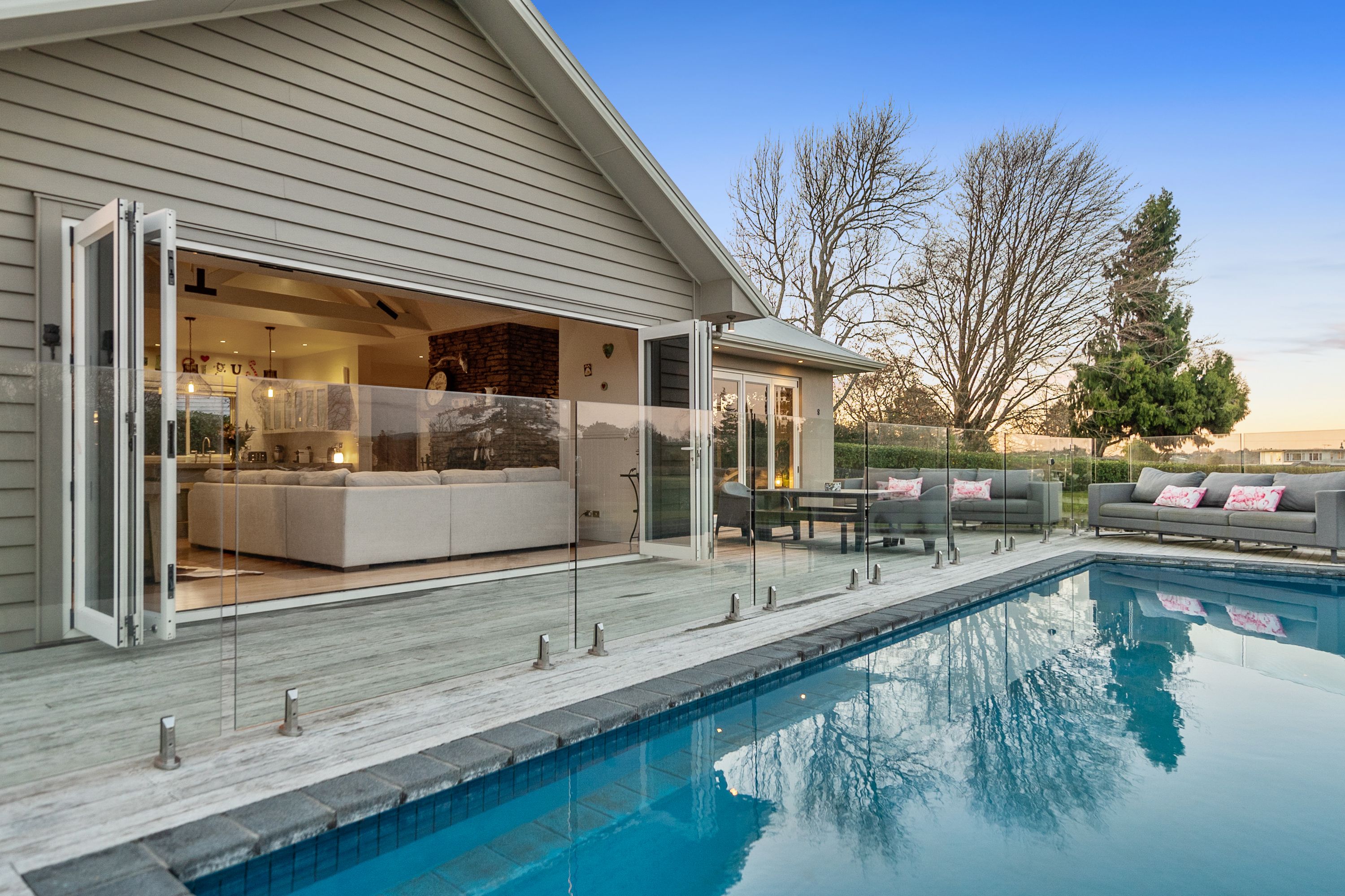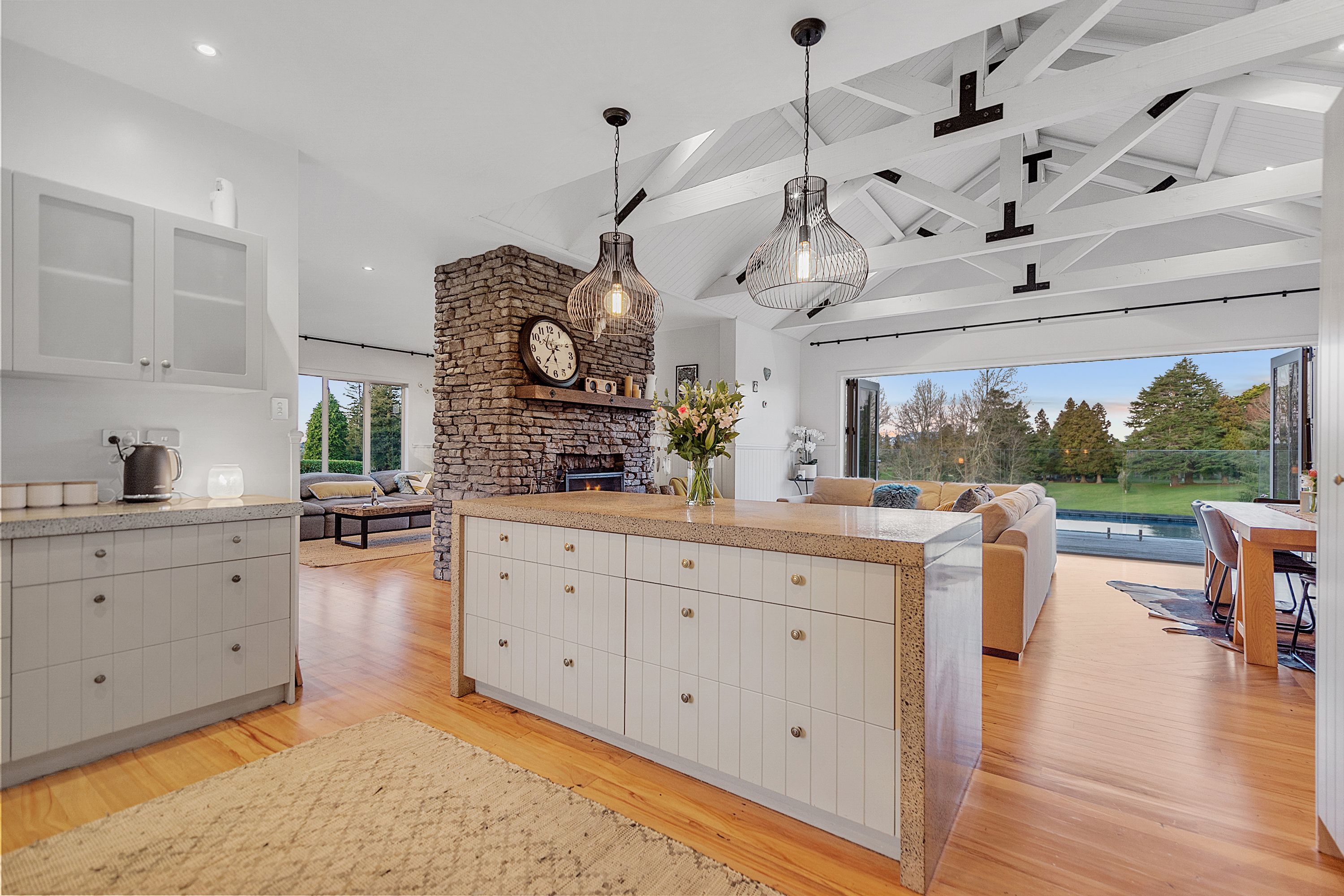 A luxurious retreat, the Celcrete and Linea clad home built in 2008 is sure to impress. With grand proportions throughout that emphasise light and space, the clever design successfully draws your focus to the outstanding elevated views. Warm and inviting, the use of natural building materials, from rimu flooring to exposed beam ceilings and the stone clad wood burner create a homely vibe which is perfectly complimented by our owners insta-worthy styling. Spread over 240sqm (more or less), accommodation is catered for with three generous bedrooms of which two are serviced by the Jack and Jill family bathroom and the master, being discretely located away from the other bedrooms has its own ensuite, walk-in robe and private deck. Semi separate living spaces seamlessly open out to the kwila decking and heated saltwater swimming pool making this the ultimate spot for entertaining friends and family. Double internal access garage, powder room and great storage complete the picture.