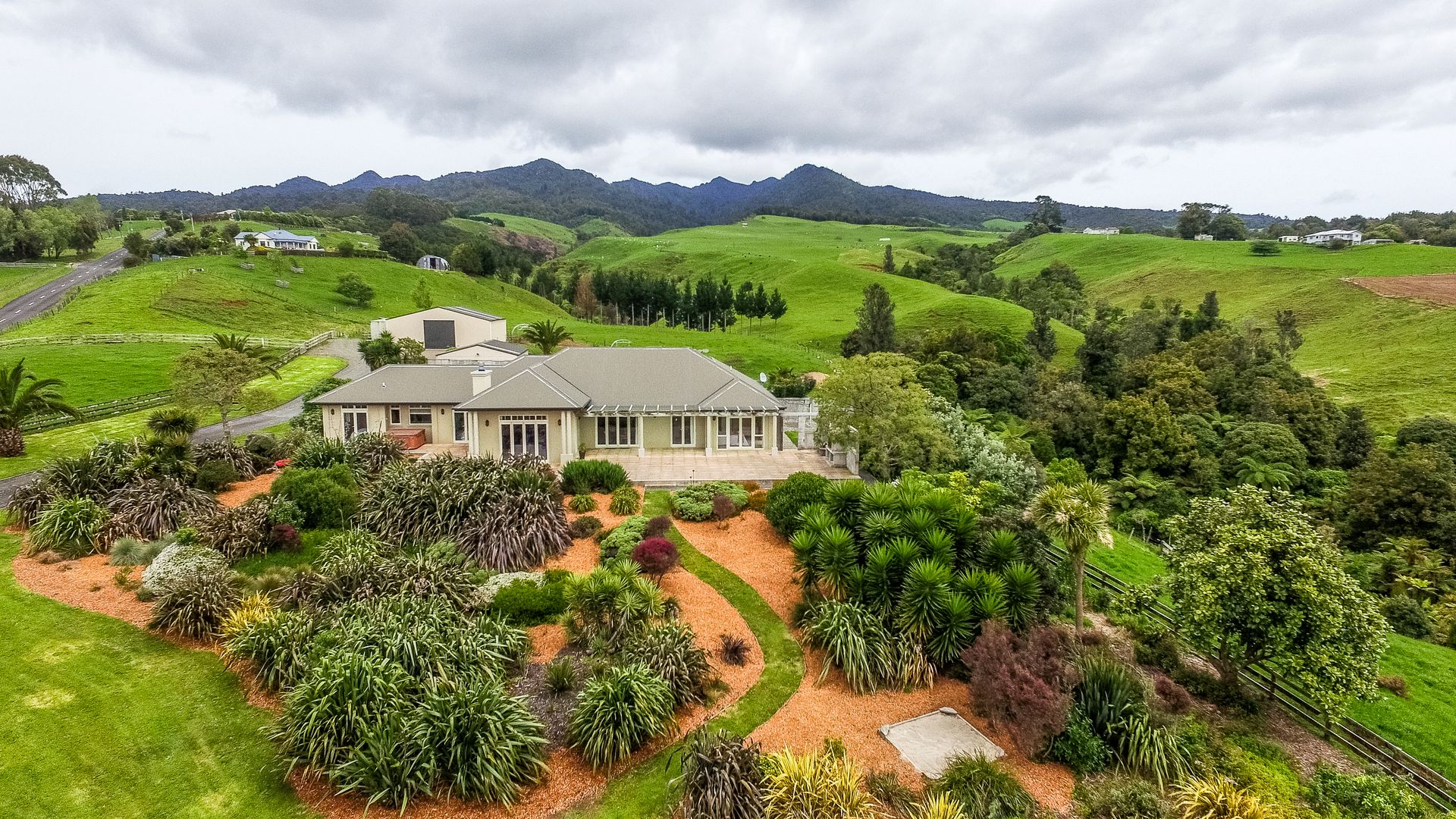 3.96 ha with superior 4 bedroom + office Stonewood Home, mountain stream and great shedding. The tarsealed driveway gently inclines past easy care native gardens and irrigated lawns and directs visitors to the entry foyer of this impressive dwelling. Guests are welcomed into the spacious living rooms which flow smoothly outside to the sheltered entertaining area where your friends will be wowed by the impressive views of the Waikato and will enjoy the ambiance of the outdoor fireplace long after dark.