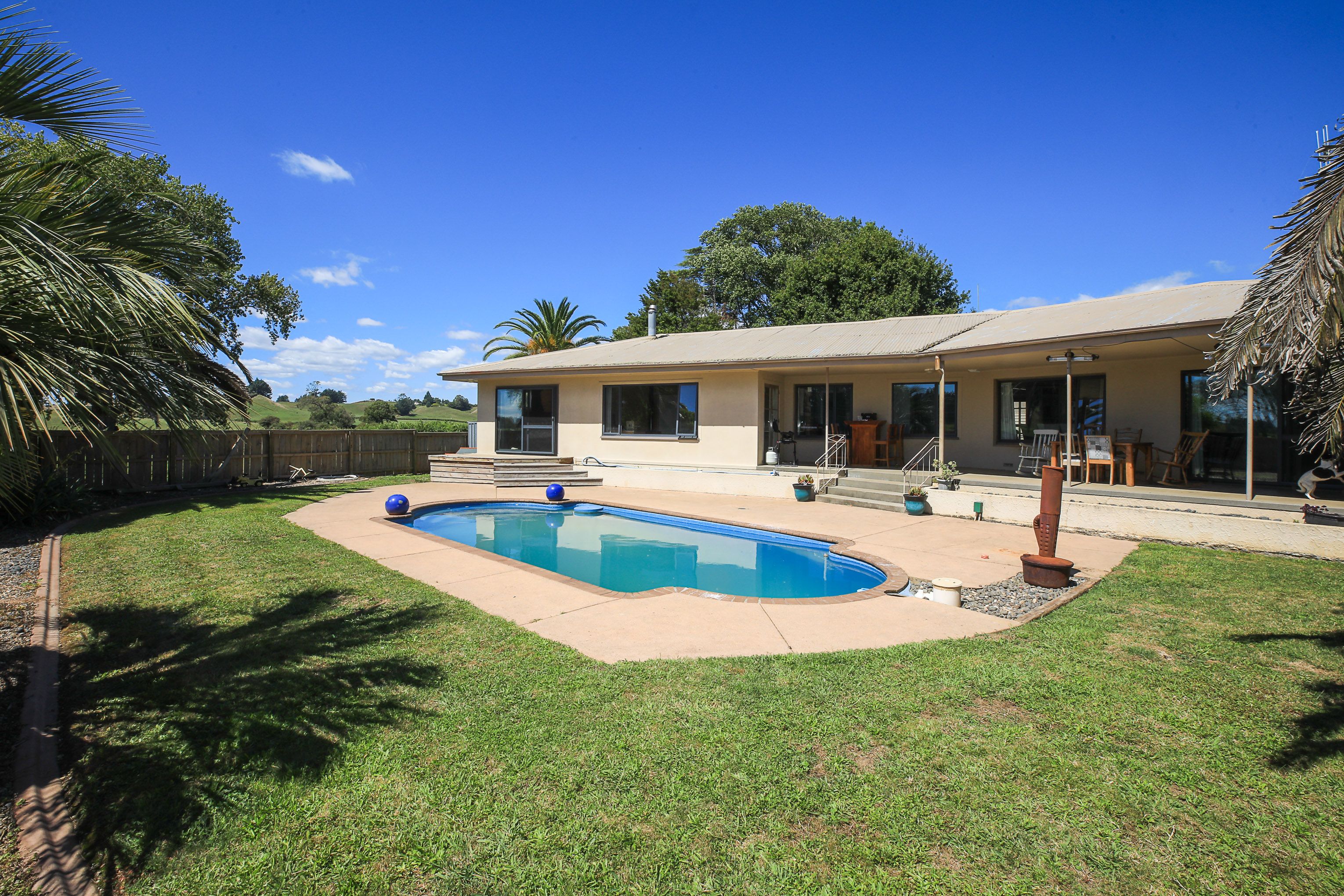 Over 20ha of prime Waikato land is on offer here in the heart of the ever popular Te Pahu district. The homestead is set back off the road up a tree lined driveway and is tidy and spacious, with three large bedrooms, master with ensuite, office, two living areas, and a salt water pool. Two log fires plus a DVS system and double glazing throughout most of the house ensure that the cooler months are well catered for.