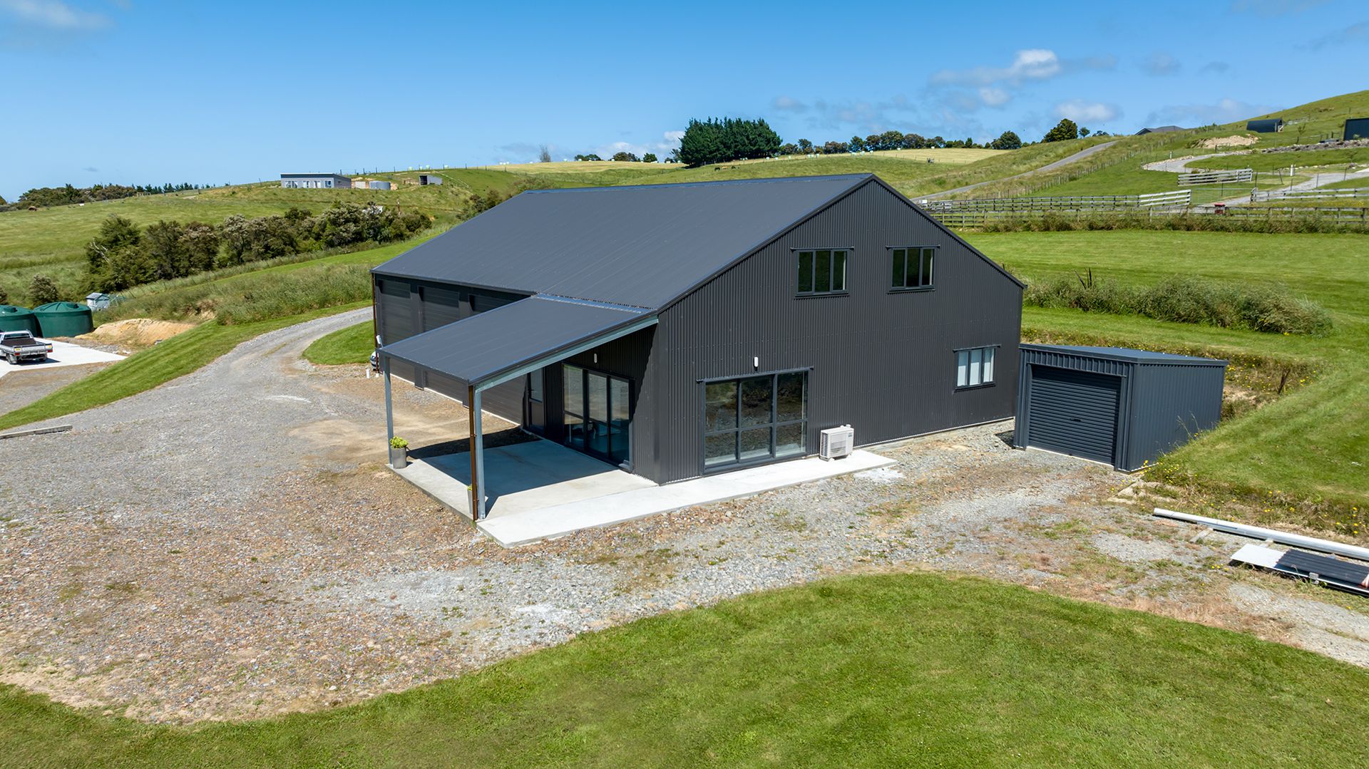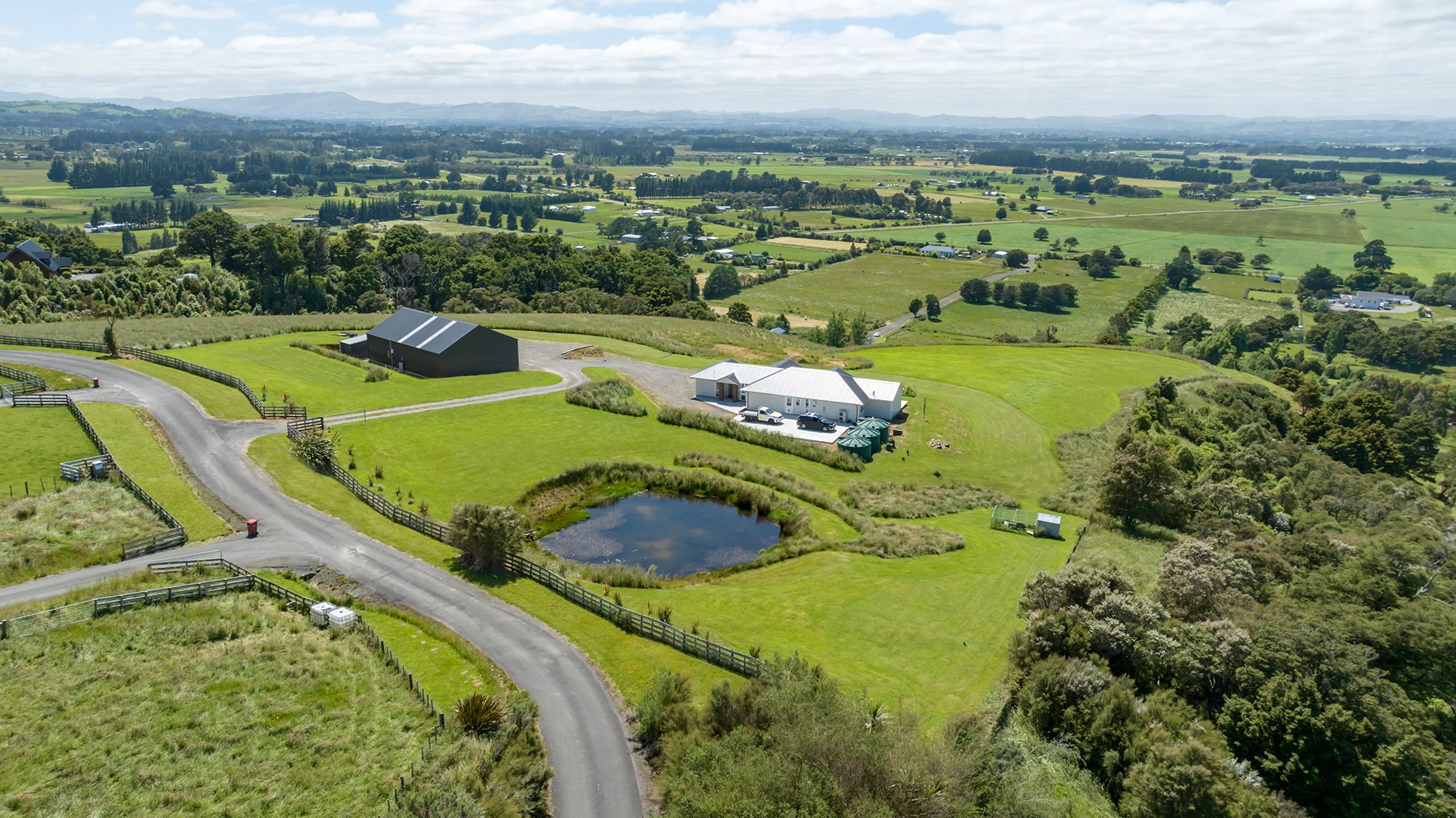 Also situated on this 3.0040Ha property you will find a dream Totalspan shed. 216 sqm built to high specifications, enormous three bay garaging workshop space with room for six plus vehicles,a mezzanine floor and accommodation with bedroom, bathroom and living area. Carport at the front entrance and additional shed at the rear.