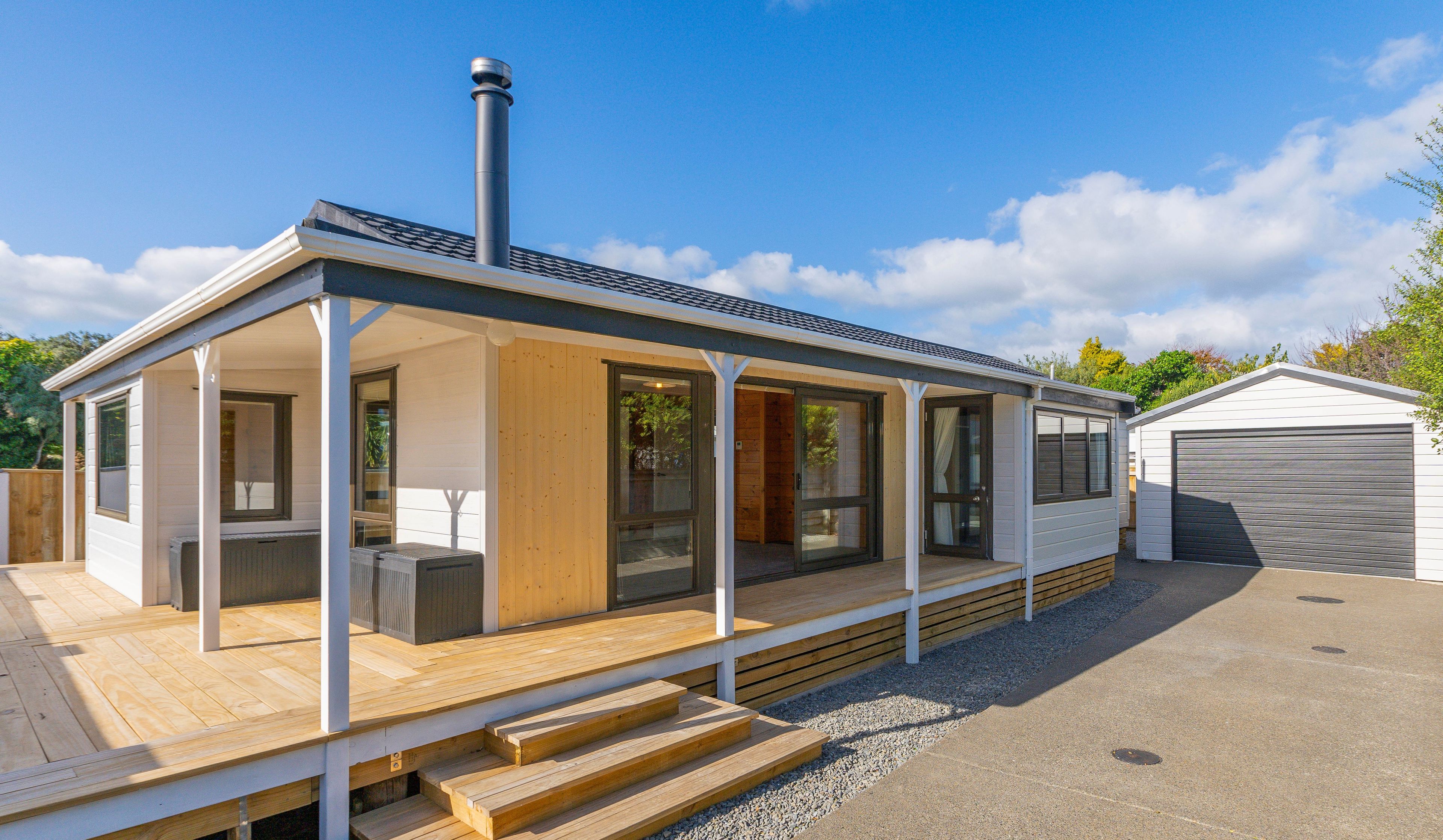 An oversized single garage with automatic door, and a freshly concreted long driveway complete the picture of this easy-care, stylish Lockwood home that's located super close to all of the Paraparaumu Beach action.
