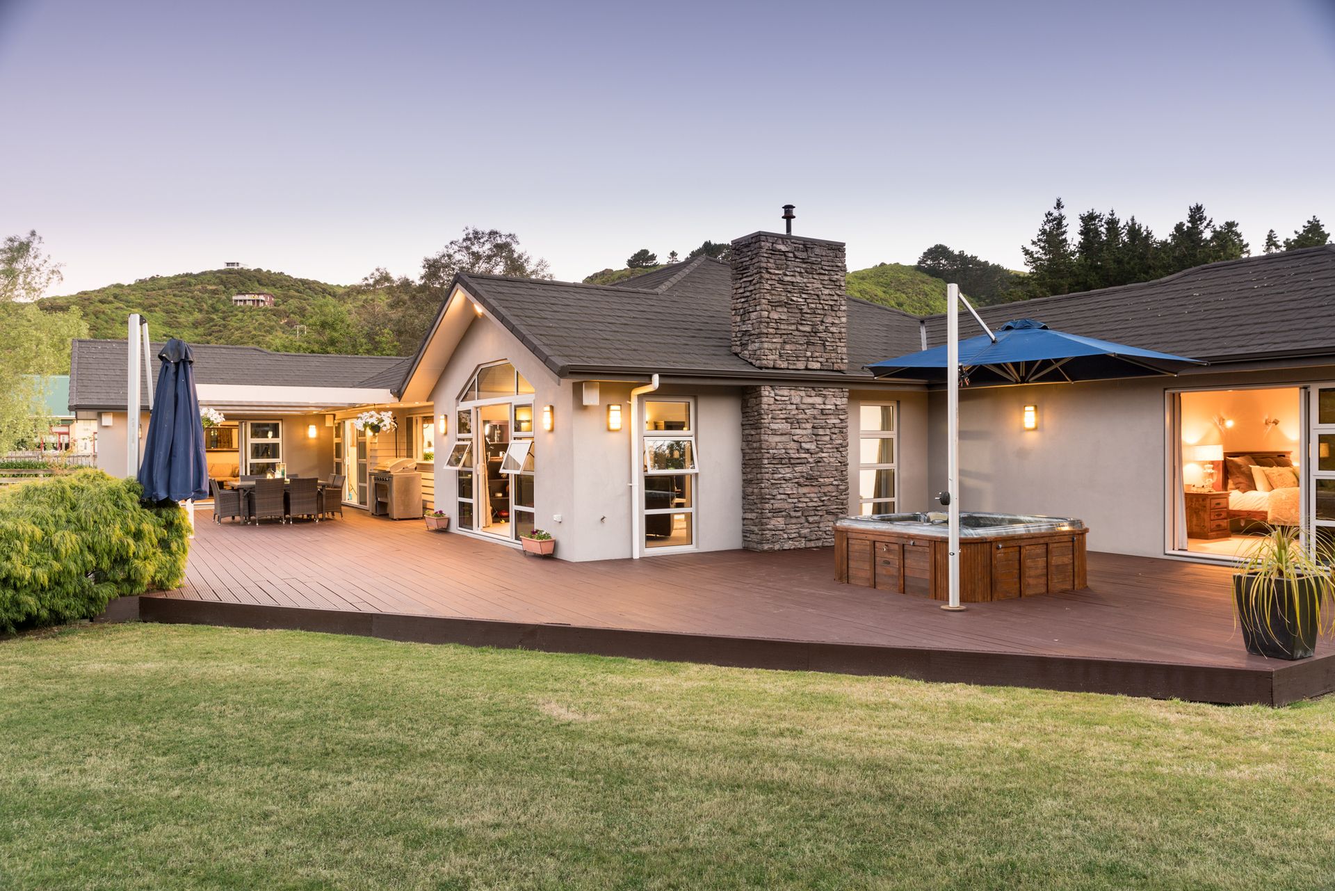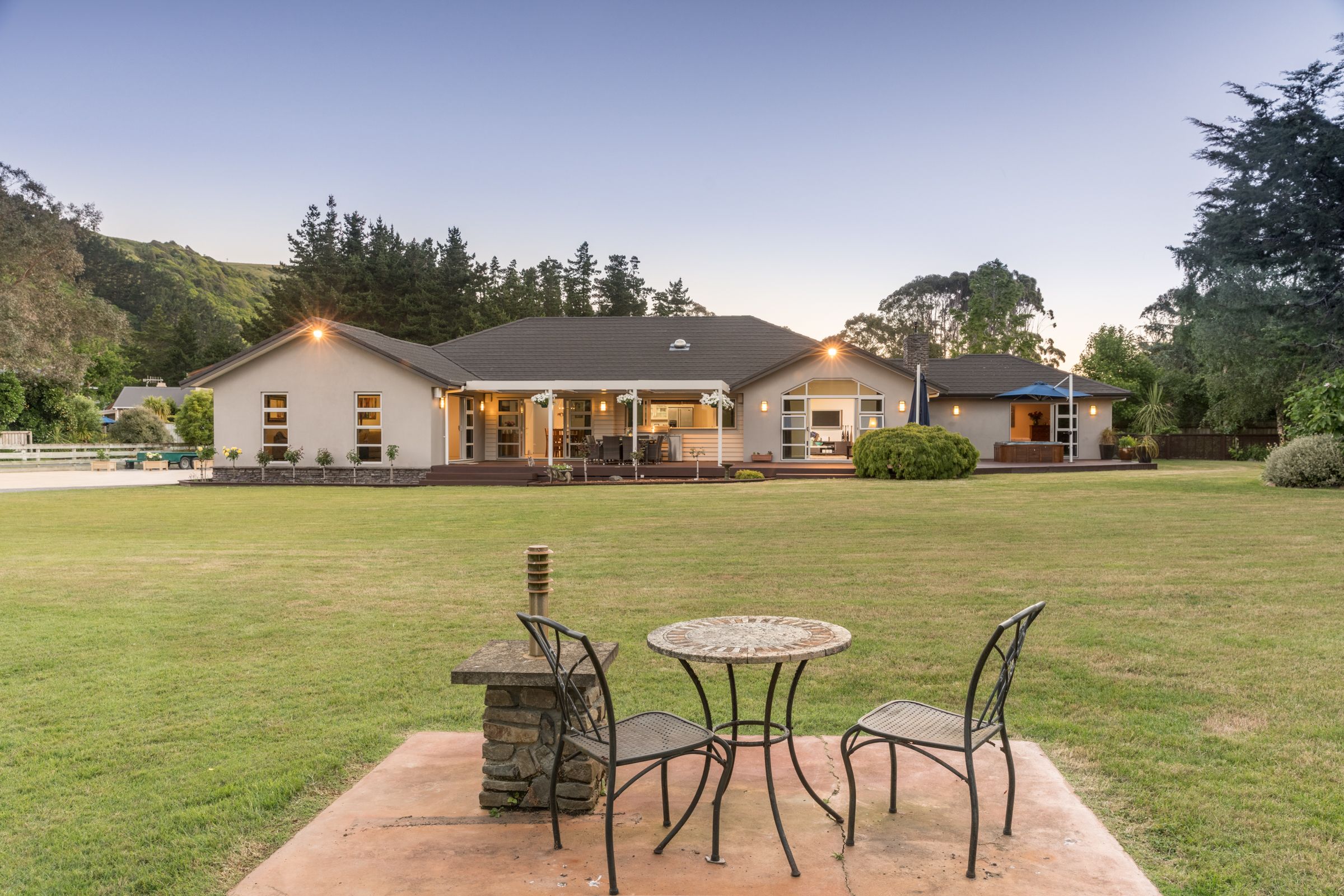 This is 158 Raumati Road. A stunning 390m2 modern 2008 rendered brick home; situated down its own driveway on 3,476m2 of beautifully landscaped, established gardens and manicured lawns. It truly is your ultimate paradise - secluded but in the heart of all the local action!!!