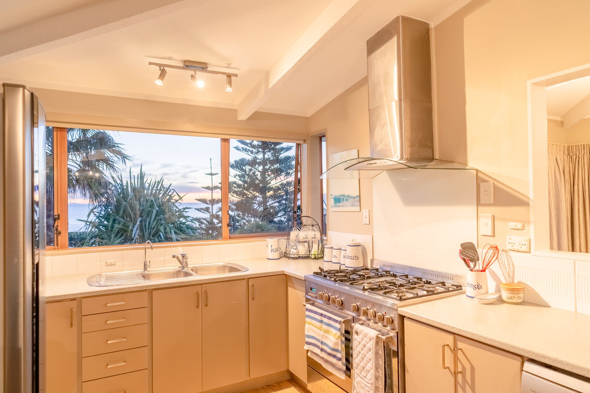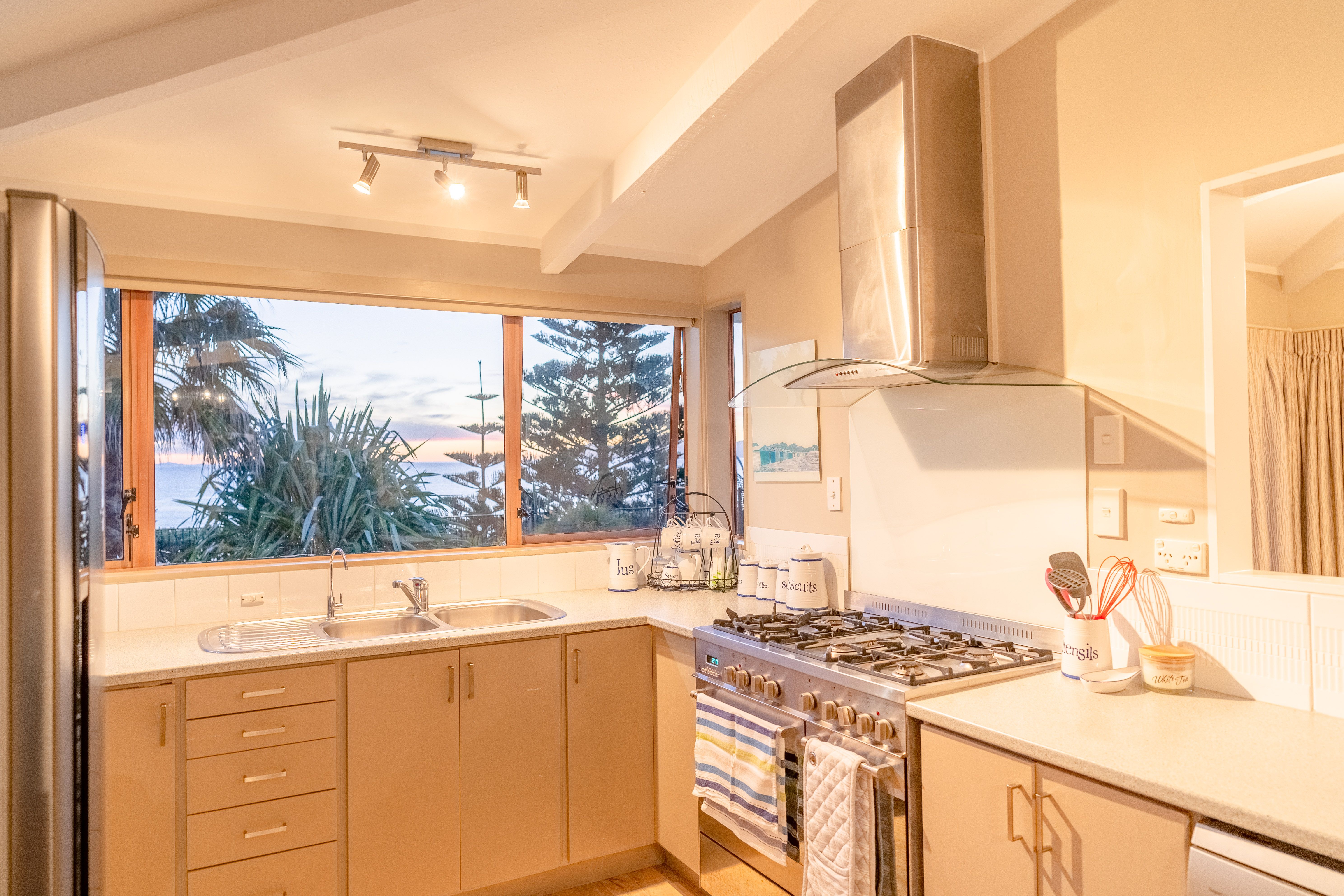 Upstairs we have the main dwelling that offers absolute privacy and lifestyle. With 3 bedrooms and 1 bathroom the home is well suited to downsizers or families looking for a property on the coast that exudes that beachy vibe. The kitchen, dining, and lounge area are all open and connected and creates the perfect hub for this home.