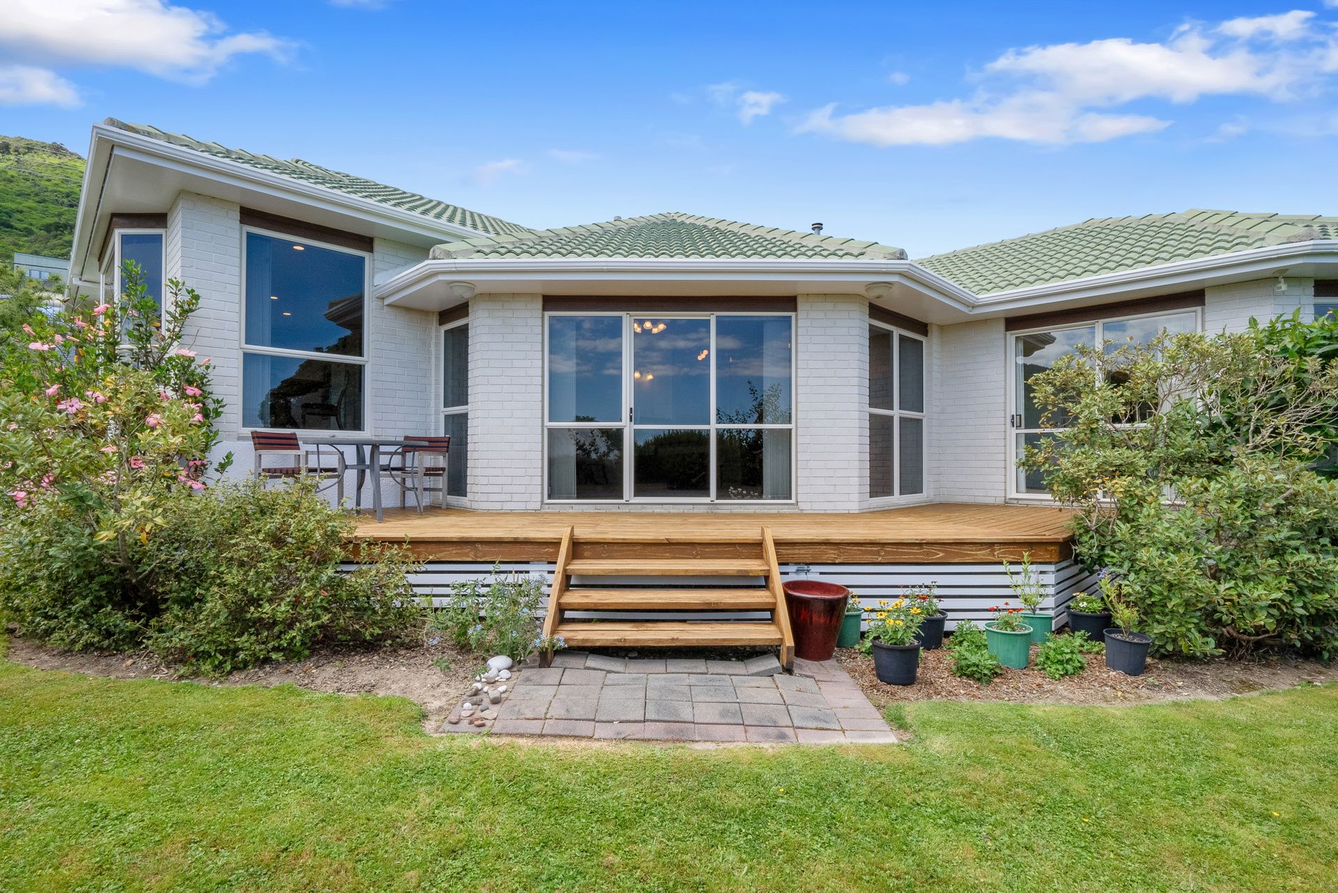 Access to the deck is via the lounge and the main bedroom. There is internal access to the double garage.