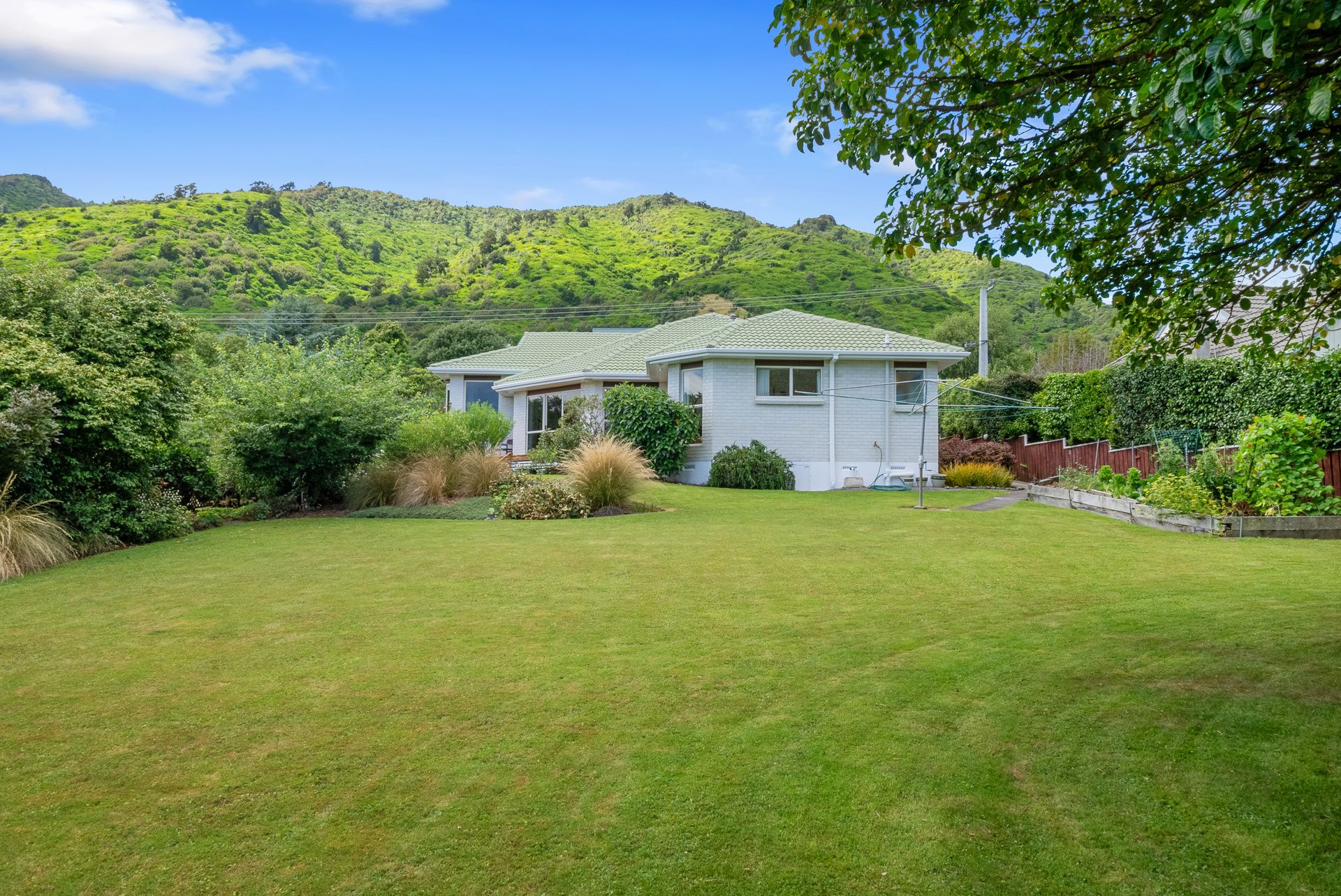 A spacious, sunny section with fruit trees, a vegetable garden and native birdlife brings a peaceful setting to this brick and tile well-maintained home.