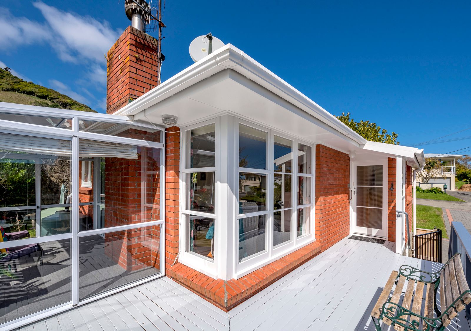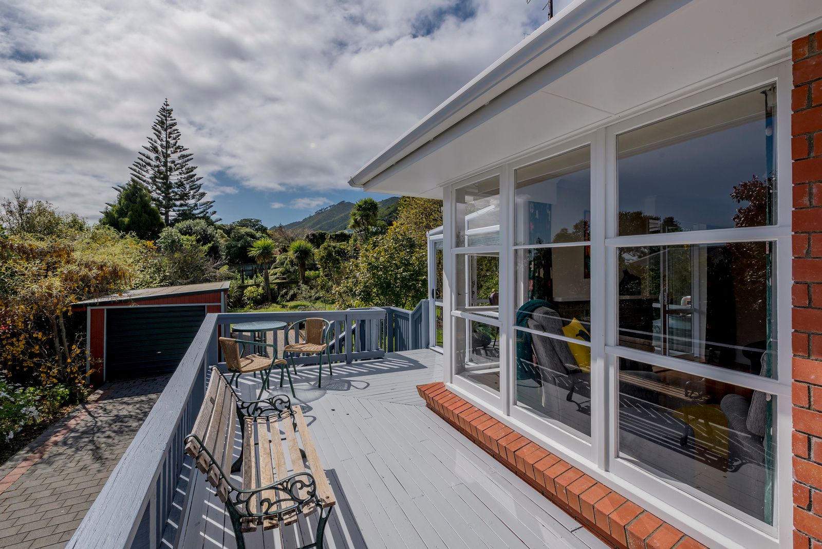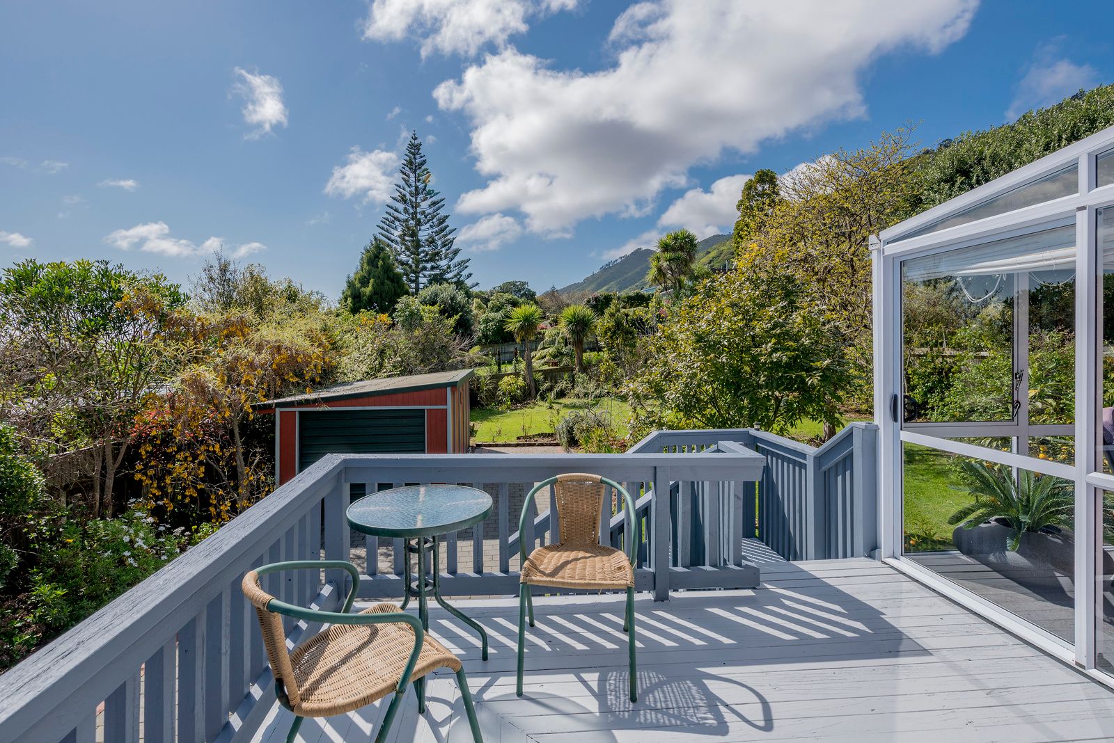 The sunlit living area seamlessly flows into a bright conservatory and decking overlooking the large section with mature trees and birdlife from the nearby Hemi Matenga Reserve.