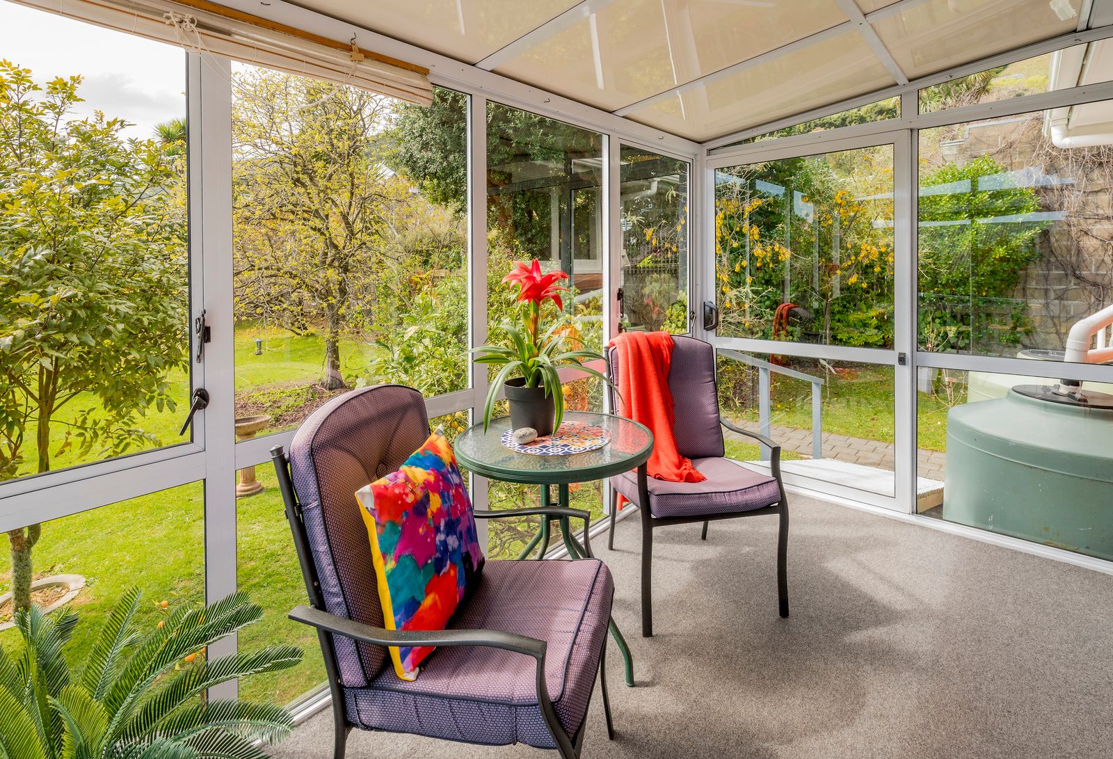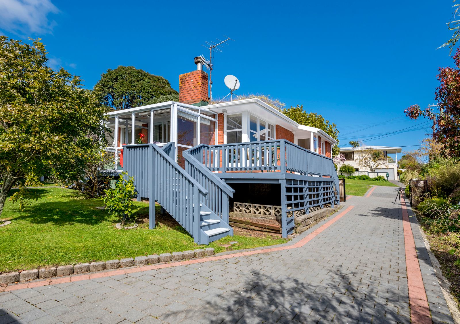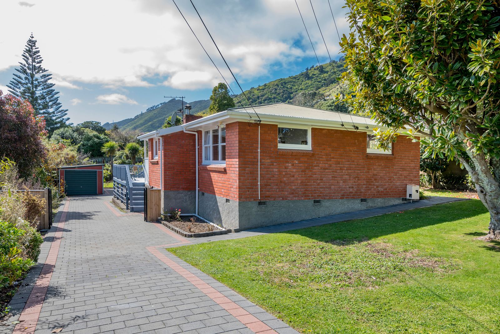 The sunlit living area seamlessly flows into a bright conservatory and decking overlooking the large section with mature trees and birdlife from the nearby Hemi Matenga Reserve.