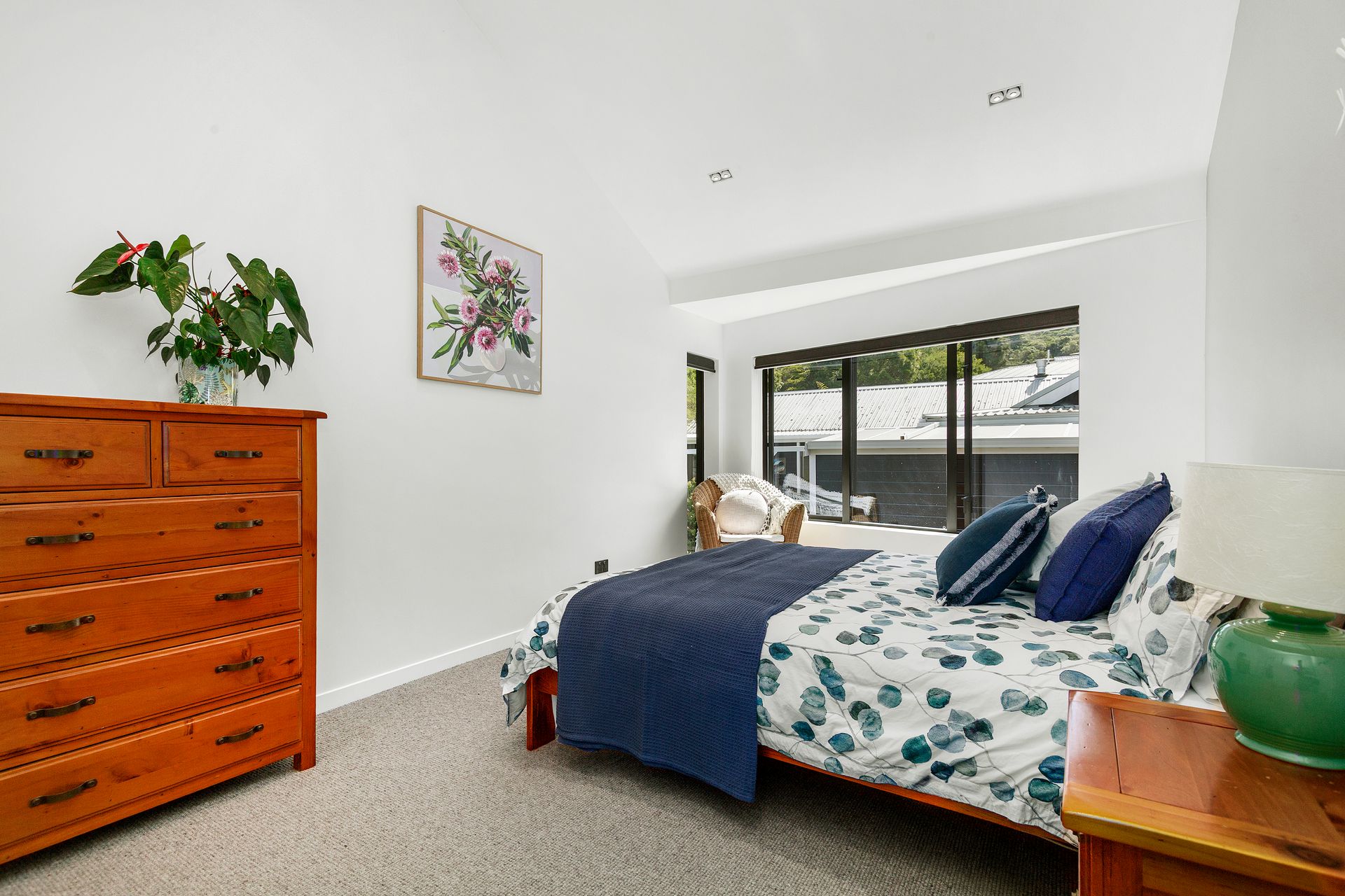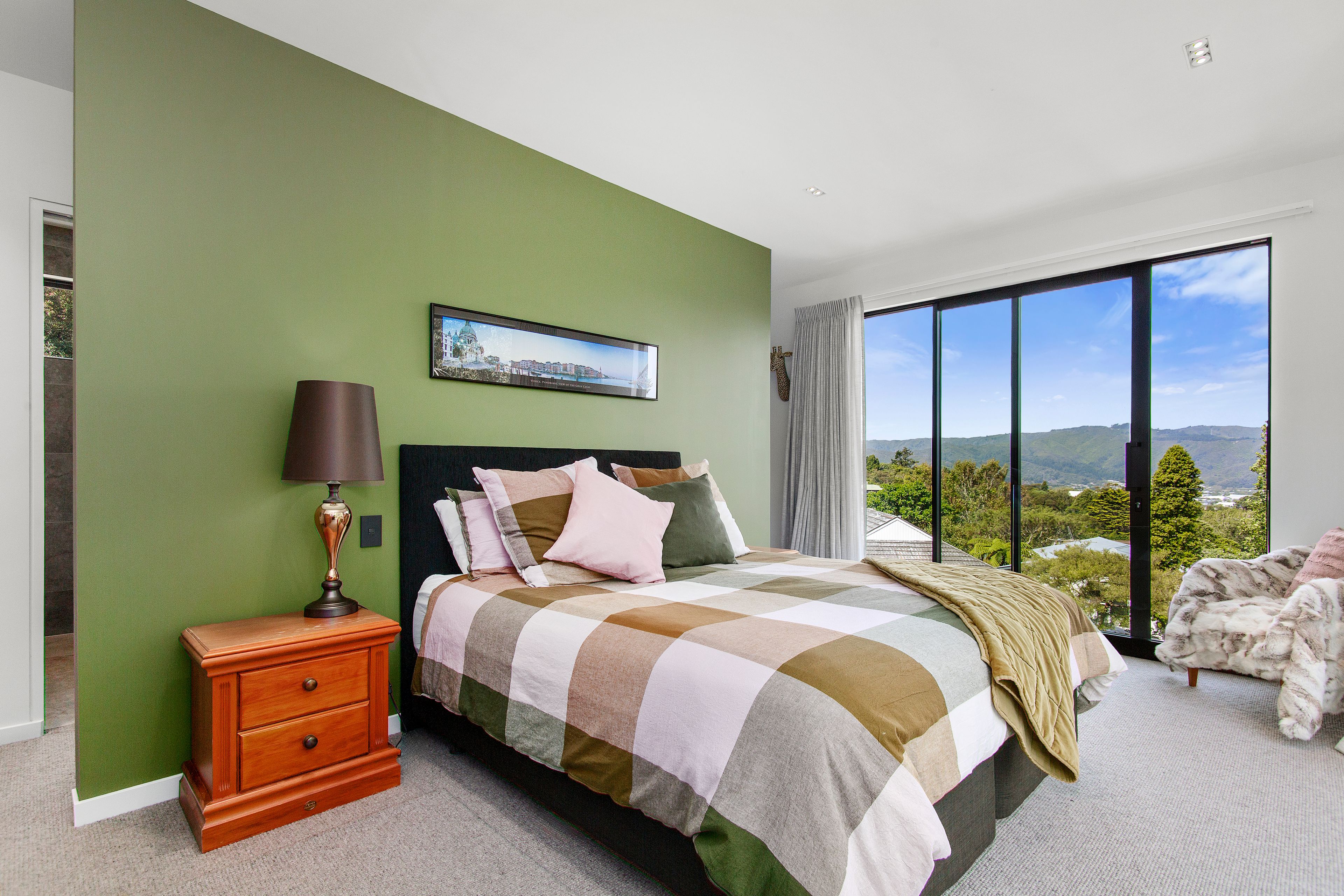 The master suite is a true treetop sanctuary, enjoying sweeping views toward the Remutaka Ranges. With a walk-in wardrobe and elegant ensuite, it feels like a boutique escape within your own home. Two further double bedrooms, a beautifully appointed family bathroom, separate laundry, and double garaging complete the picture.