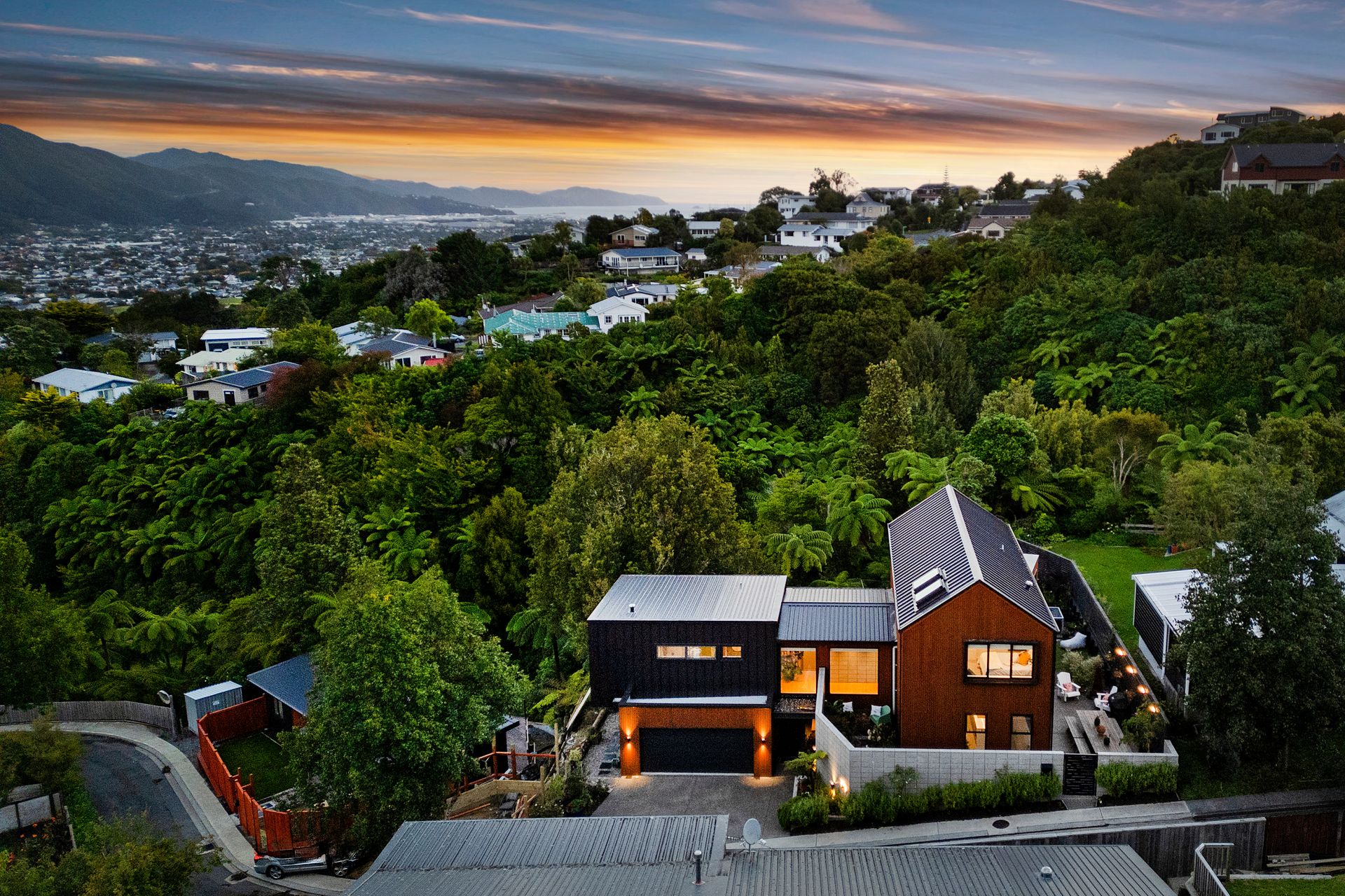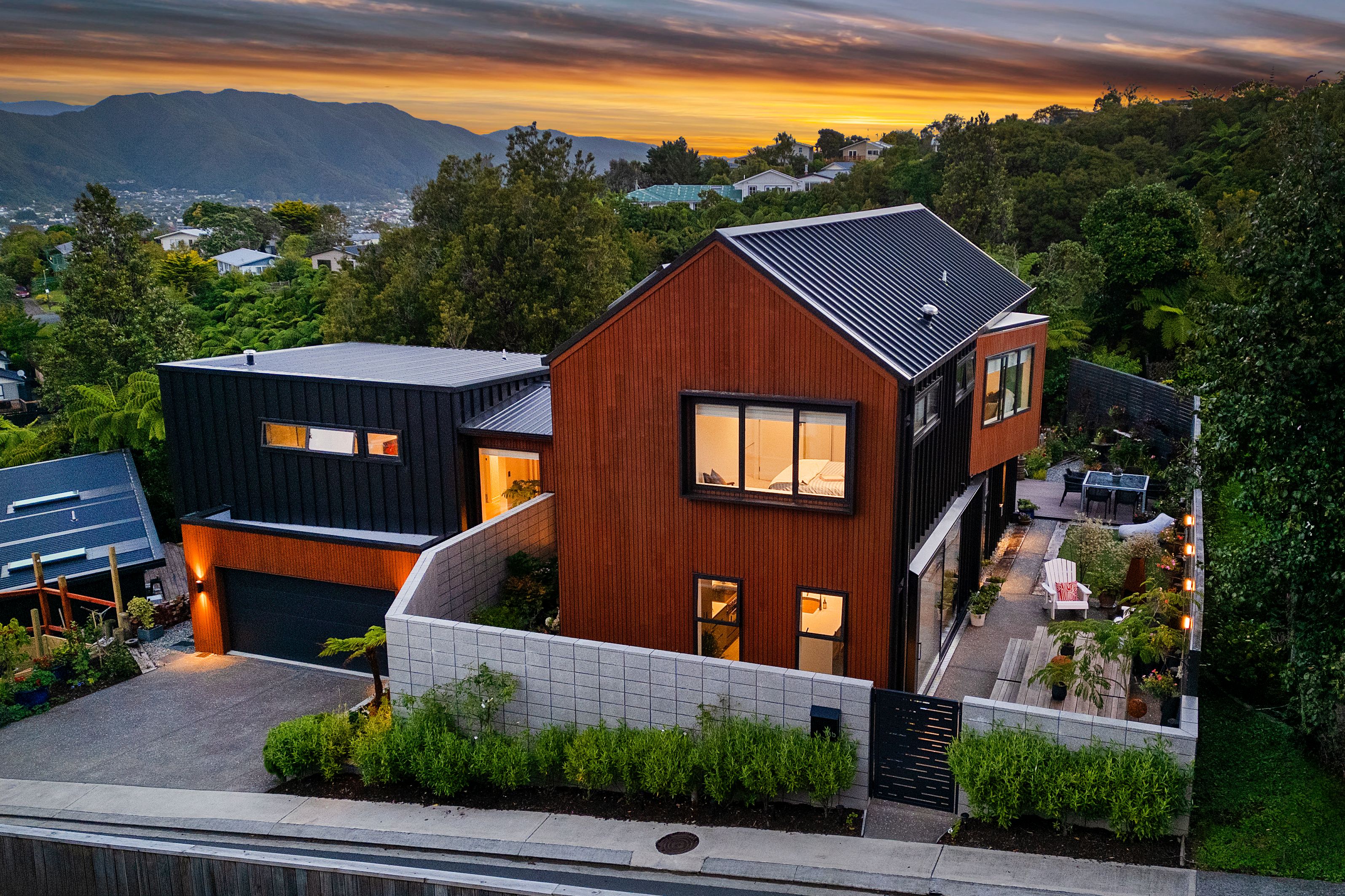 For further information on design please see https://mooredesign.nz/project/belmont-townhouse-in-the-bush