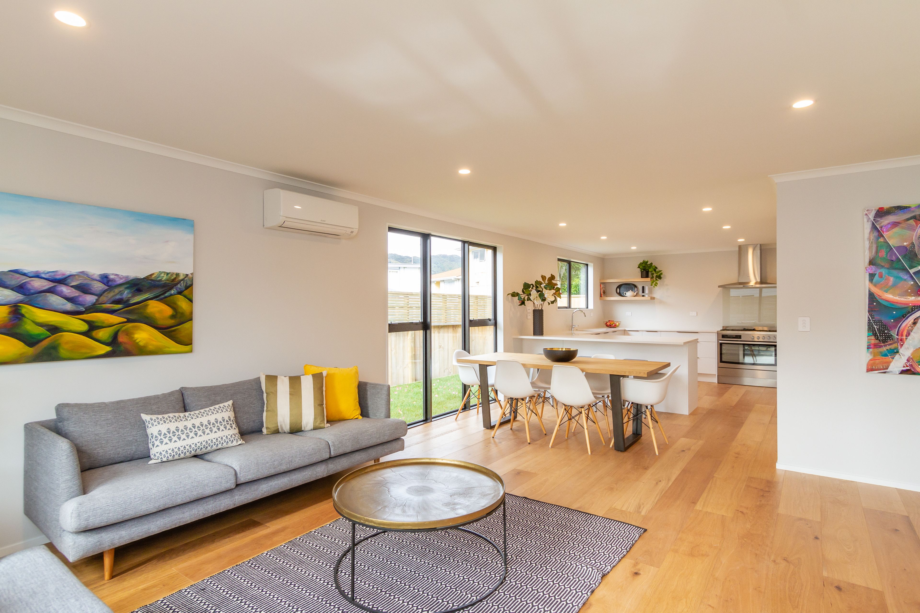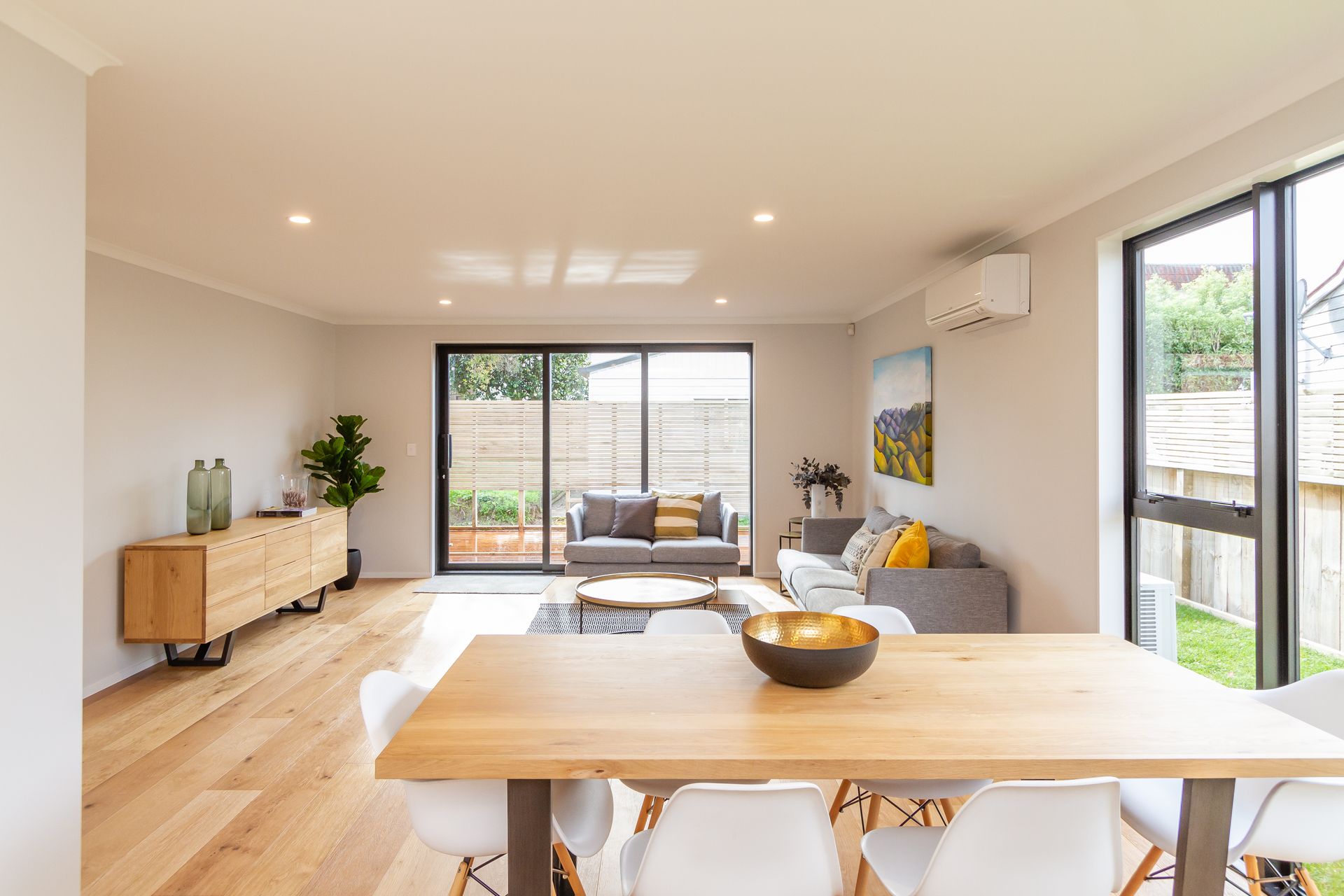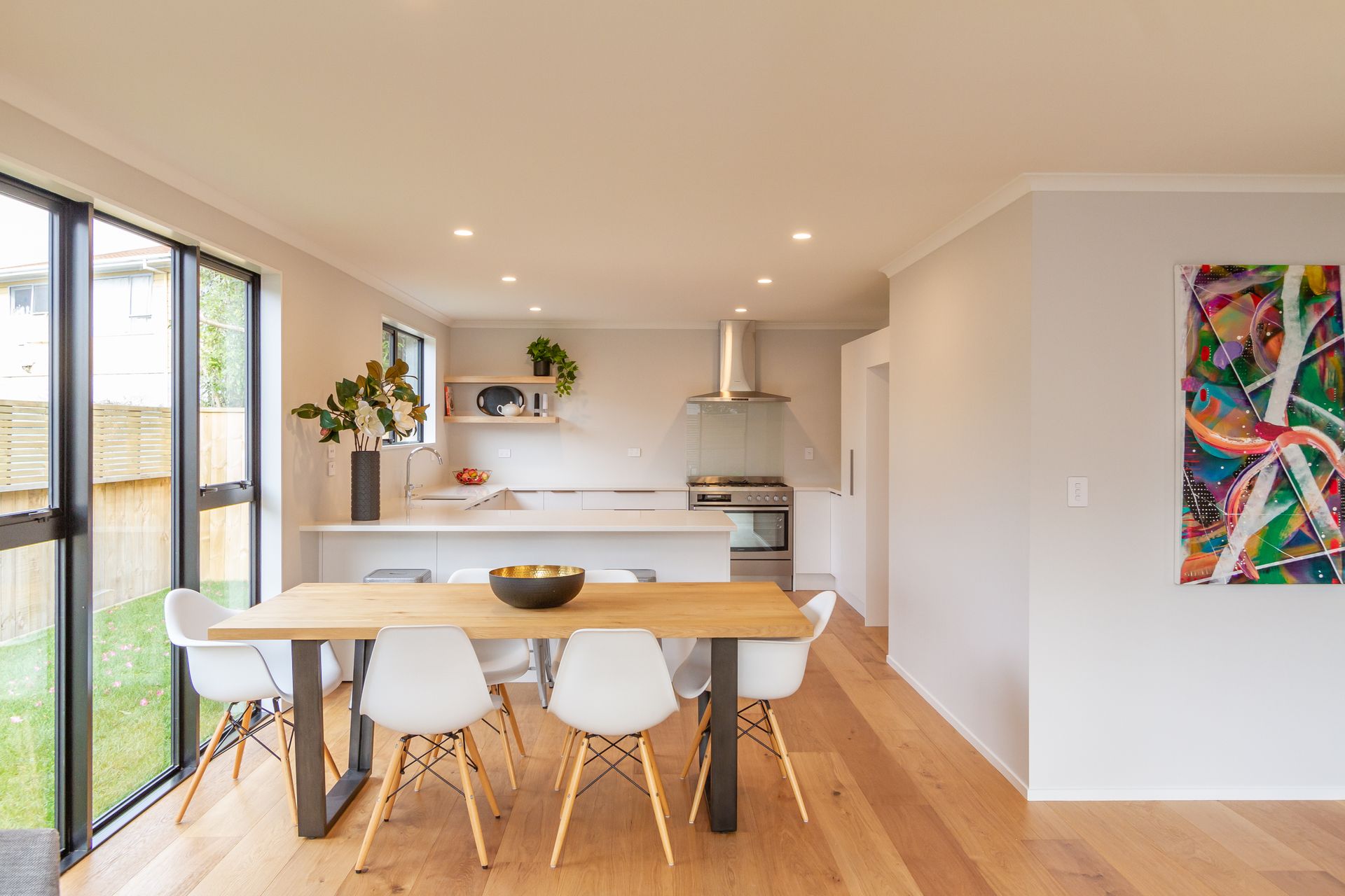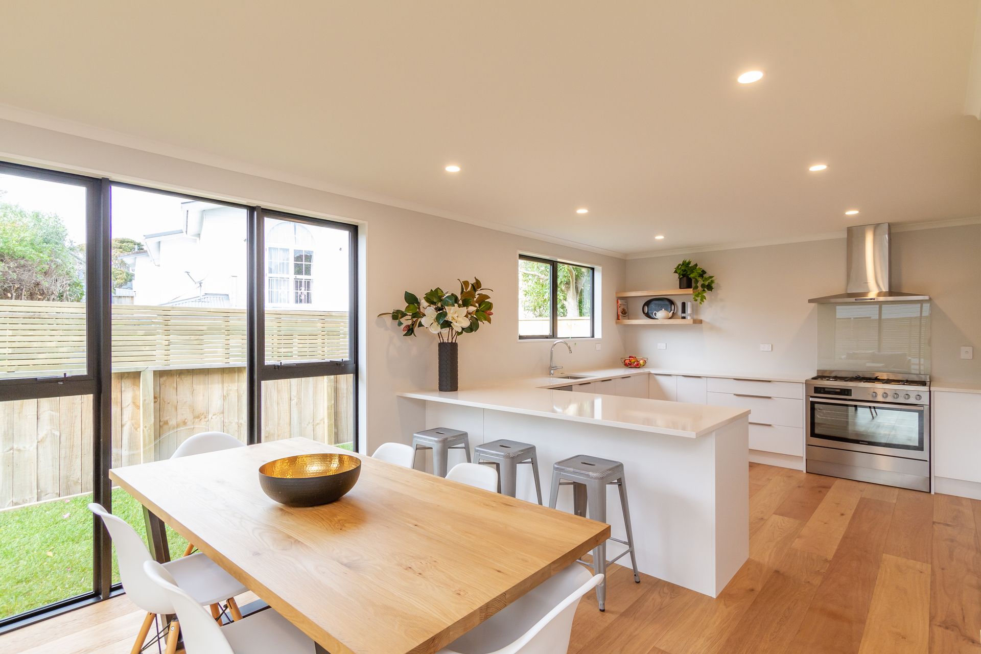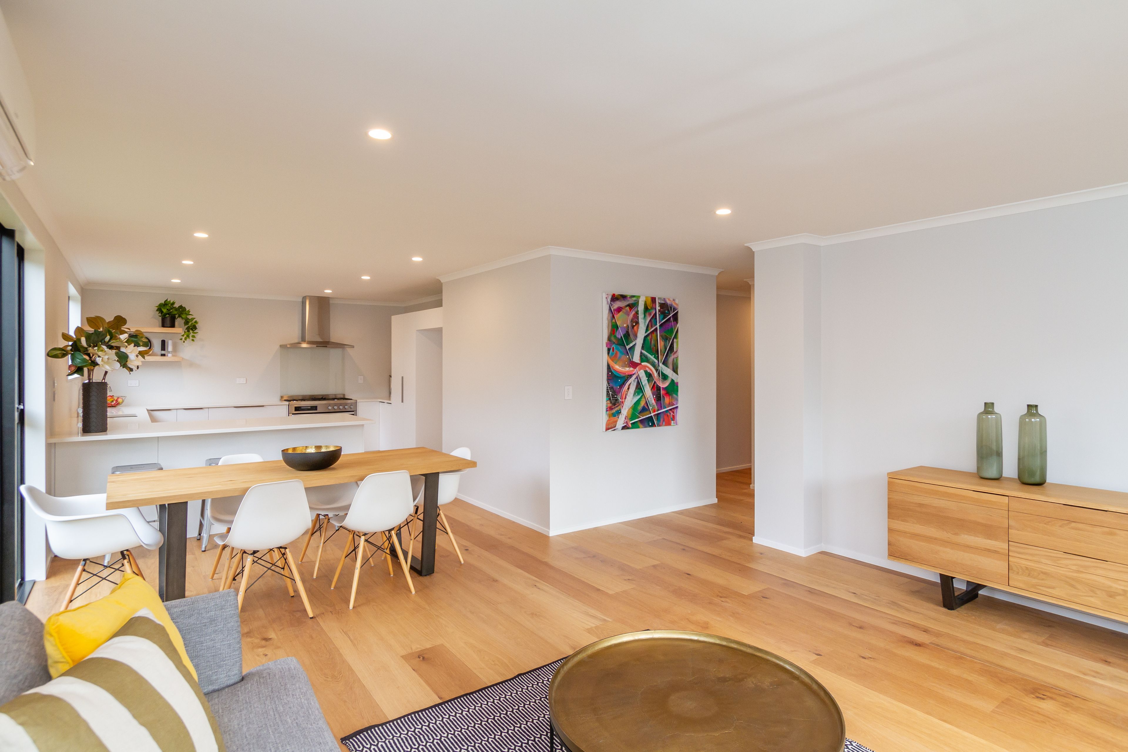 Open plan dining and living areas combine with grand kitchen to provide the ultimate entertainers space.