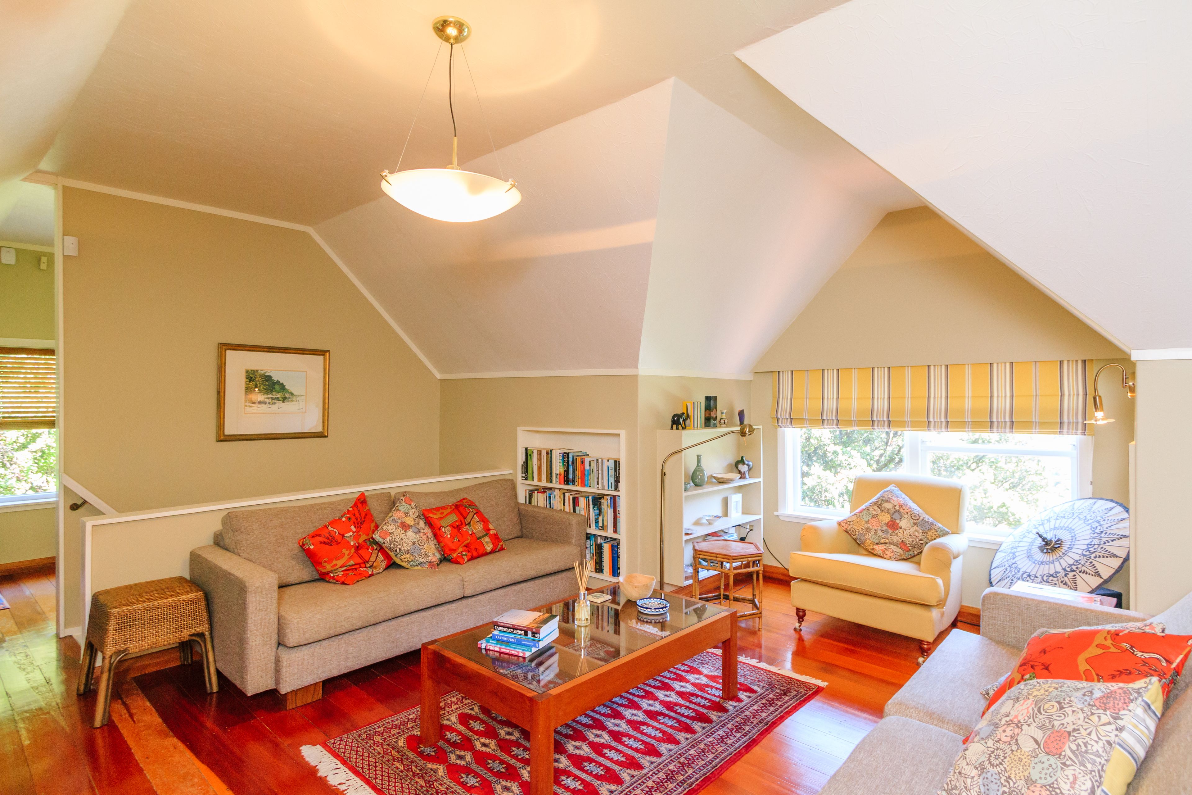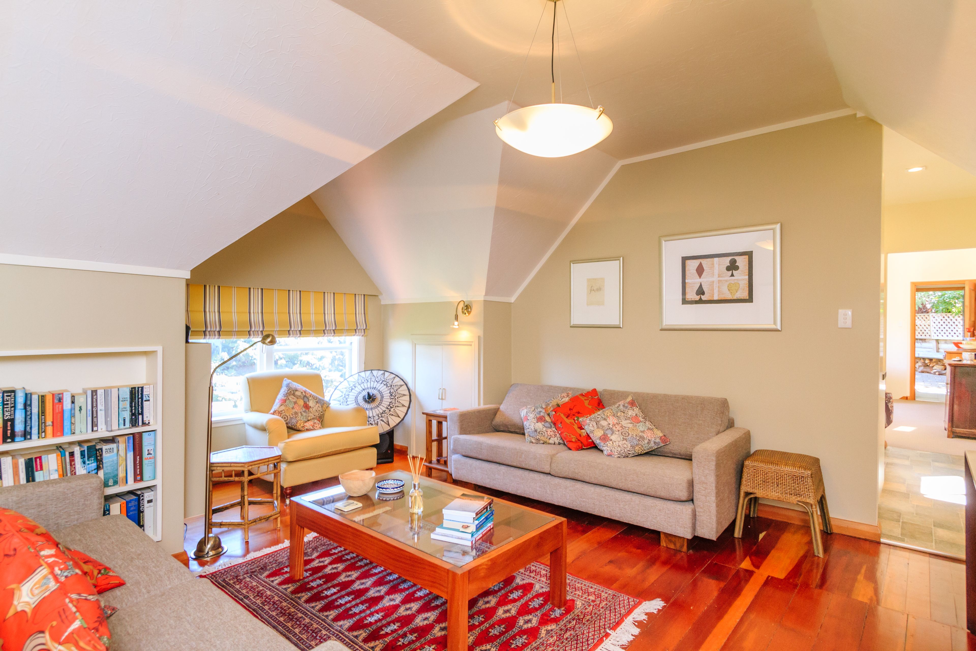 The home also has a lower lounge or "den" with window seats around a beautiful fireplace and a heat pump. There is an office, a stunning refurbished family bathroom, which has underfloor heating, bath, shower, vanity, W.C. with laundry. There is also a sophisticated separate lounge with a heat pump for instant warmth on winter evenings. The home is surrounded by picturesque, landscaped gardens and native bush for the children to enjoy countless adventures.