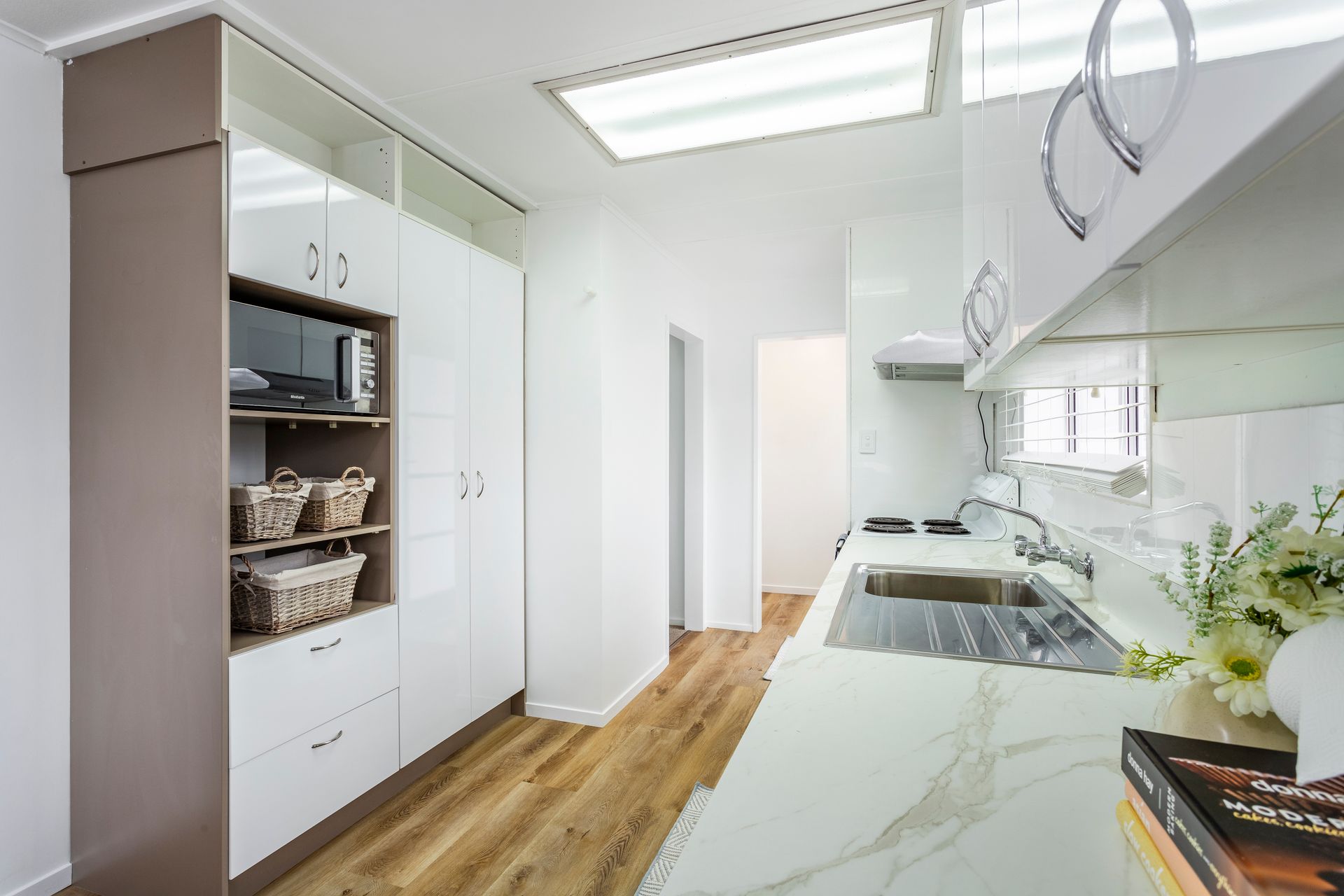 The heart of the home is a cozy living area, that flows seamlessly into the kitchen, creating an inviting atmosphere for family gatherings and entertaining friends.