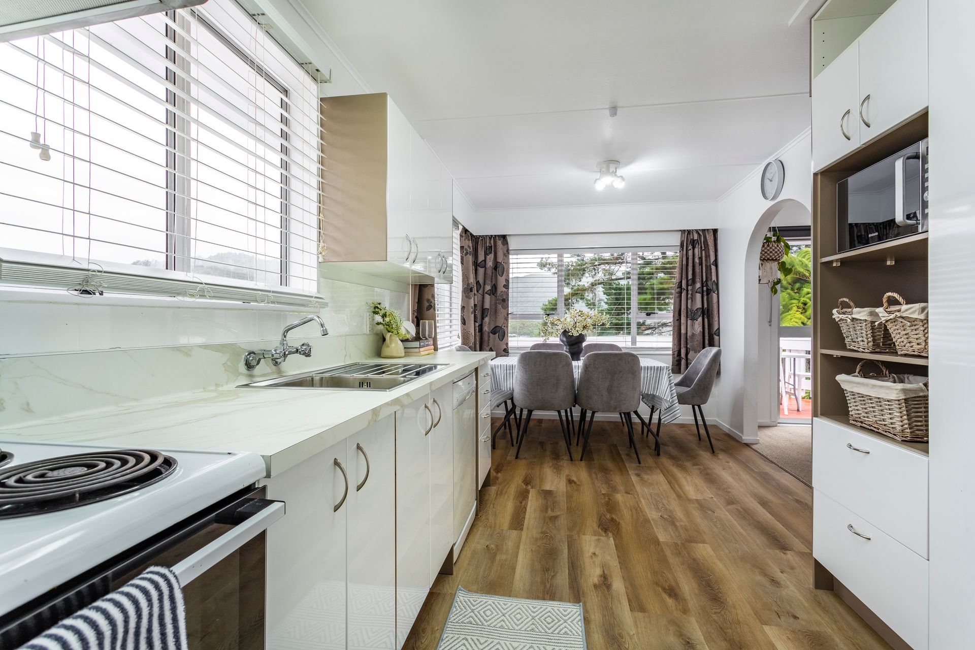 The beautiful kitchen and open-plan dining area are another nice feature of the property.