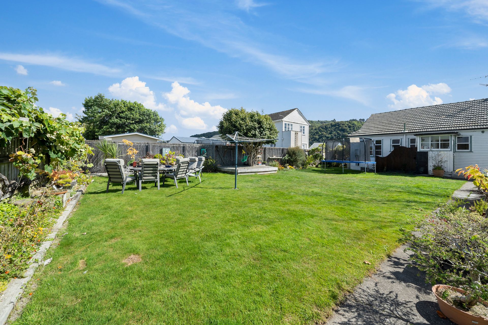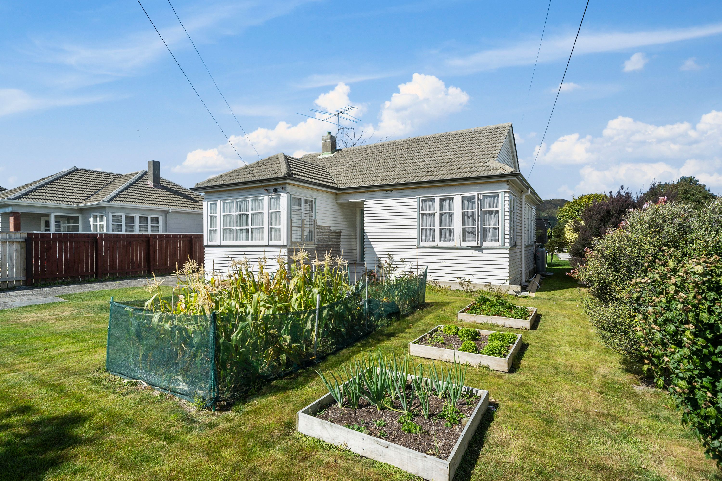- Established garden with flat lawn and vegetable gardens