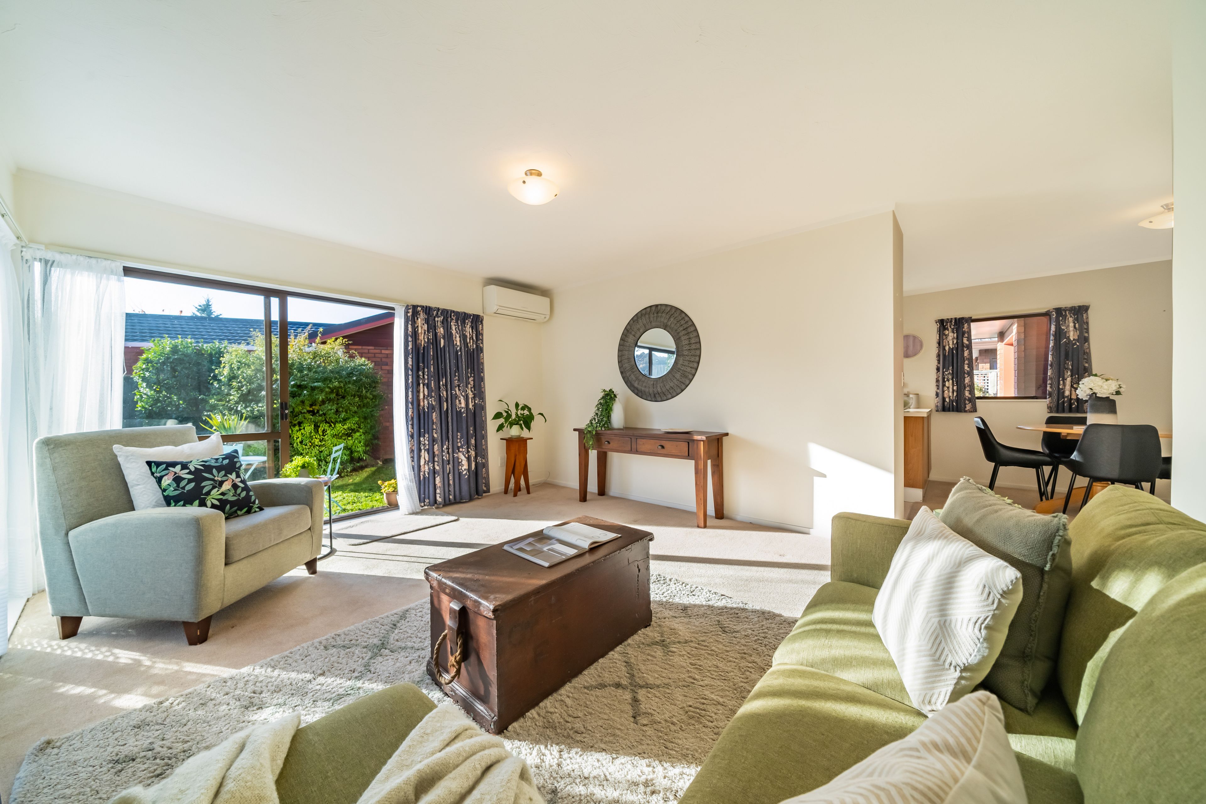 Down a driveway, this home enjoys all day sun and luscious established gardens, just enough to potter in. The brick and cedar exterior with aluminium joinery features open plan spacious living including a lounge with a ranchslider inviting the outside in. The kitchen is equipped with electric cooking, plenty of storage and fridge.