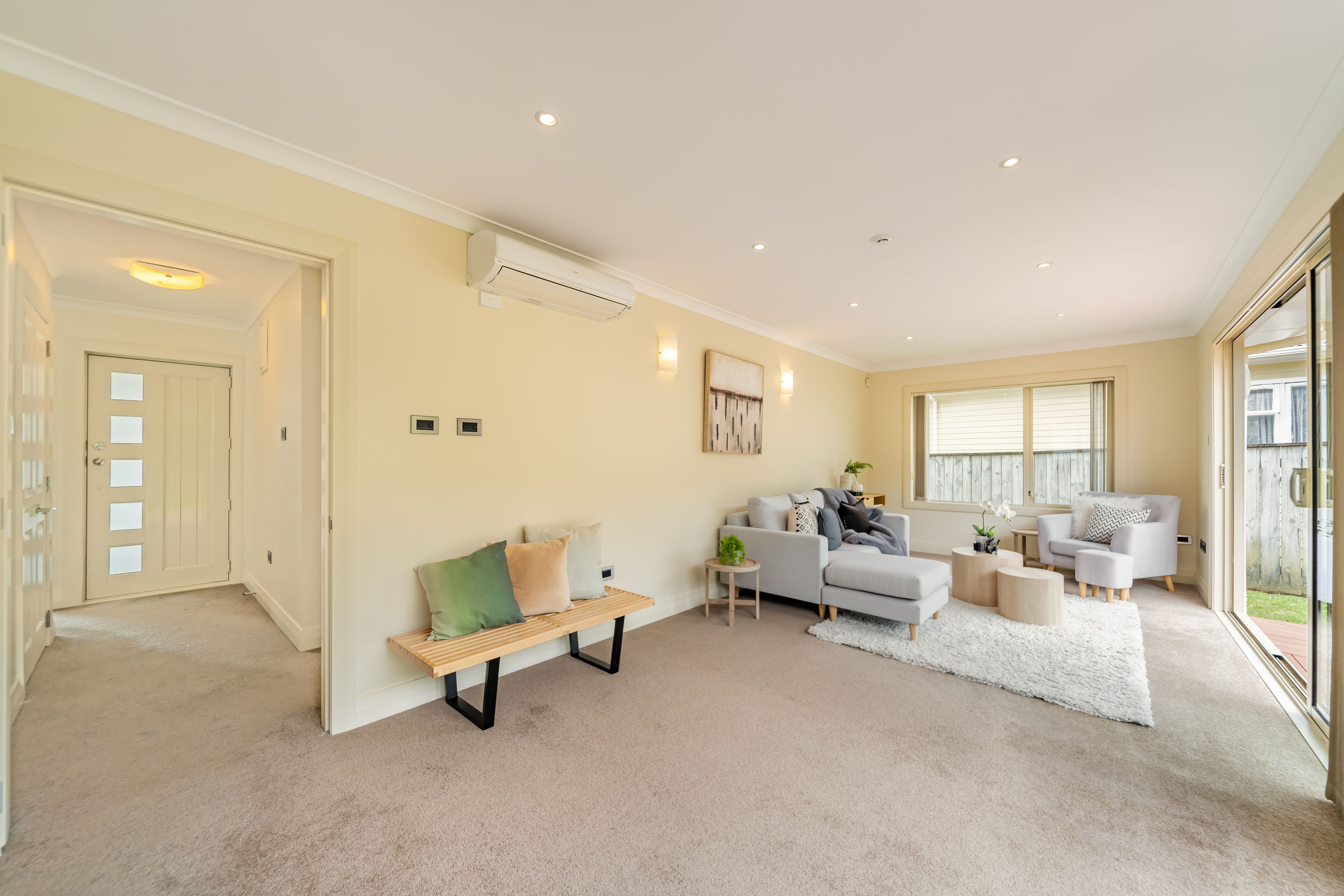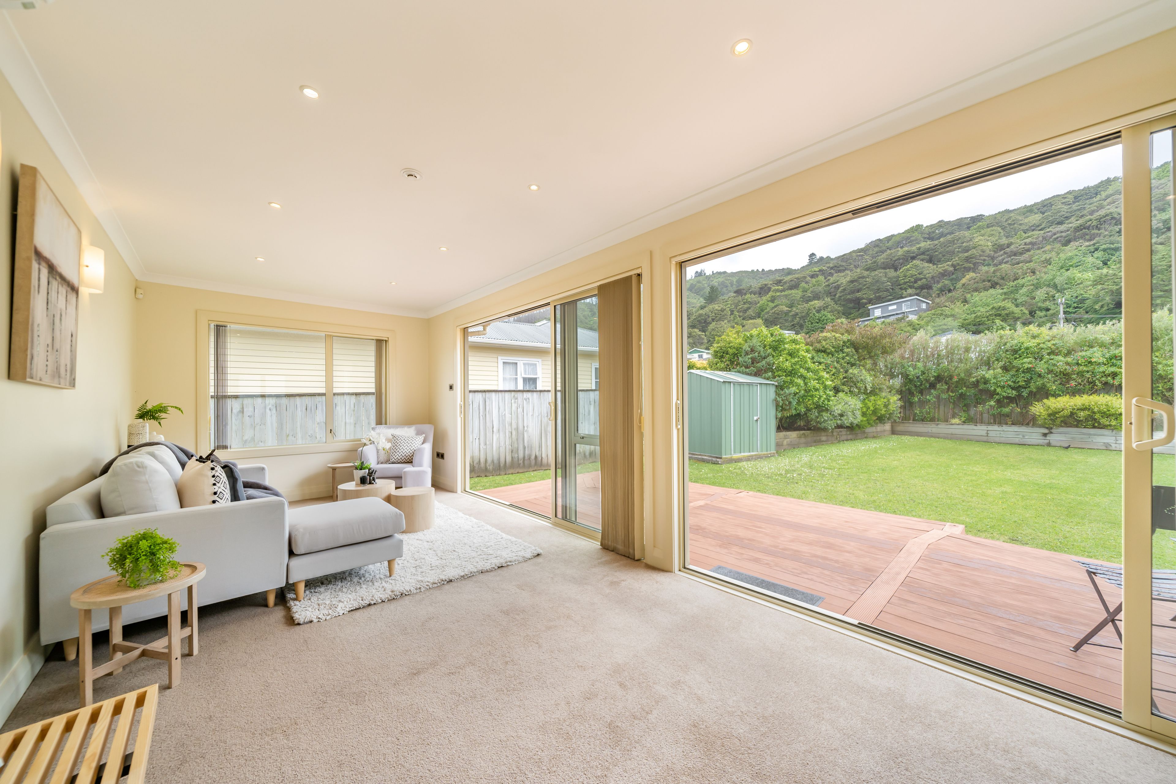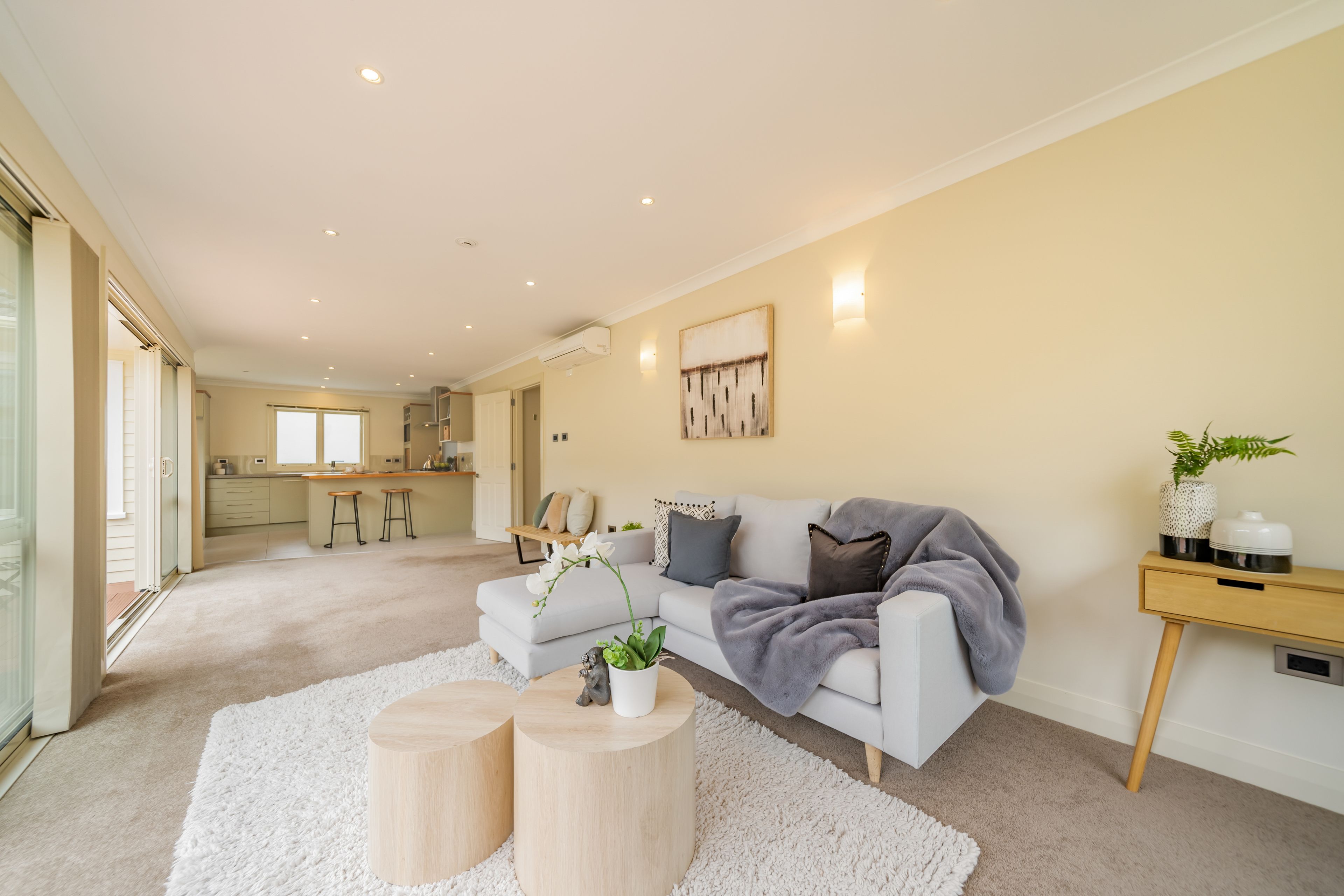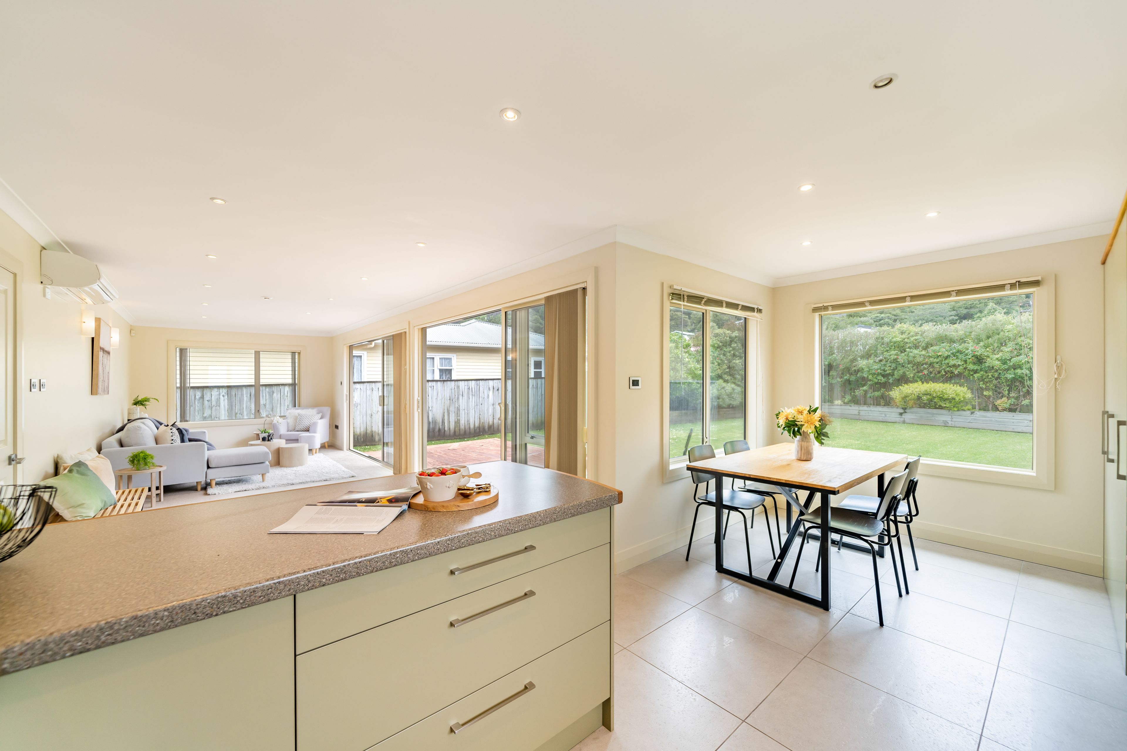 The 104sqm home features mostly in the spacious open plan living, contemporary style kitchen with mountains of storage, dining area and living space. Floor to ceiling sliders can be pulled back spilling out onto a large deck providing extra living space to entertain or kids to play safely.