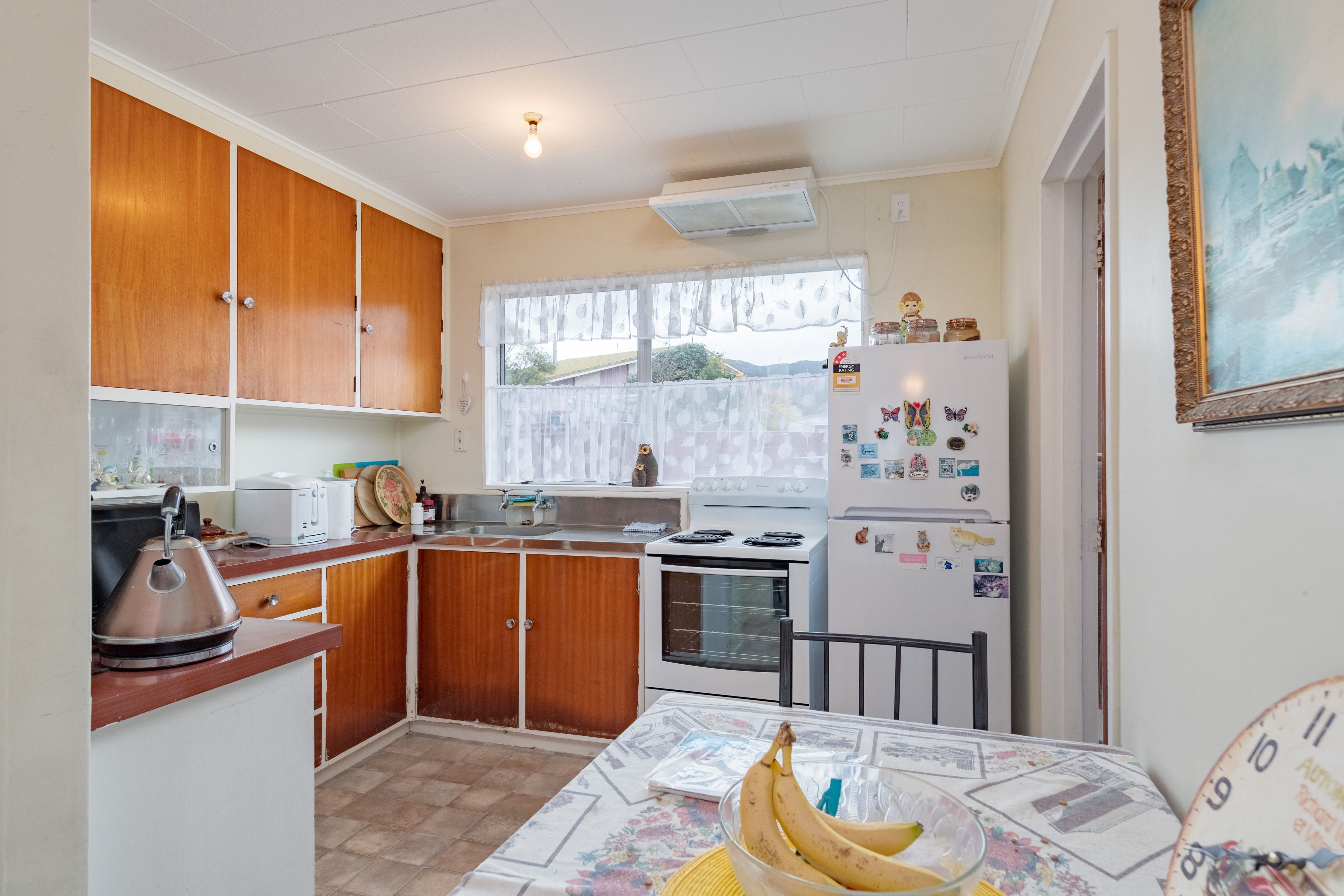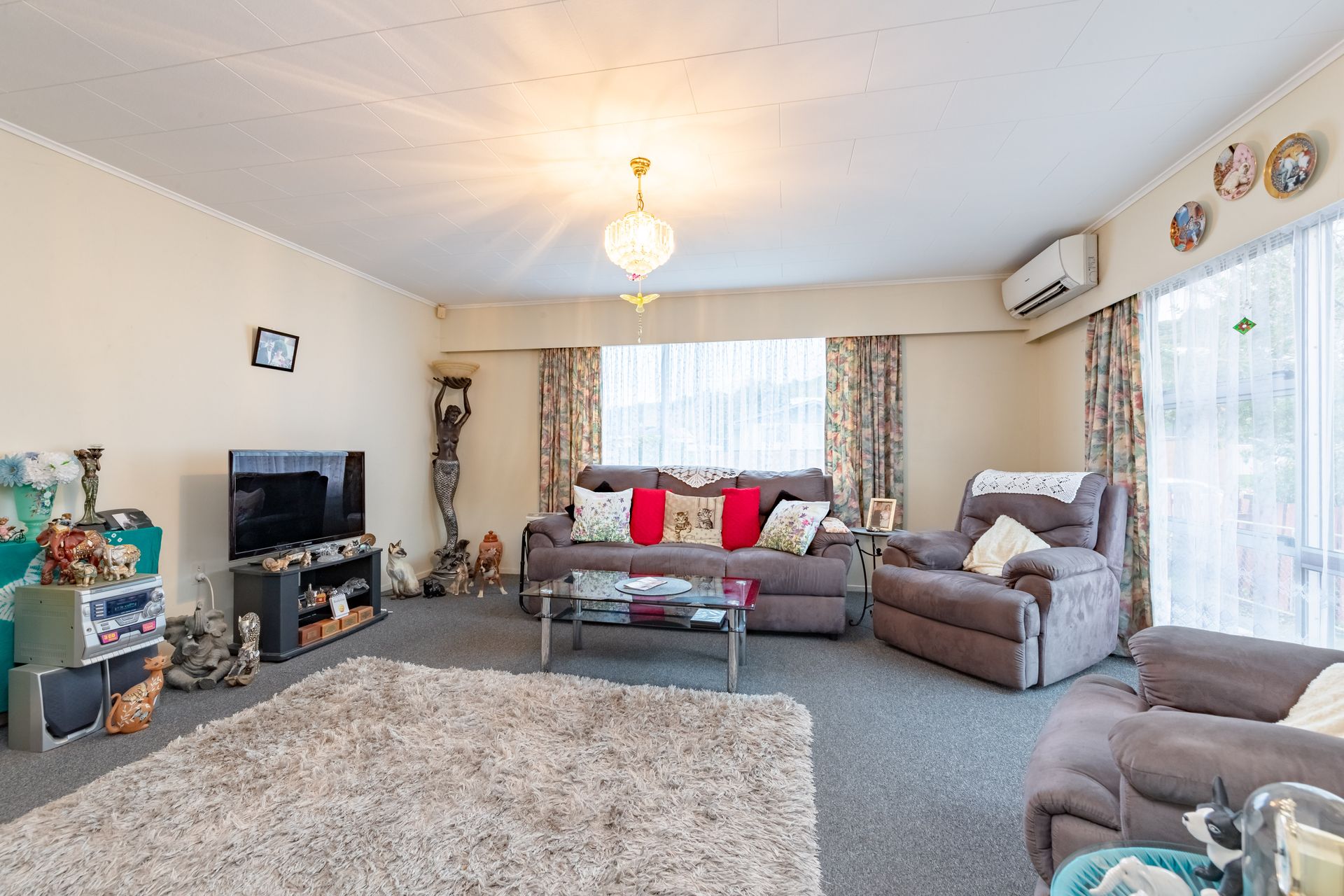 Open plan living with the kitchen offering loads of cupboard space and a new stove. The lounge is very spacious with a heat pump to keep you cosy and warm on those cold winter days.