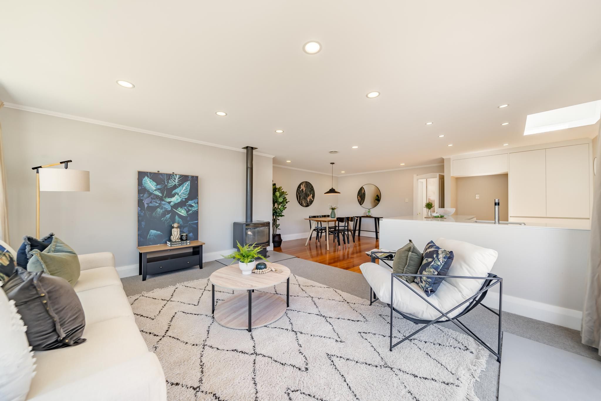 A light and bright interior finished with crisp colours gives this home a cosy feel from the high ceilings in the entrance way to the polished wooden floors and the leadlight windows.