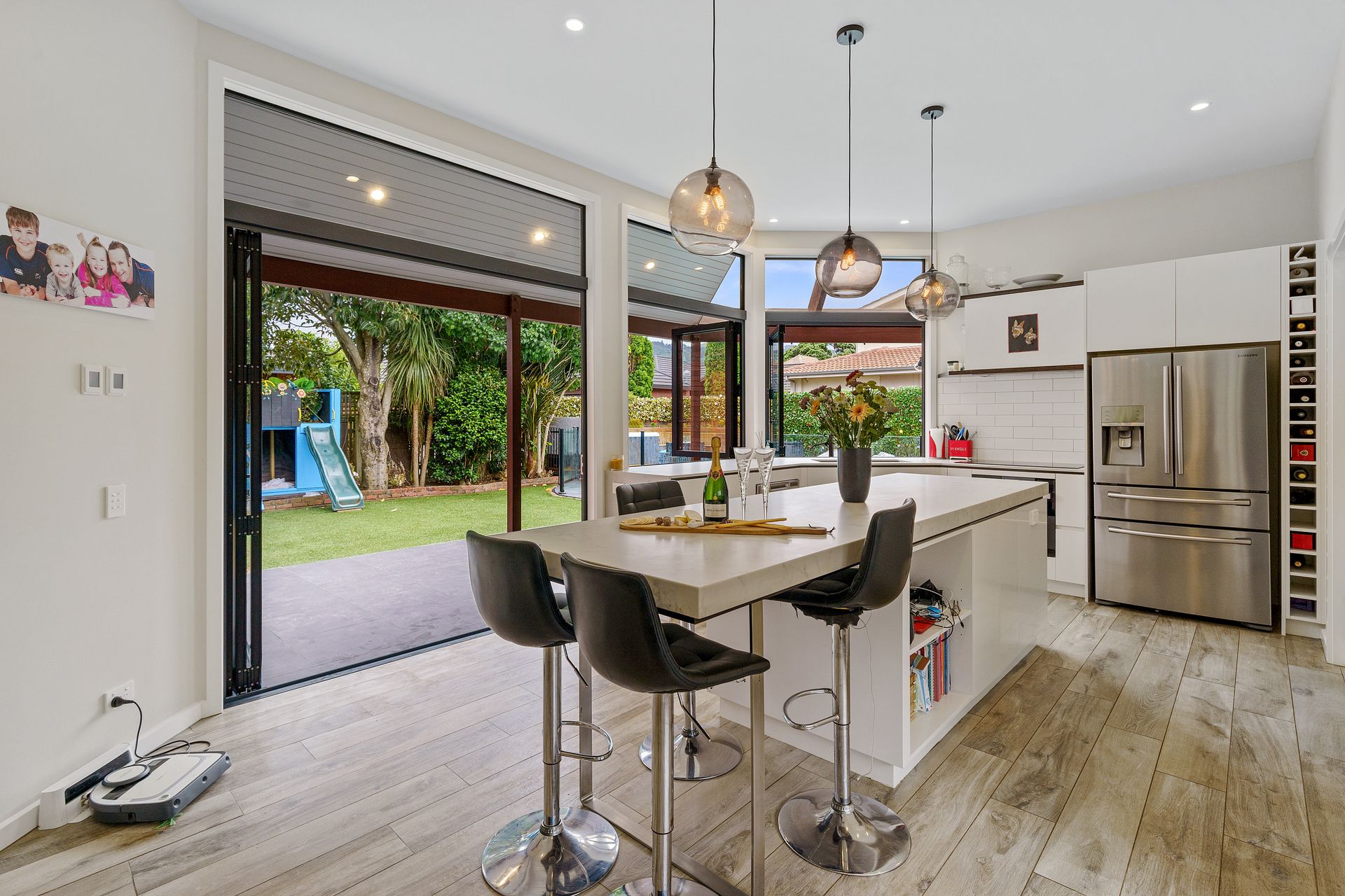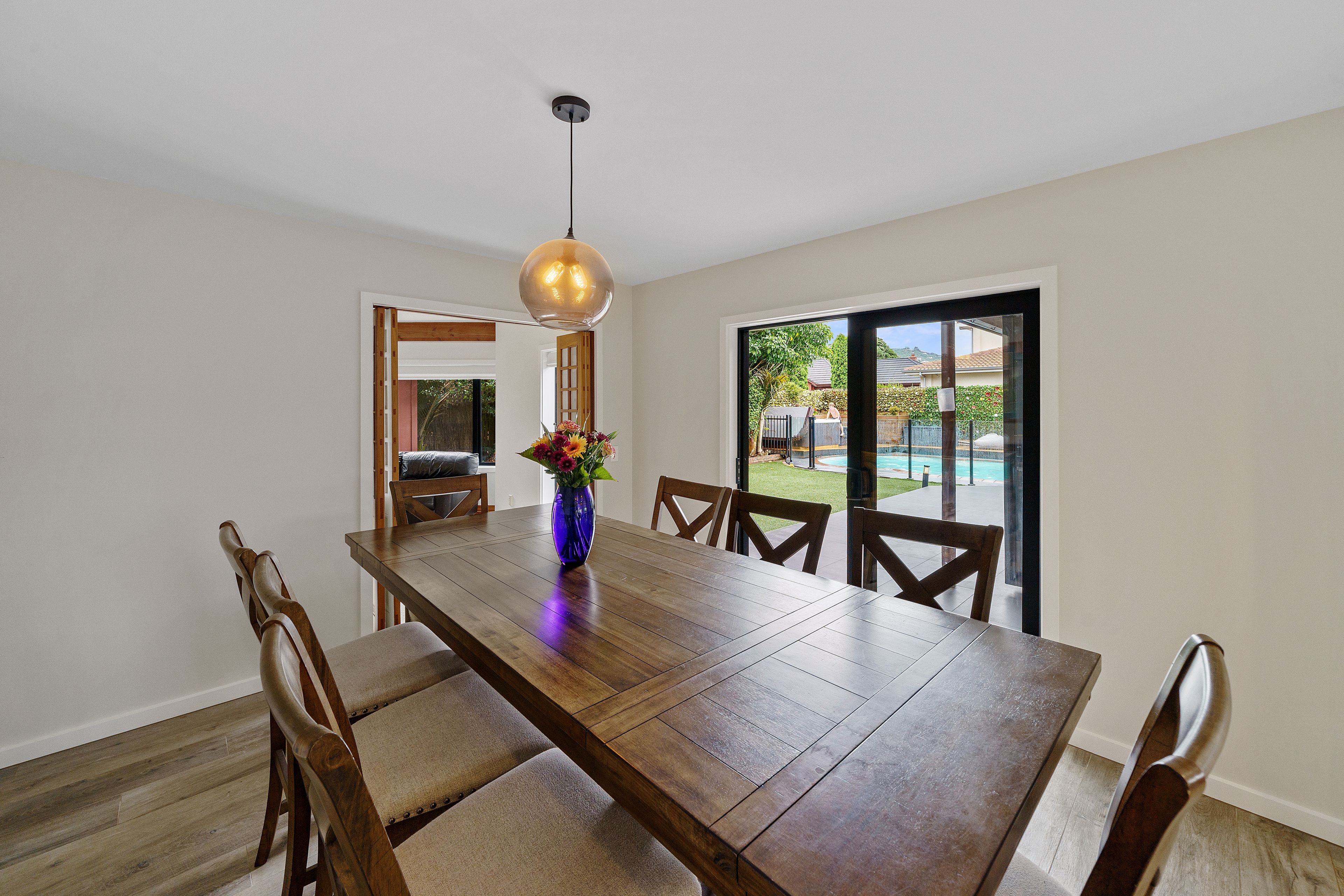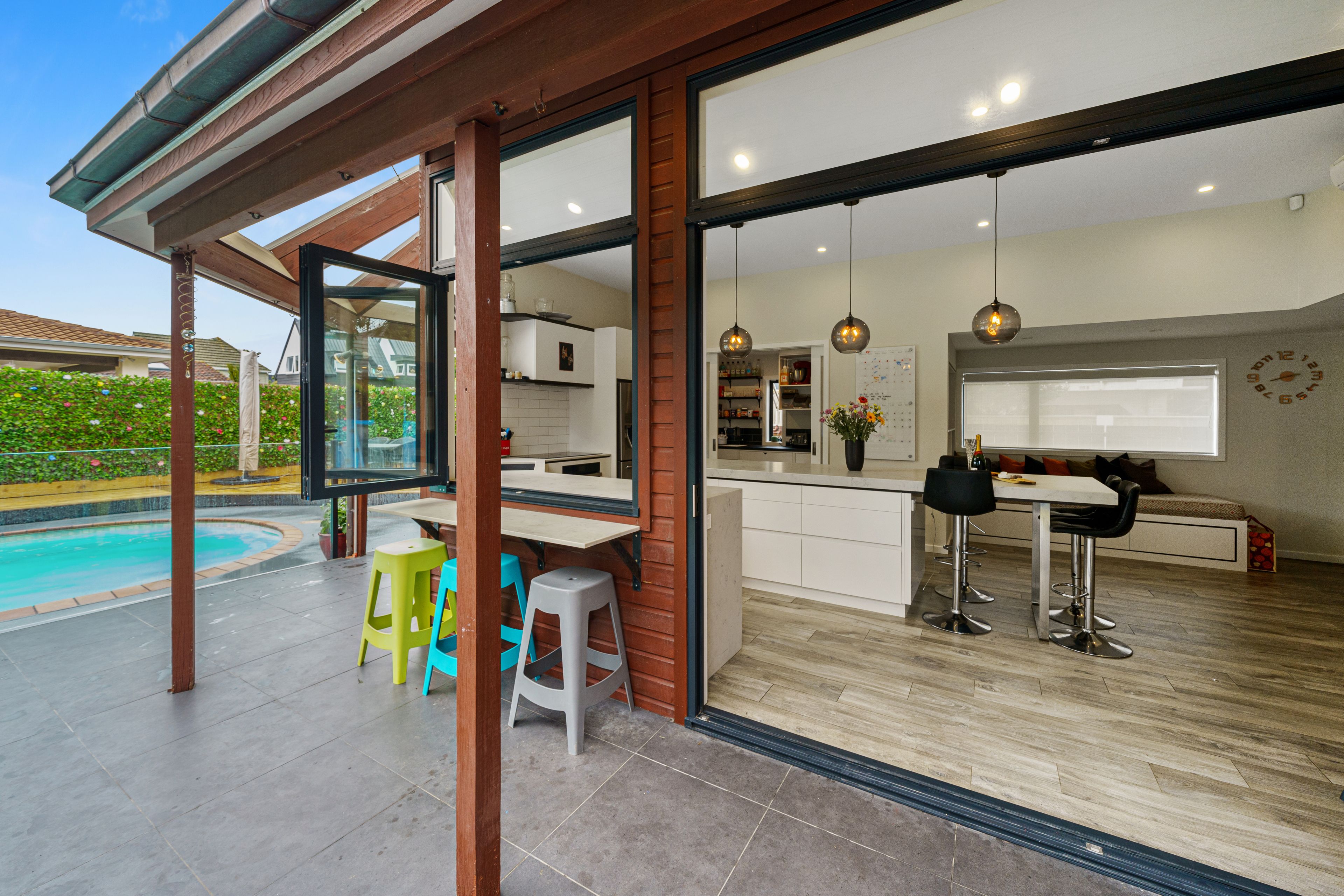 An entertainer's dream with incredible indoor/outdoor flow from the architecturally designed living space and modern kitchen with scullery, out to the stunning poolside backyard.