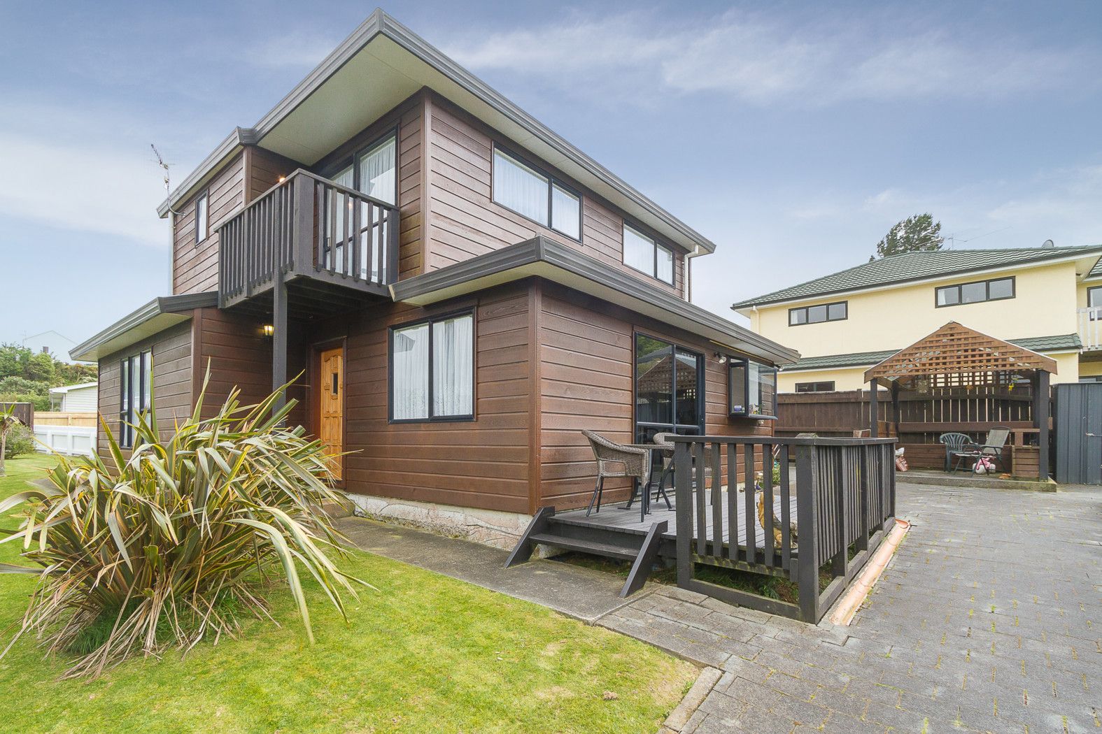 Downstairs we have a separate sunny lounge which gives you the option of a heatpump to heat or cool your home or enjoy the glow of the woodburner for those chilly winter nights. Walk through to an open plan dining room, and modern kitchen, with dishwasher, gas hobbs and electric oven. Open the french doors to a sheltered sunny deck and take in the view of the hills of Kelson, and the Hutt Valley. You will also find a large bedroom with a semi en-suite, which is ideal if you want to live on the bottom, floor and leave the upstairs for guests or younger legs. Upstairs we have two bedrooms, the main bedroom has walk in wardrobe, en-suite with doors leading to a balcony.