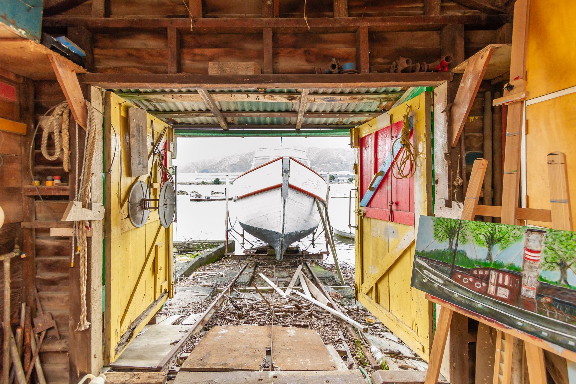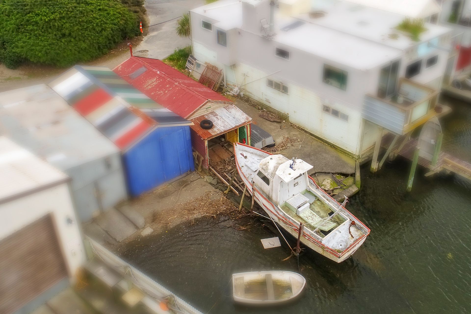 The shed also comes with a functional slipway with an old fishing boat (hull only).