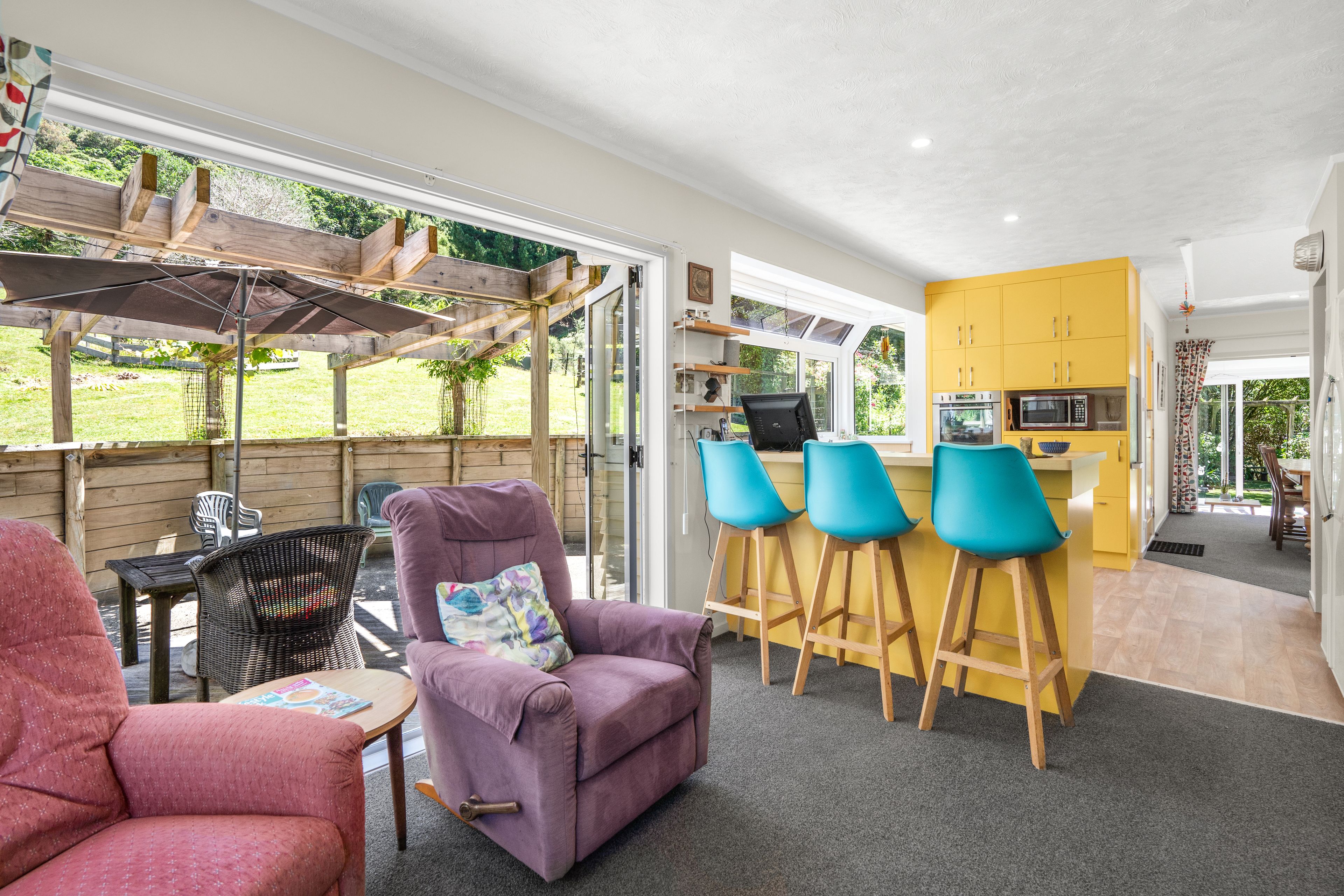 Guests can relax in the expansive privacy amongst lush surroundings and interact with an array of birdlife. Aside from native birds, this property comes with 12 Avery birds, 8 chickens and a stunning peacock showcasing its flashy plumage. Add to that, the 9 sheep that graze the pasture and a pond with goldfish to admire.