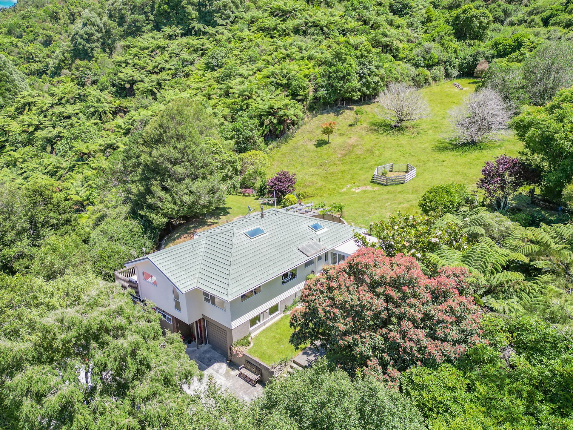 There is also an added bonus of potential revenue stream from the downstairs apartment currently listed as a successful Airbnb. With its integral access to the main house, it is also perfect for an extended family. This private retreat offers a rare opportunity alongside its recreational appeal.