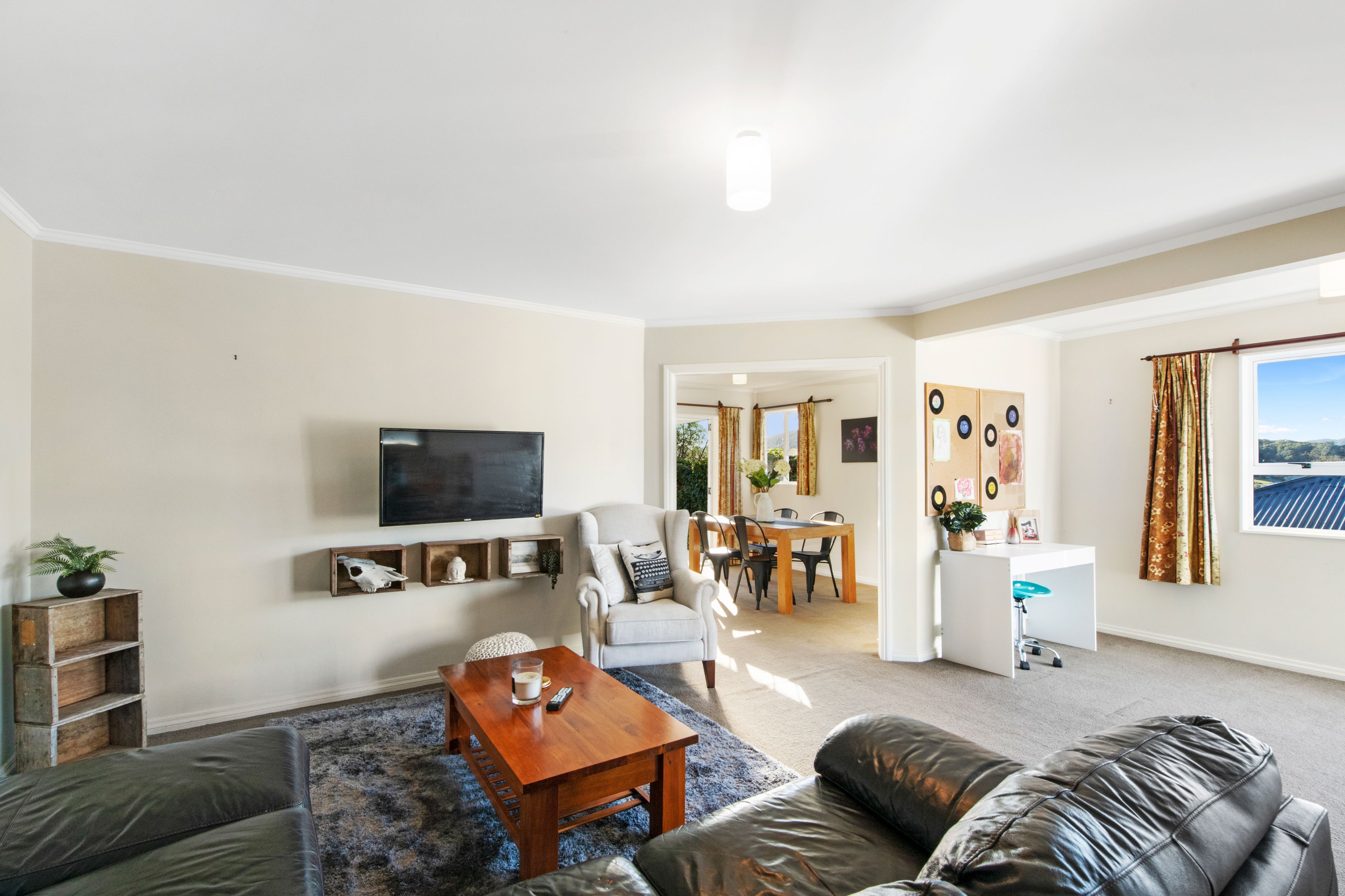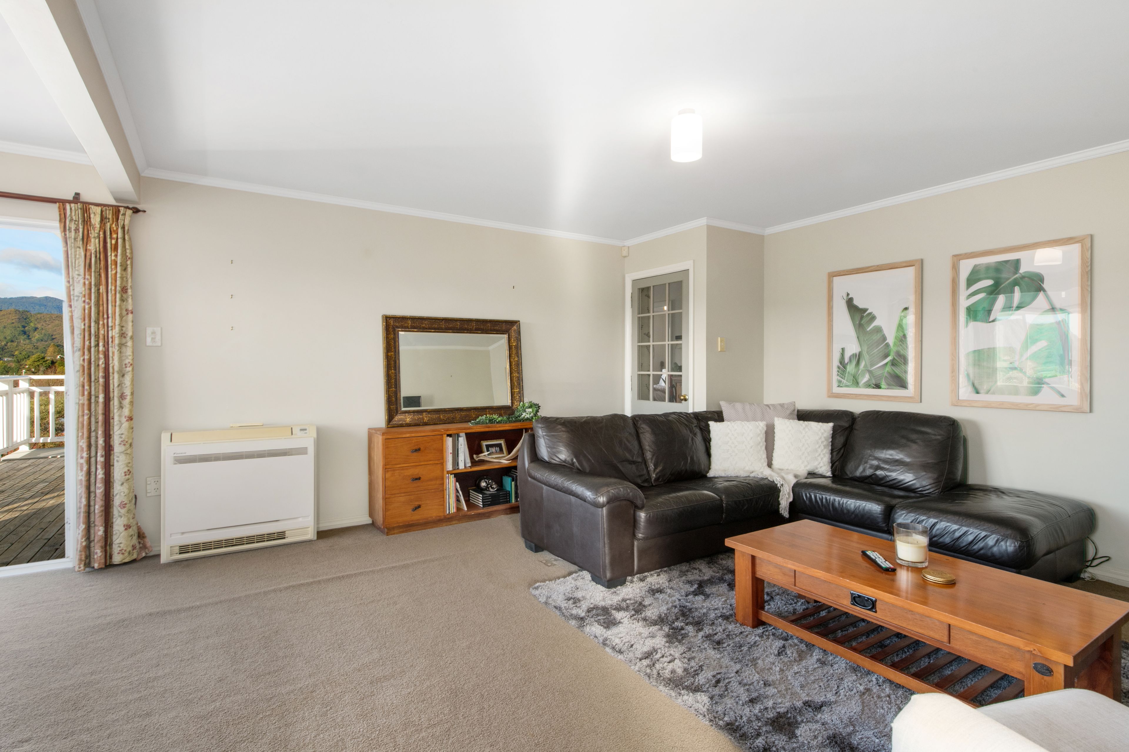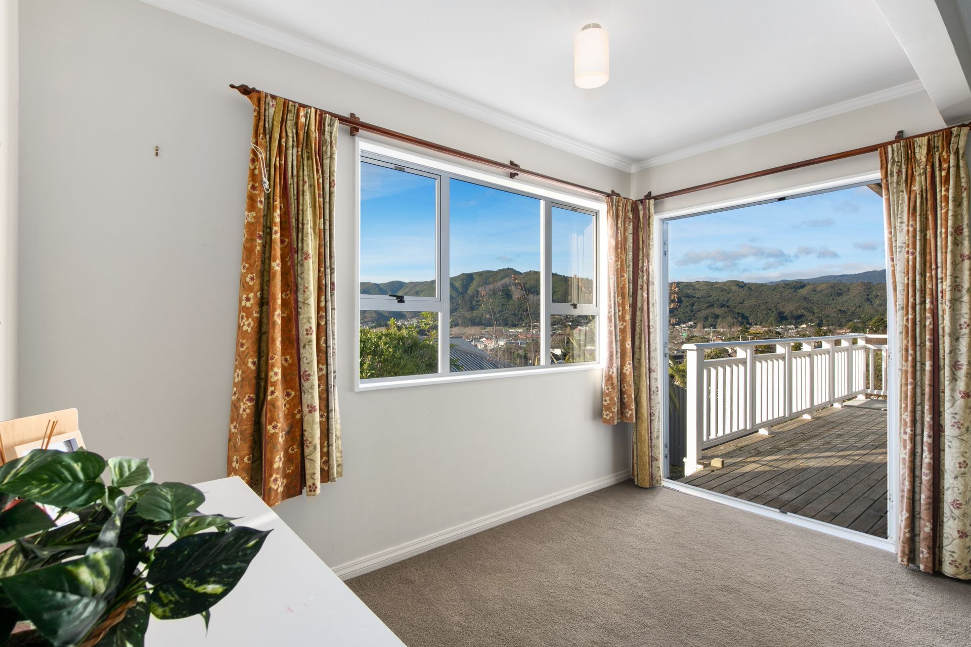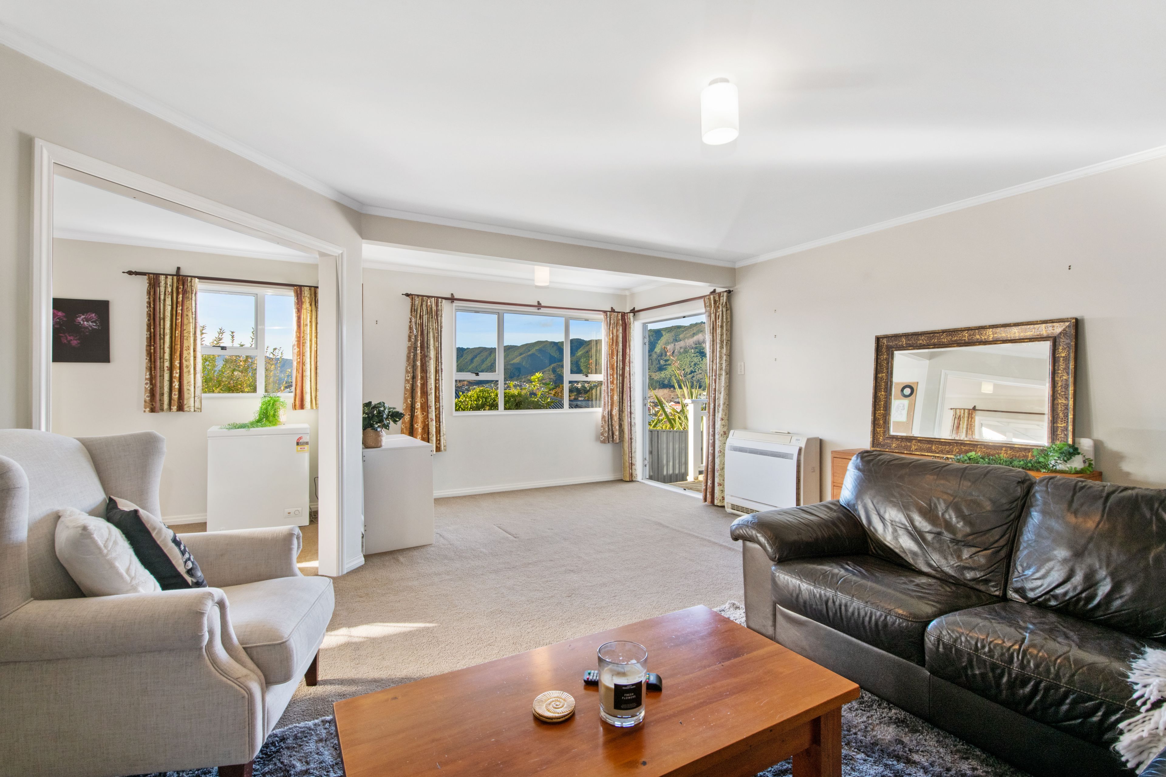 With big windows that allow all the natural light to stream into the home and frame the wide city and bush views from the home's elevated position. The open plan living room is combined with a spacious, well-appointed kitchen and dining room, ideal for large family get-togethers, with the French doors leading out to a lovely fully extended covered deck and a lovely flat lawn which is a lovely private area for you to enjoy.