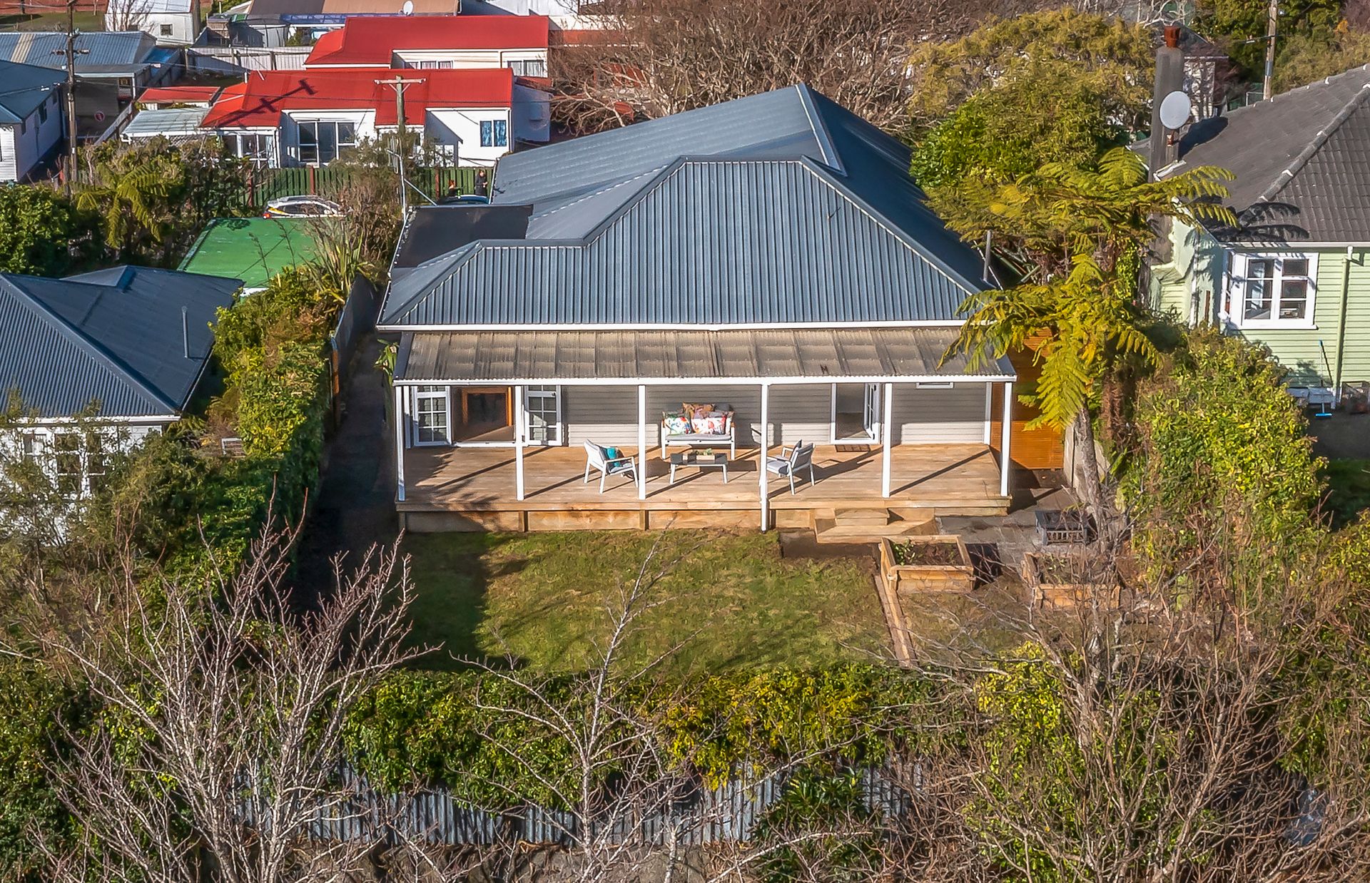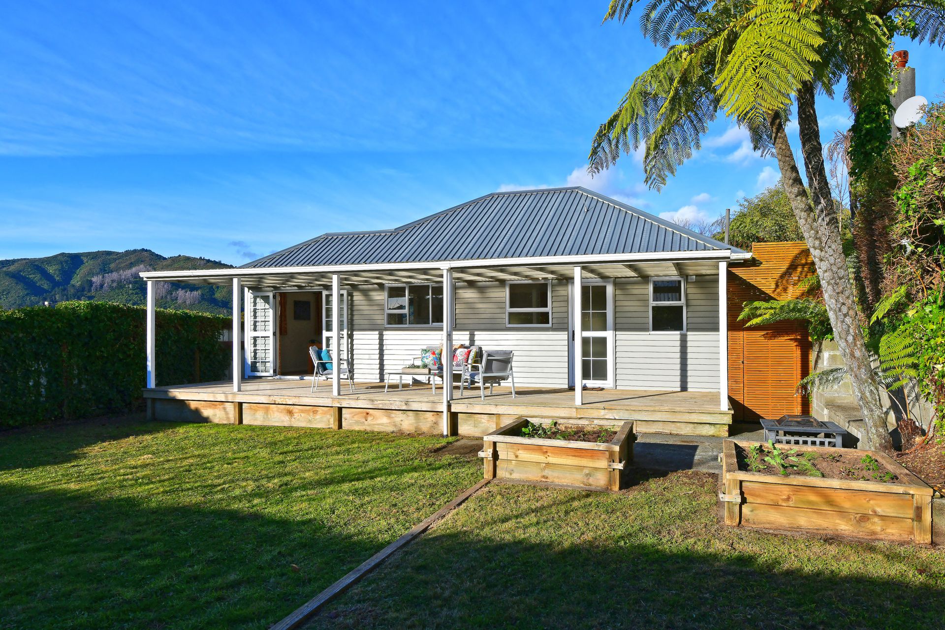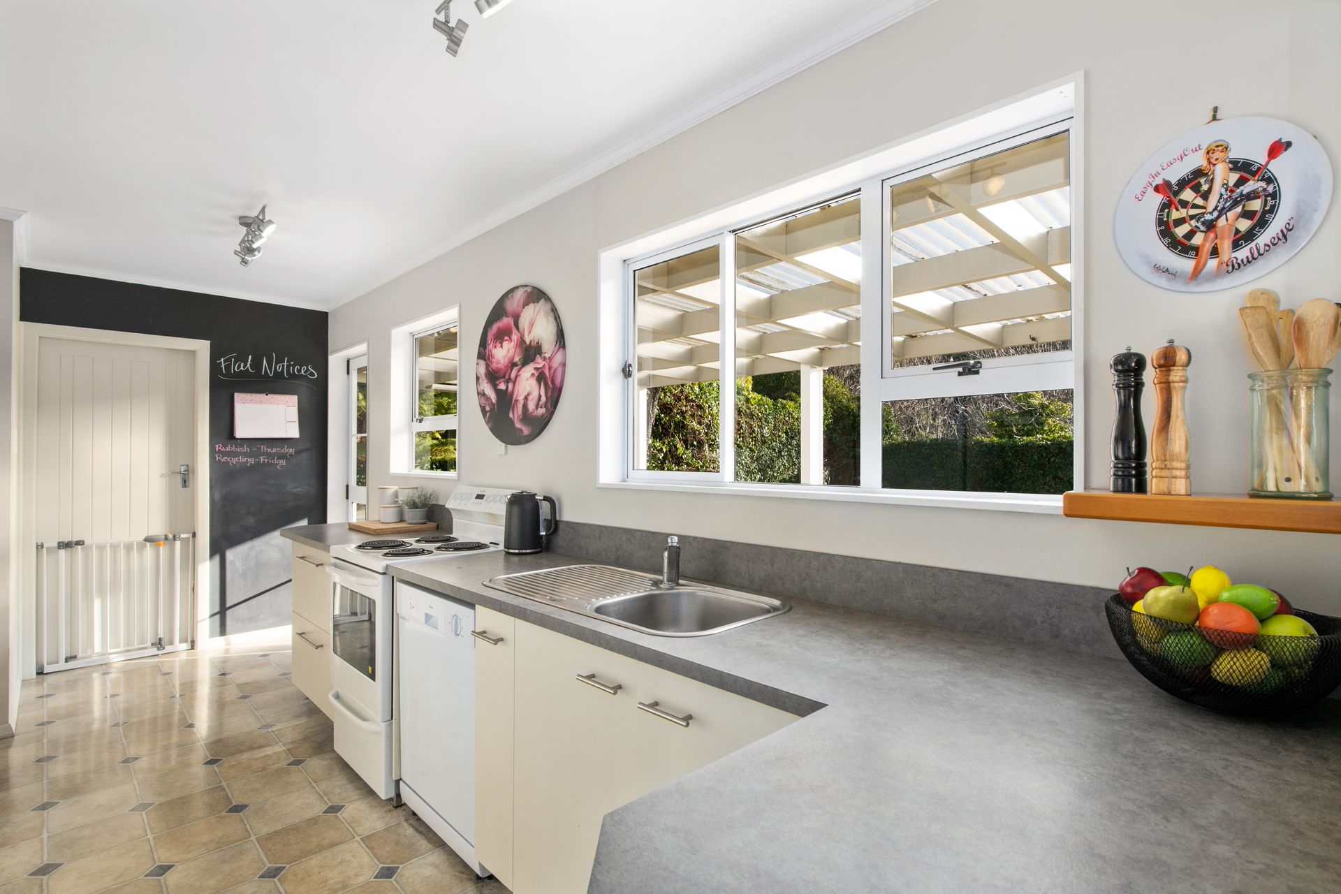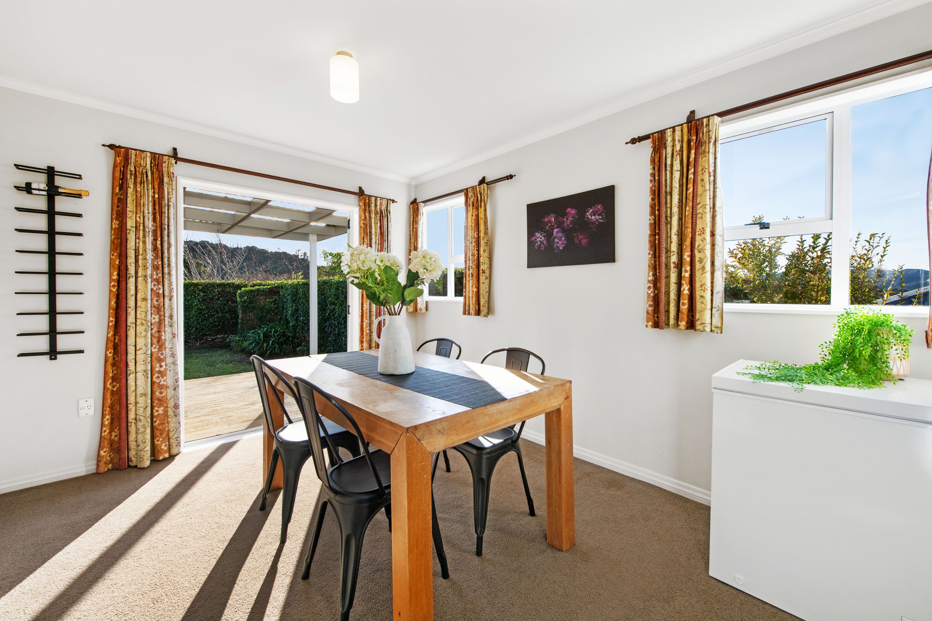 With big windows that allow all the natural light to stream into the home and frame the wide city and bush views from the home's elevated position. The open plan living room is combined with a spacious, well-appointed kitchen and dining room, ideal for large family get-togethers, with the French doors leading out to a lovely fully extended covered deck and a lovely flat lawn which is a lovely private area for you to enjoy.