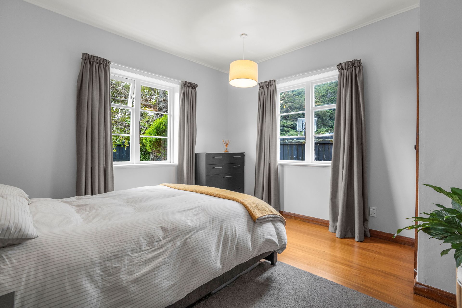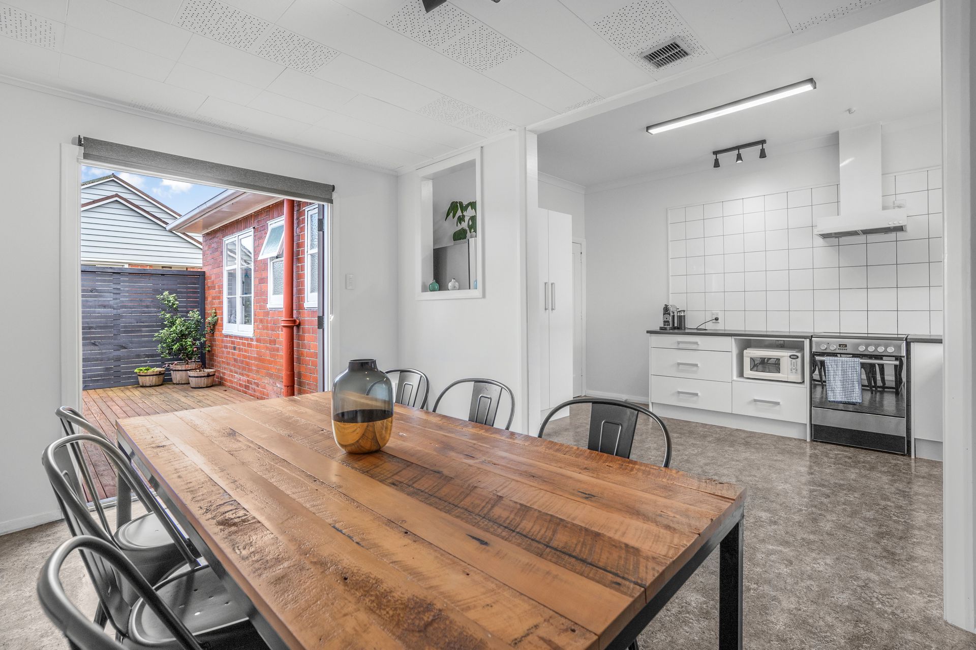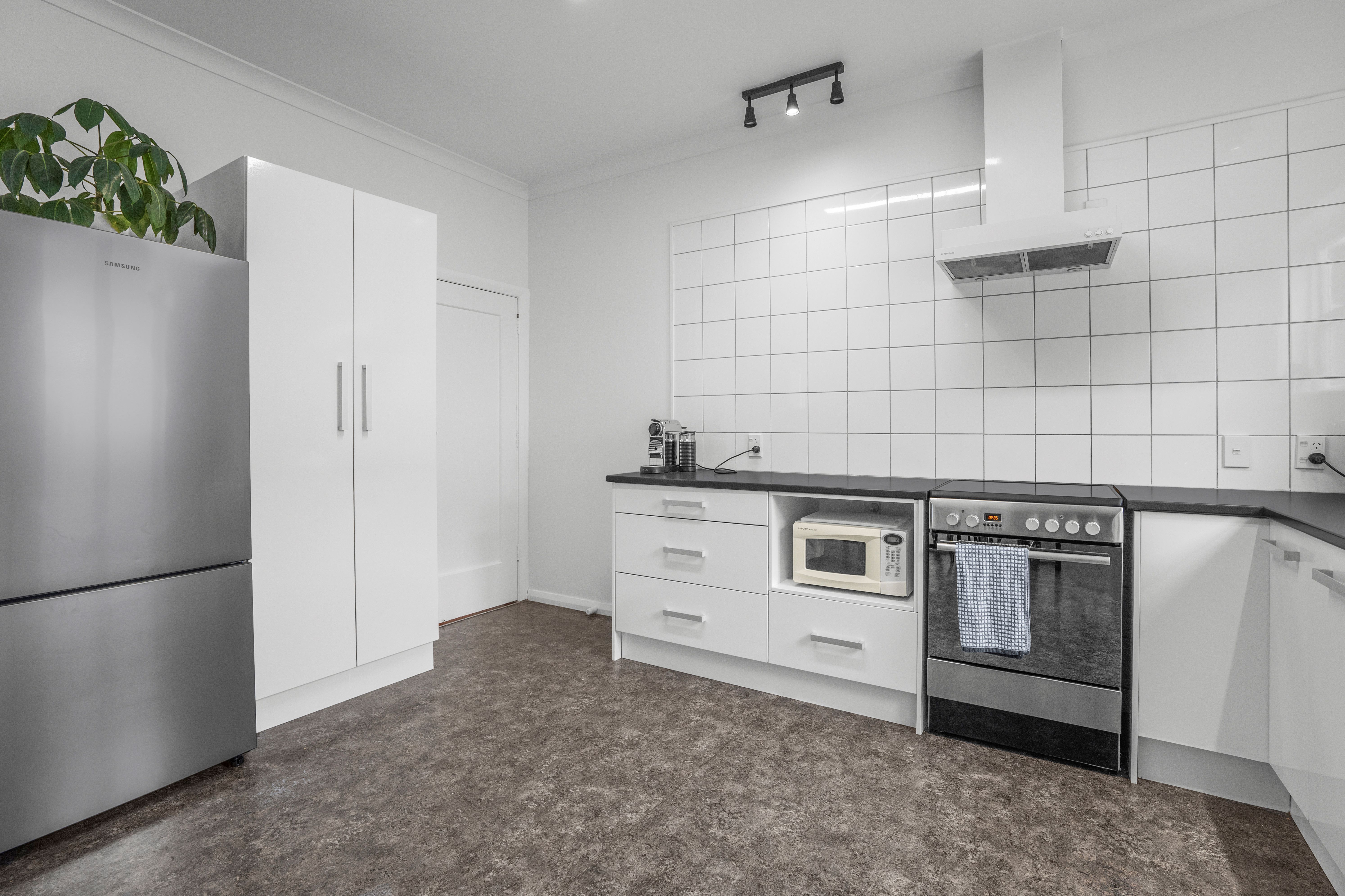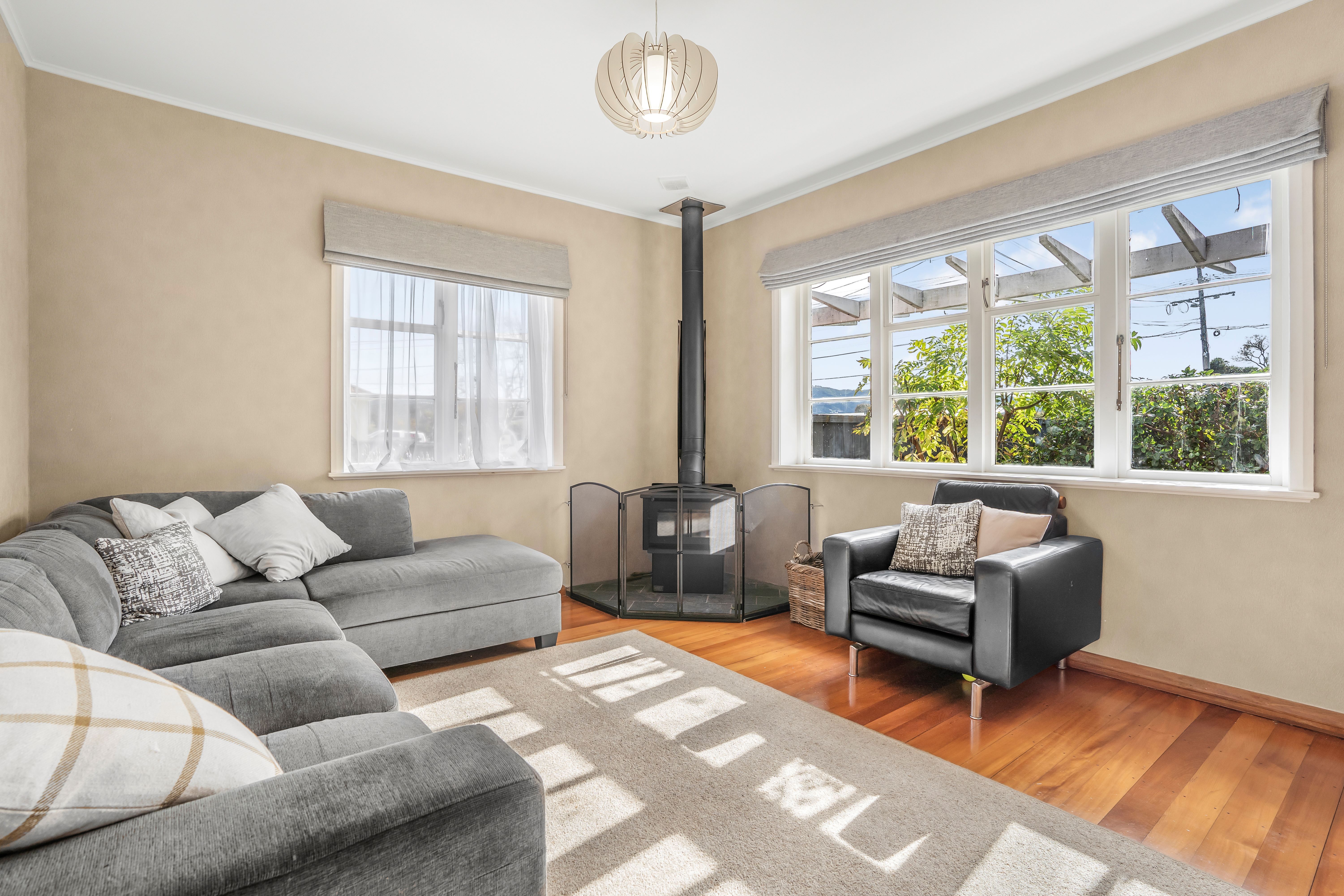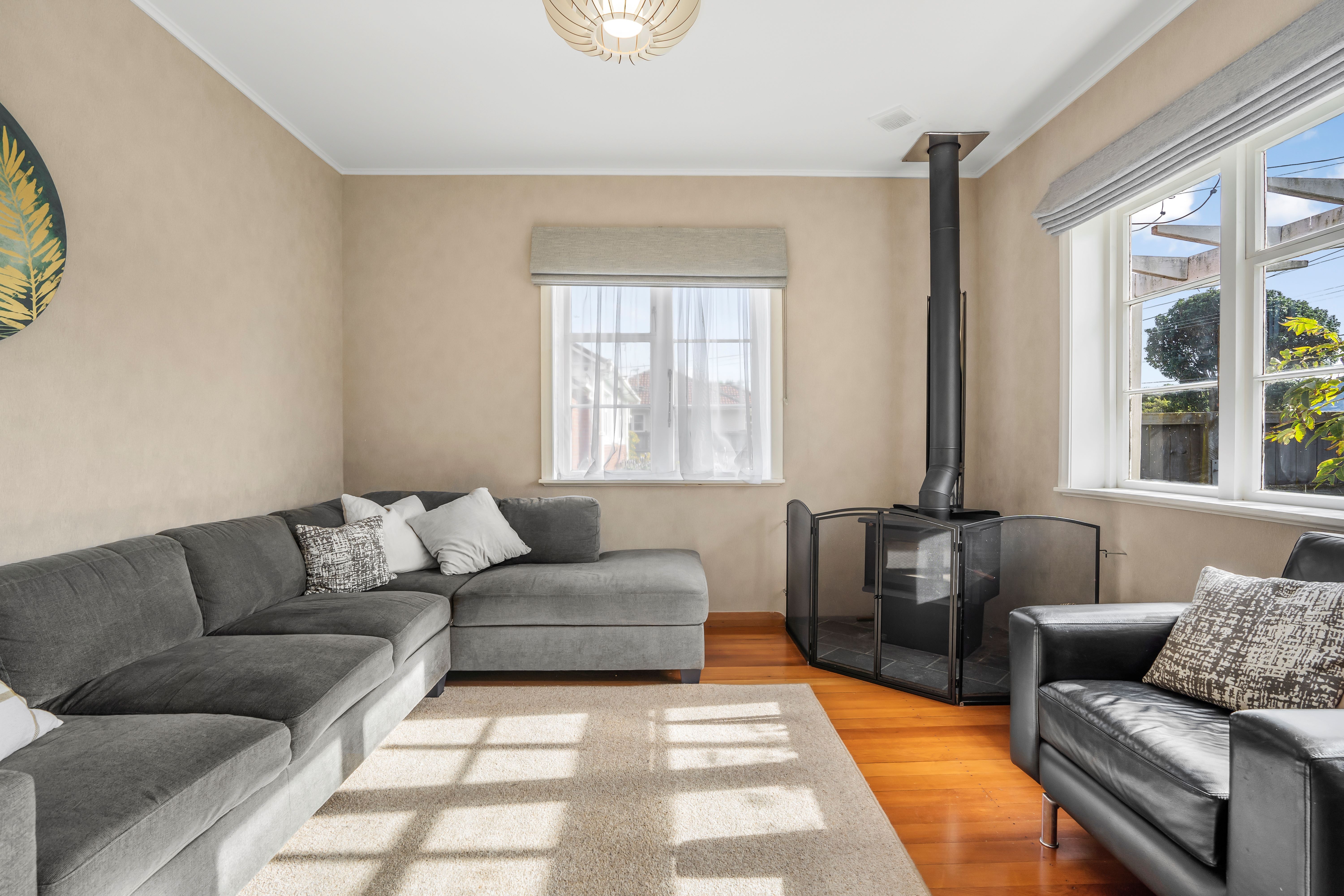 This 130sqm home built in the 1930s, is a solid proposition for those looking for easy care living. Polished wooden floors throughout and a contemporary colour palette provide the backdrop to the separate lounge with wood burner and the three bedrooms. A recently renovated family bathroom features a shower over bath, underfloor heating, and heated towel rail. At the rear of the home is a wee bit of a surprise with spacious open plan kitchen and dining, fully fenced outdoor living, and an internally accessible garage.