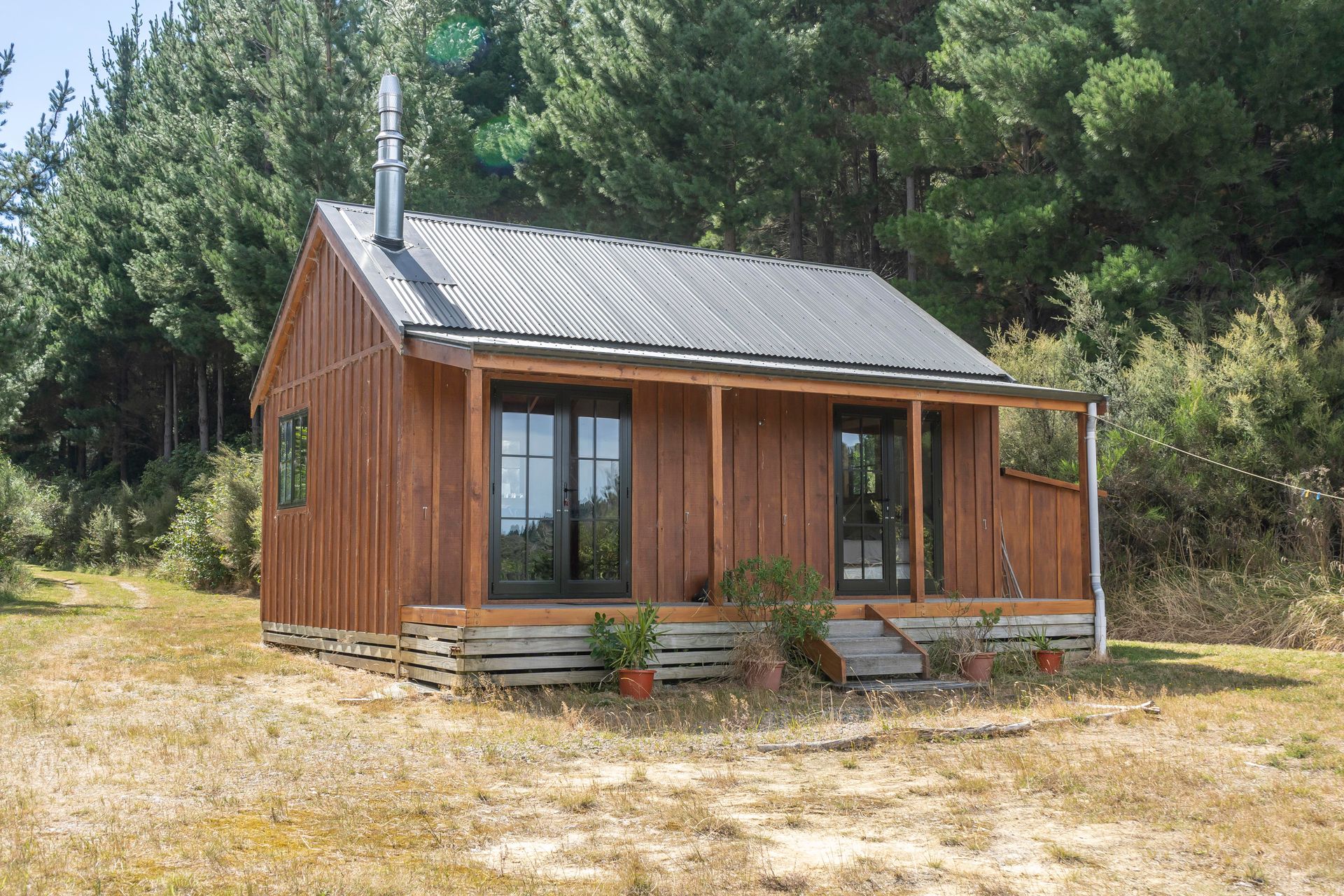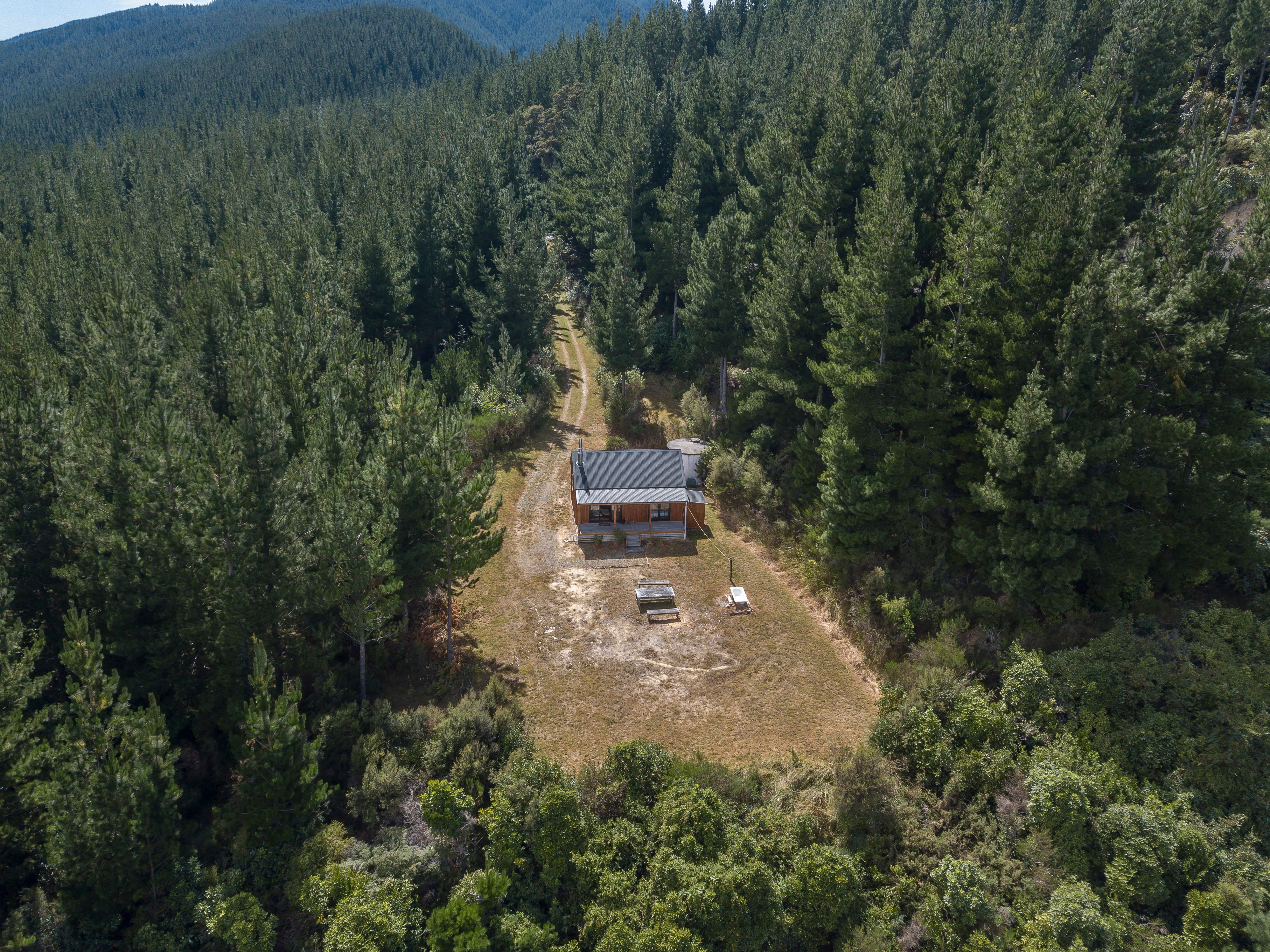 Scarce as Hens teeth to find - Privately located 35 km east of Masterton - 10 yr old self contained 'Off the Grid' Cottage on 4ha of 17yr old tended Pinus Radiata and Macrocarpa trees --- Sunny/ sheltered and secluded building platform surrounded by the exotic plantings and regenerating Native bush with established walking paths --