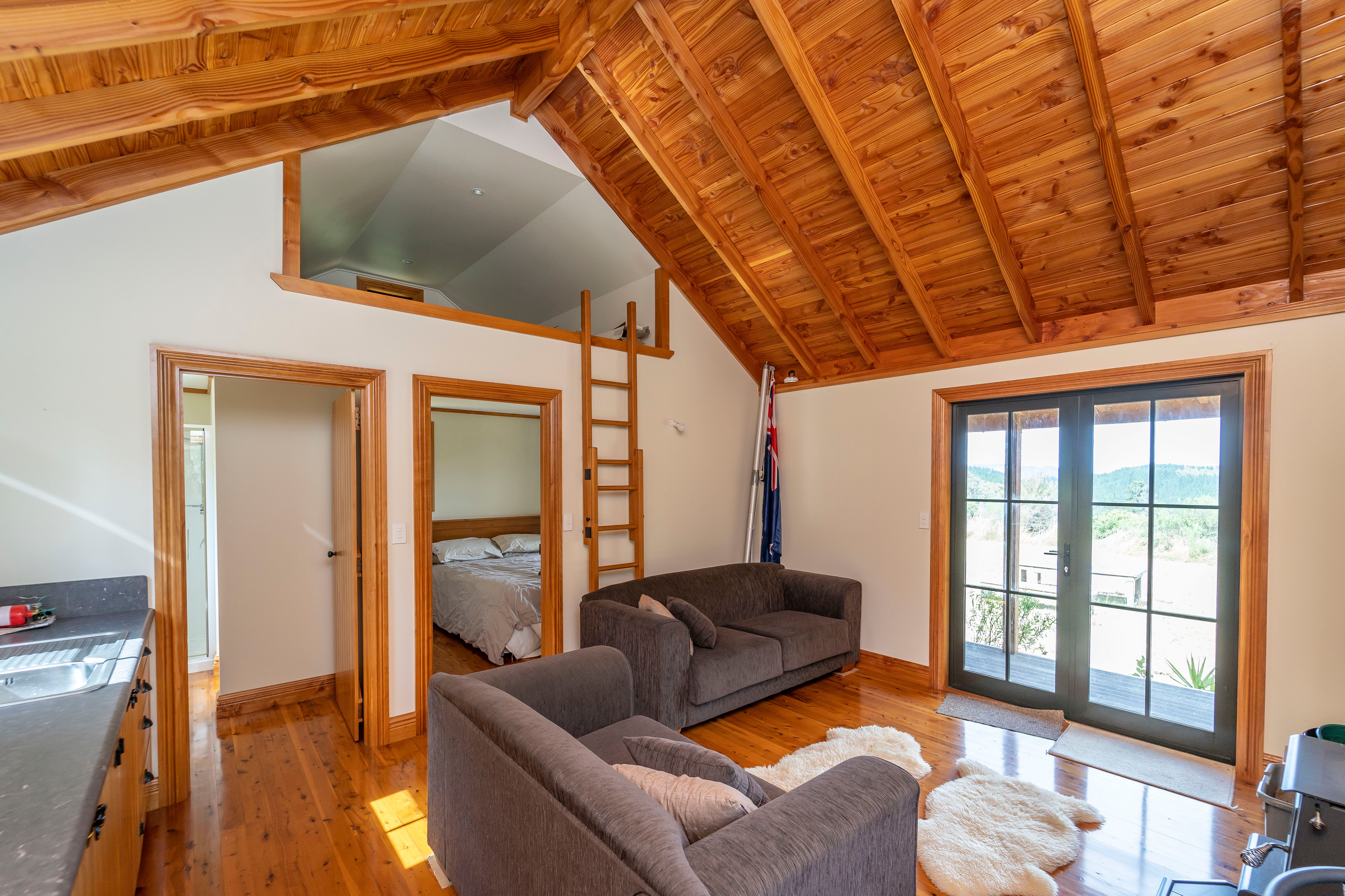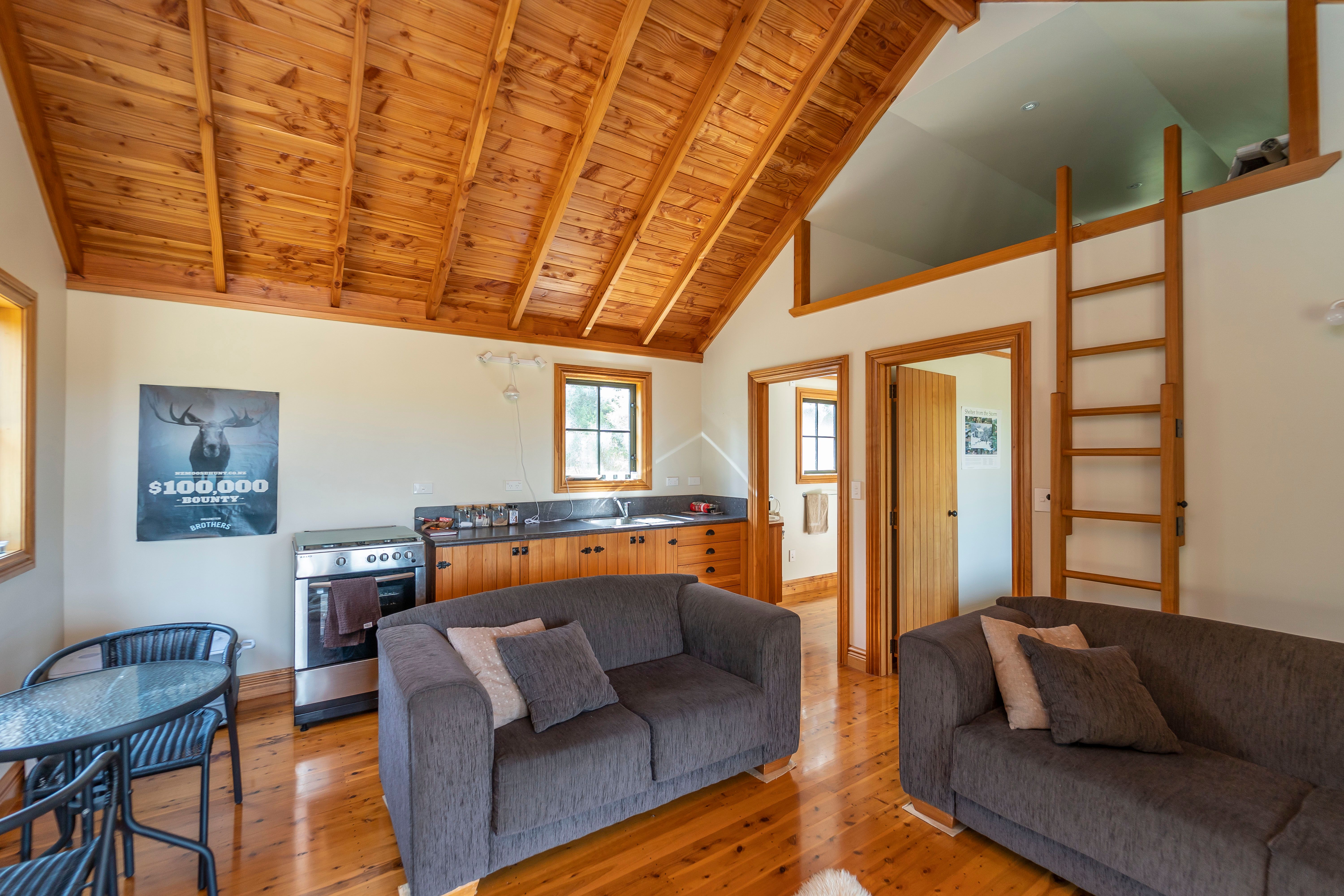 The Hut features polished wooden flooring separate bedroom and loft sleeping area -- Gas cooking - log fire for the cooler evenings- flush toilet shower bathroom -electricity powered by generator - Lie back in the evenings in cast iron Alfresco Gas heated Bath tub and watch the glorious sunsets -- - or ease back on the veranda and watch life and nature go by -