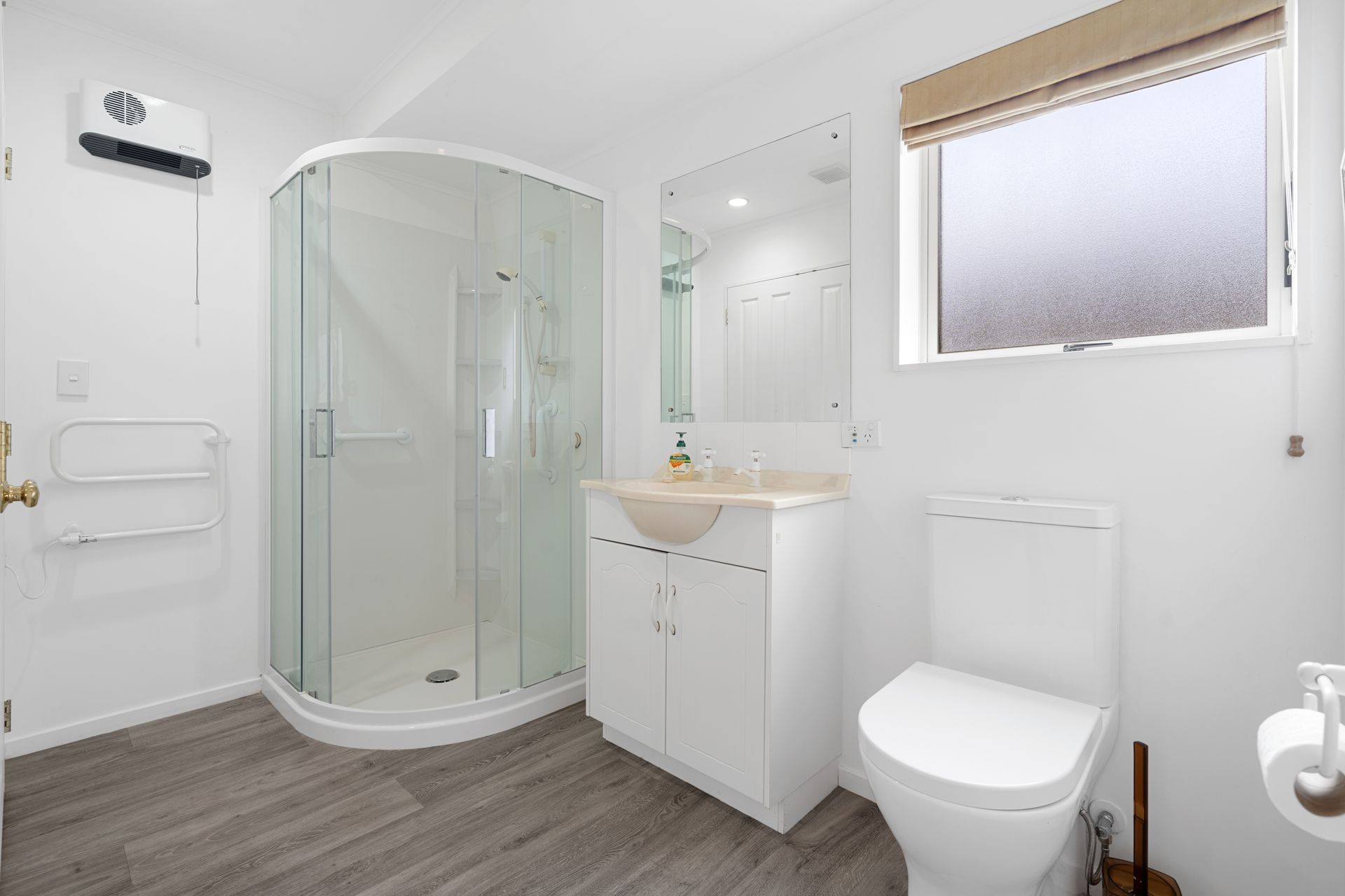 Internal access garage to tuck the car or mobility scooter away in and you are all set, no getting wet with the groceries. Heated by a heat pump its all very simple for you to enjoy.