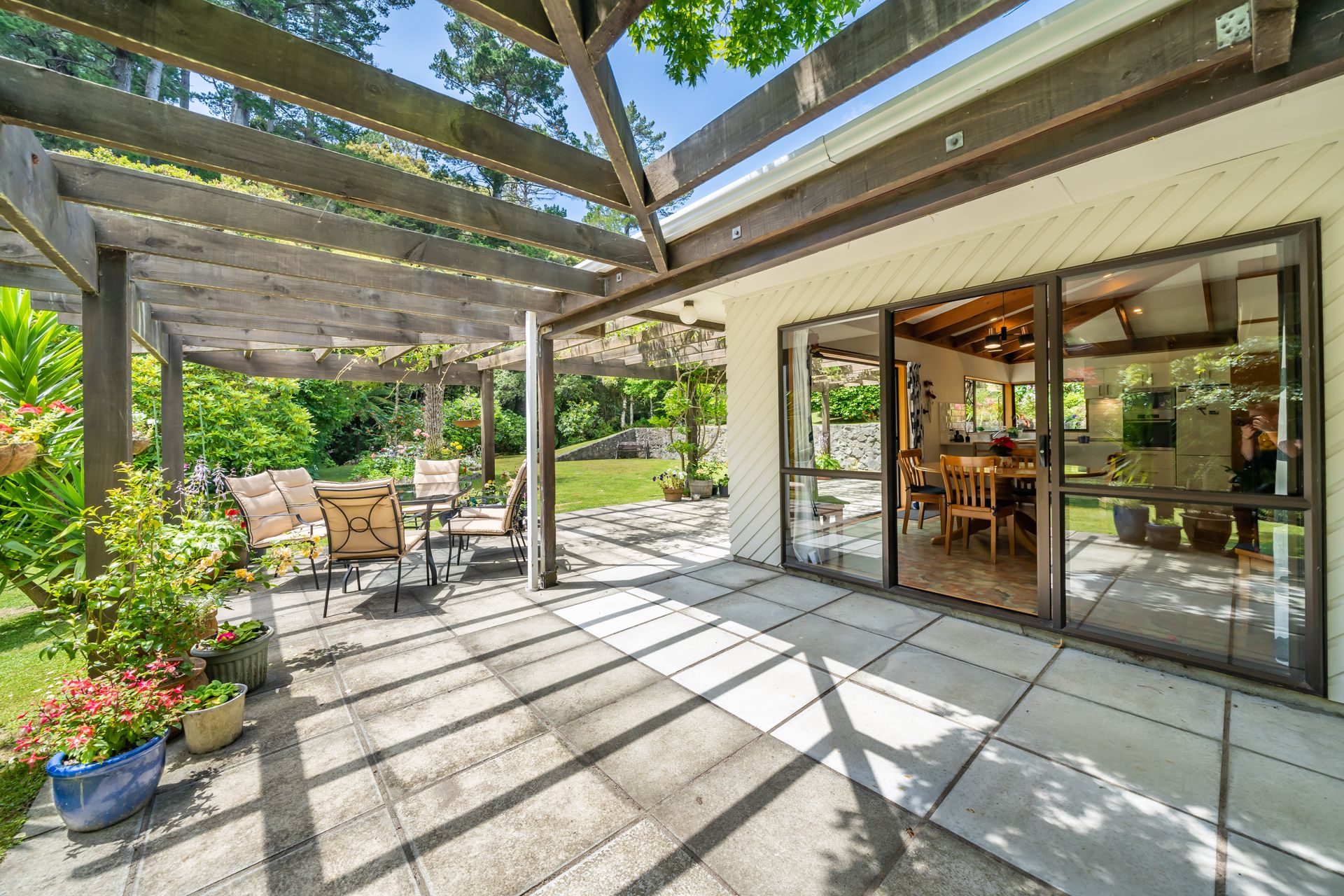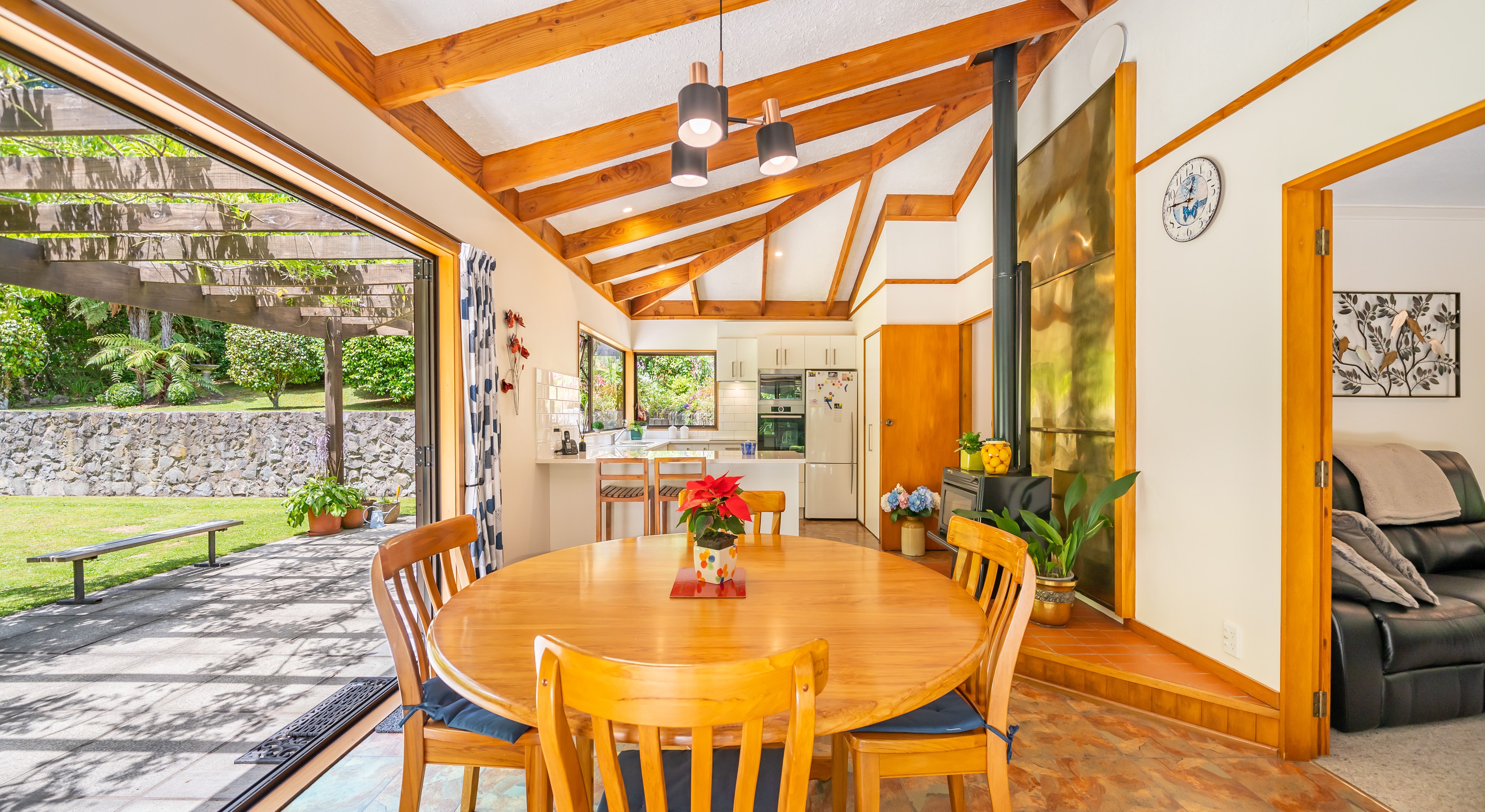 The gardens of this home are well established including the wisteria that drapes above the alfresco dining area. Gardeners will love pottering around this property, with a vege patch to utilise as well. There is a double garage, woodshed and chicken house.