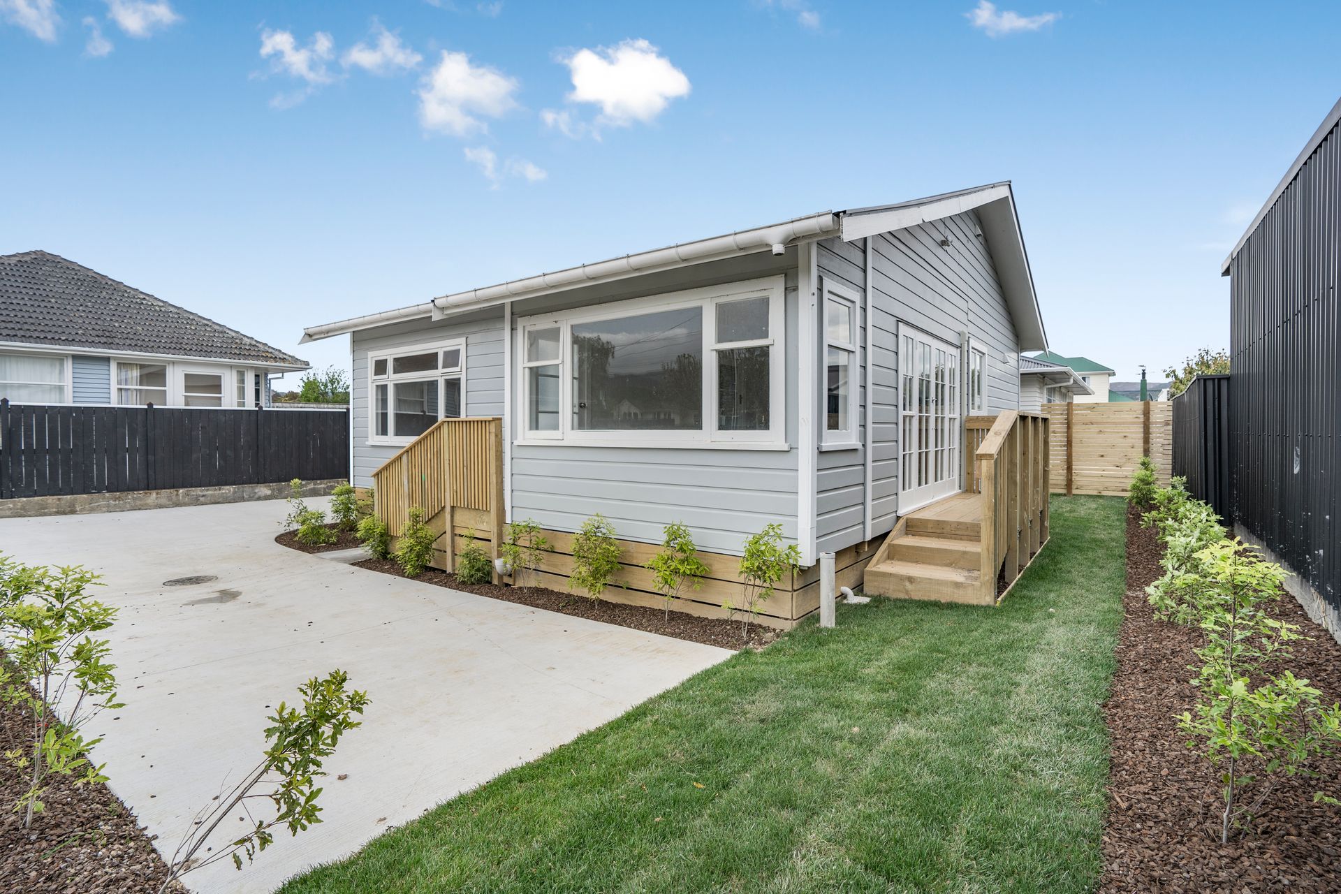 Outside, the section is easy-care, with fresh lawns and growing bushes soon to be a natural privacy screen between your neighbors. As well as an off-street parking space for your convenience.