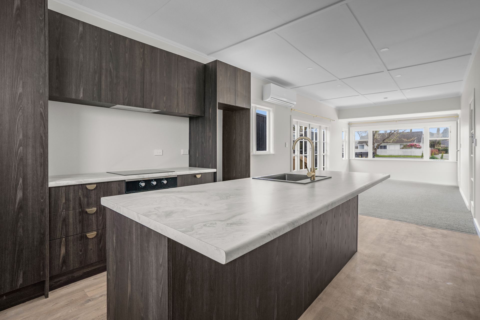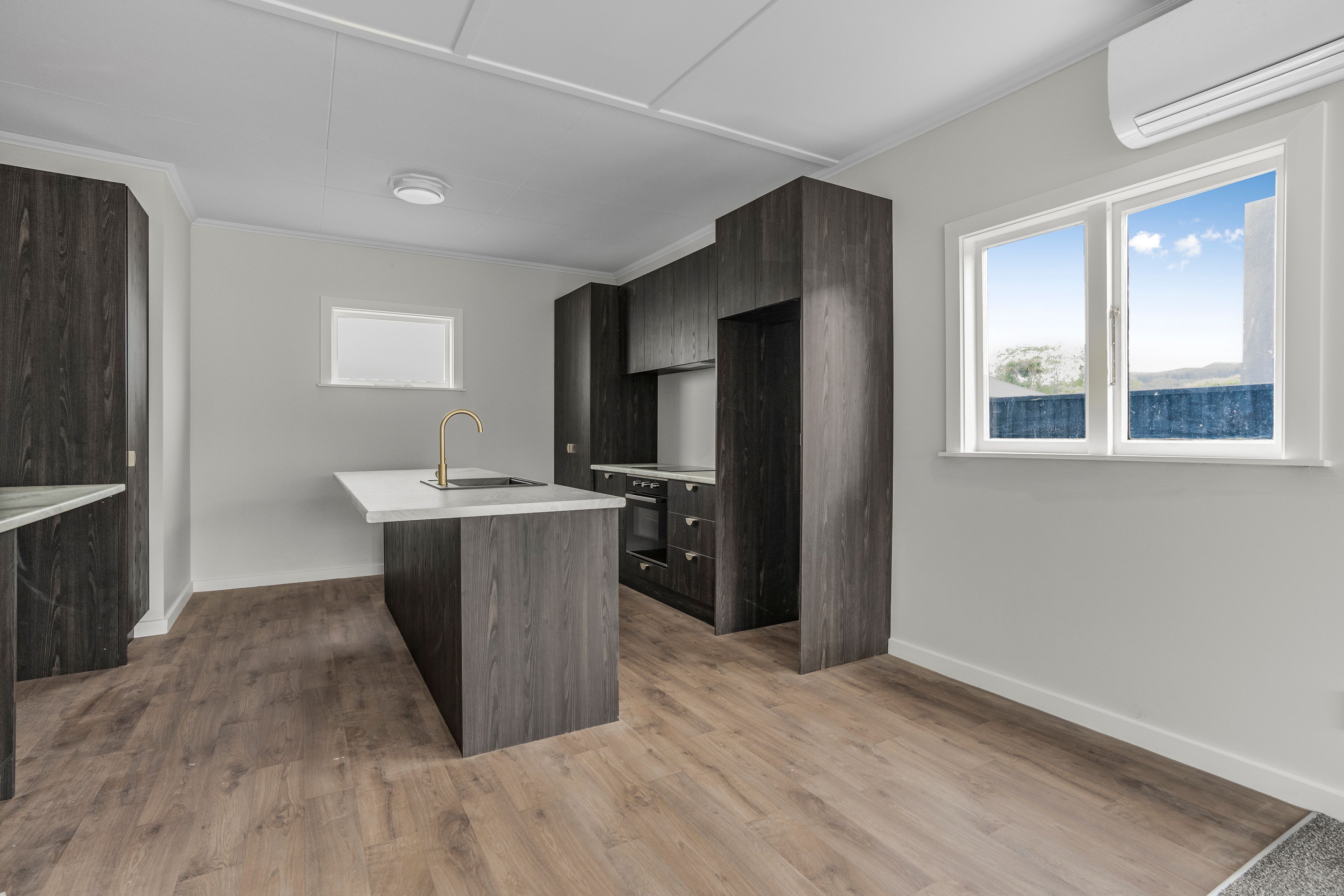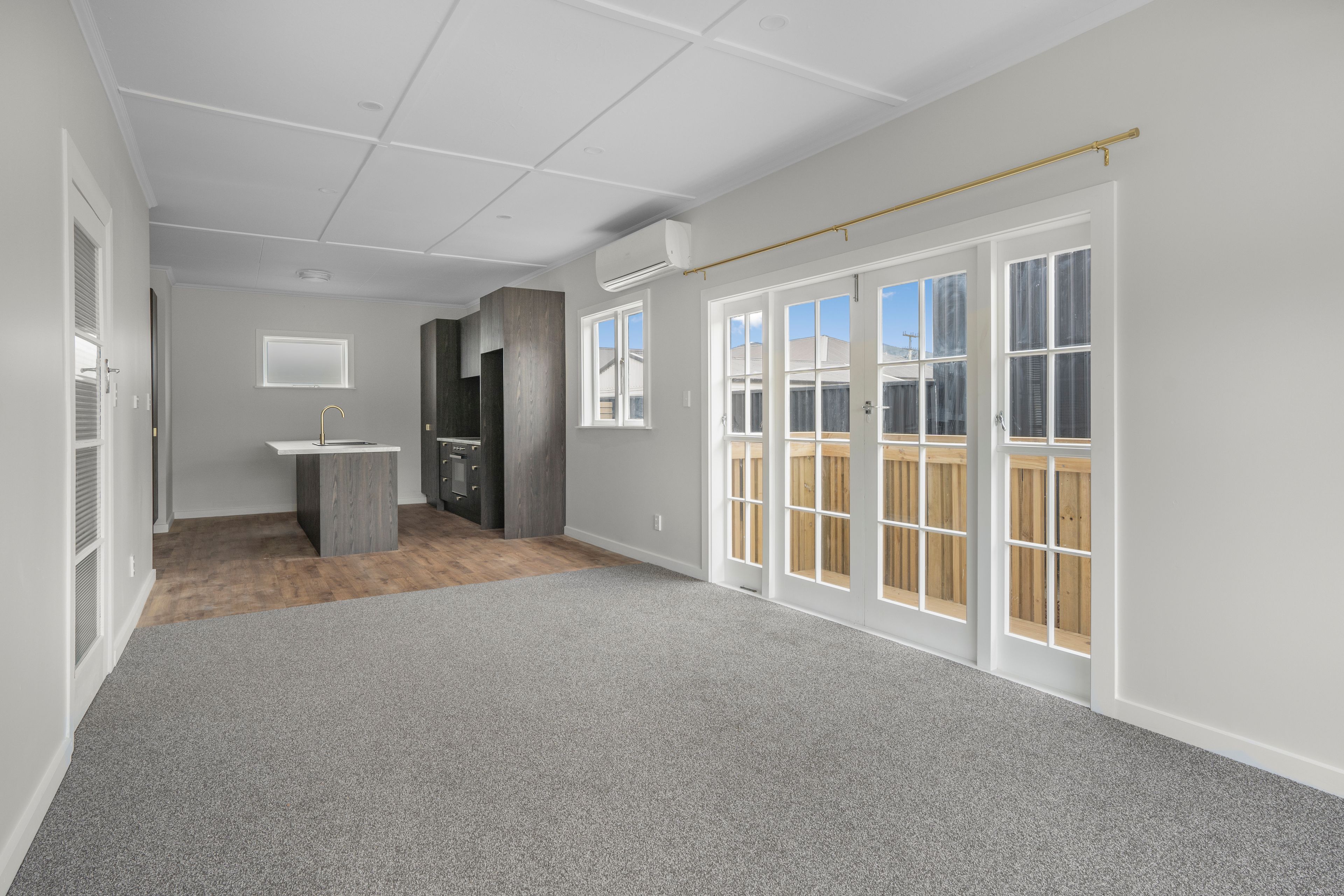 The living room, dining room, and kitchen are all open-plan designs, serviced by a heat pump to keep your whole living warm and cozy.