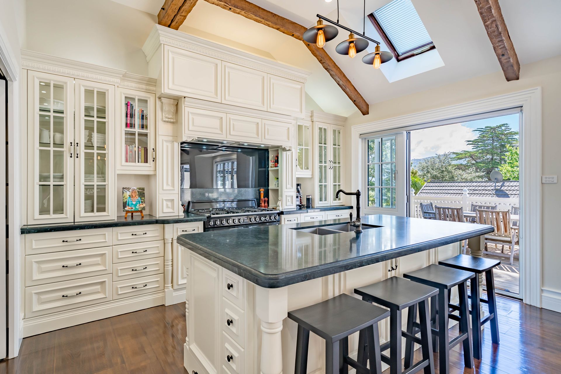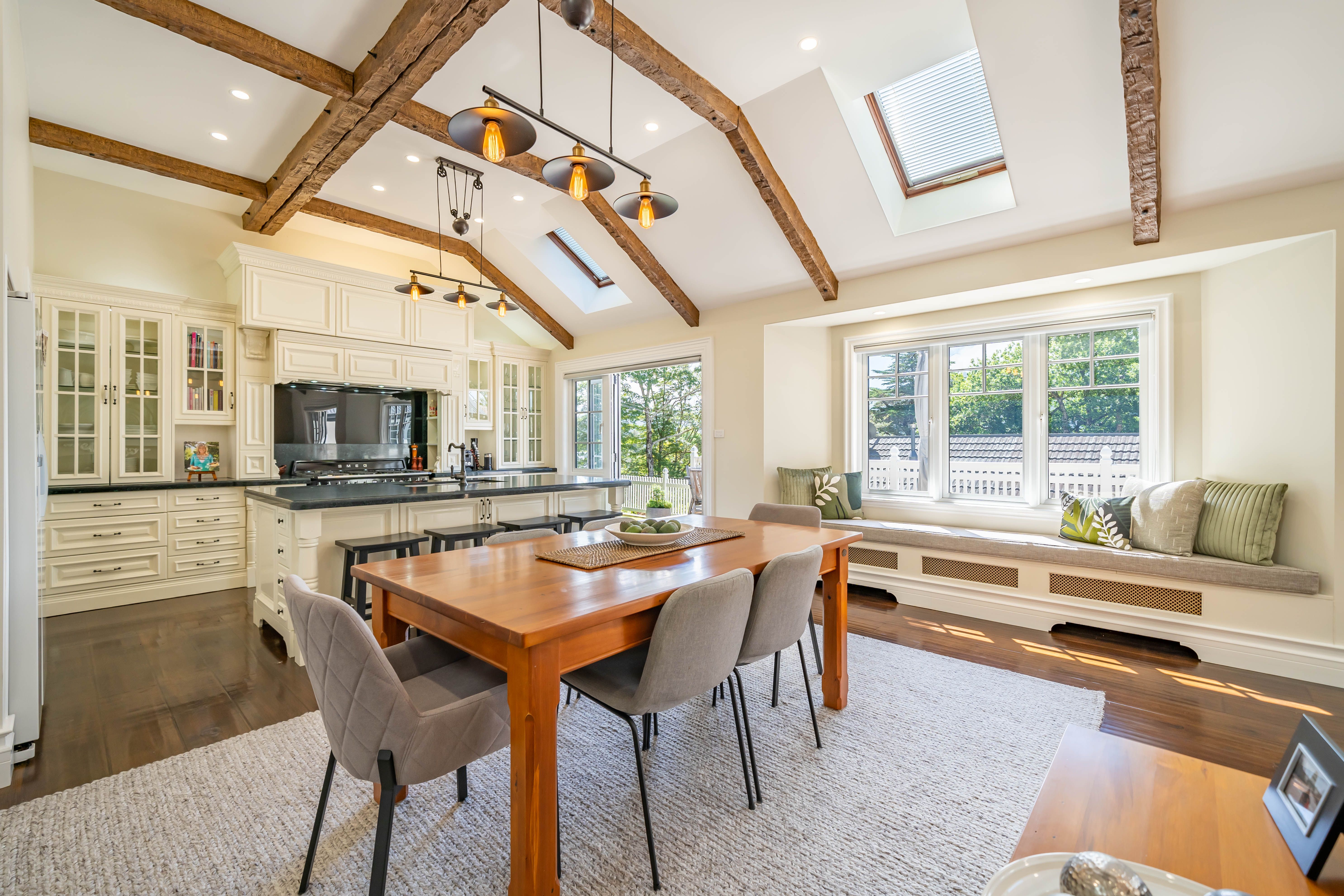The kitchen with Butlers Pantry is an entertainer's dream with quality high spec appliances and indoor dining that smoothly flows out to a sundrenched spacious deck for outdoor dining and entertaining at its best.