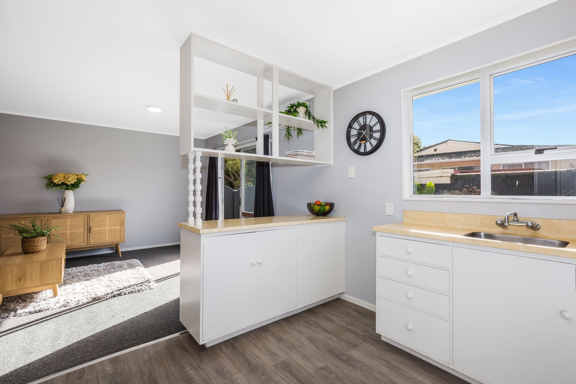Step into the heart of this home and discover a beautifully configured open-plan kitchen and living area bathed in natural light. The thoughtful layout creates an inviting atmosphere for relaxation or entertaining friends and family. The separate toilet adds an element of practicality to the well-appointed bathroom, ensuring your morning routines are effortlessly streamlined.