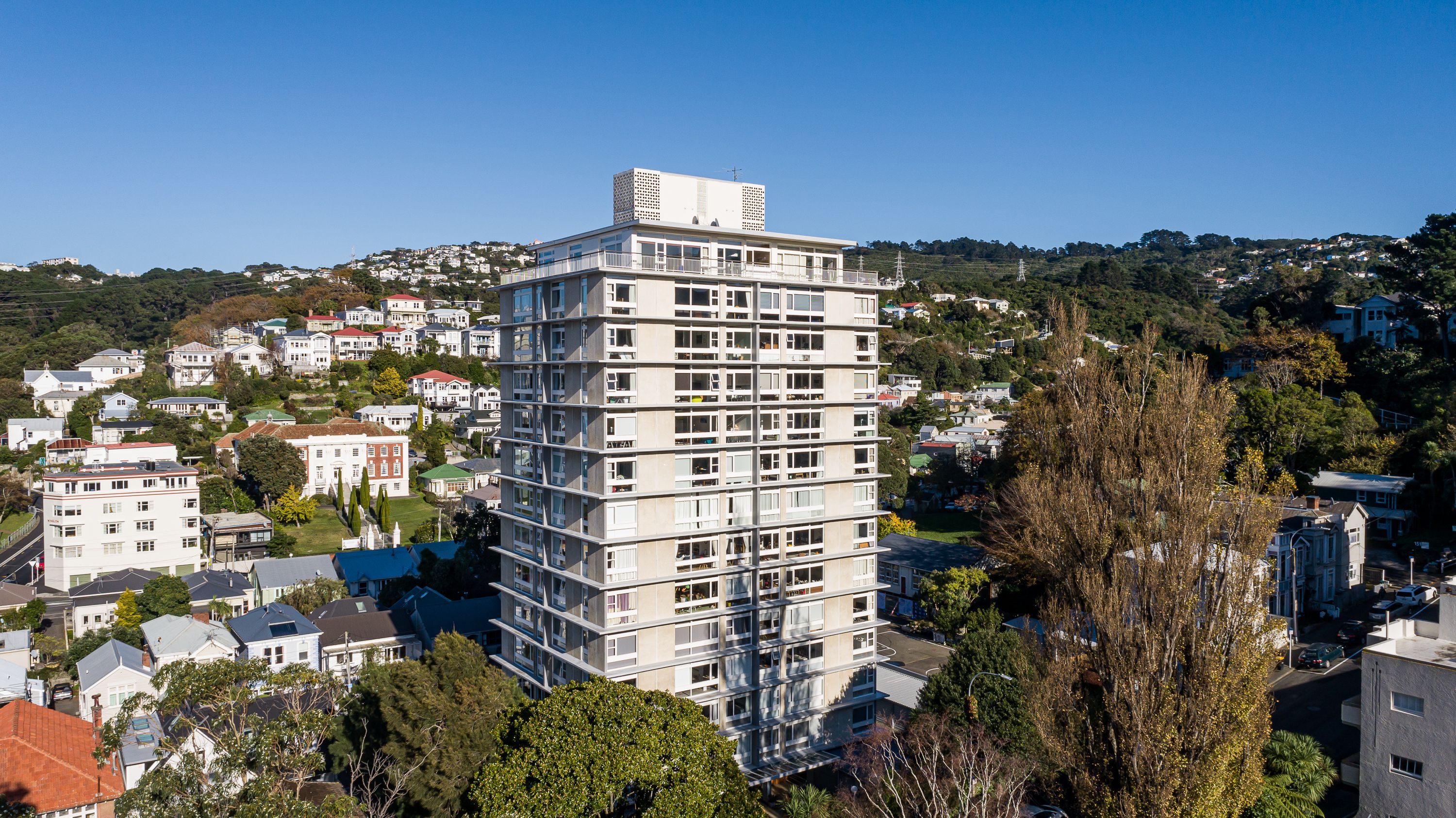 Built 1960's Aston Towers is an established Company Share property, with long term settled residents, a garage and storage. A perfect location situated in the lively hub of Aro Valley. The community centre, preschool and park at your back door. A quick stroll to the Valley's vibrant cafes and bars including the Garage Project brewery and bar.
