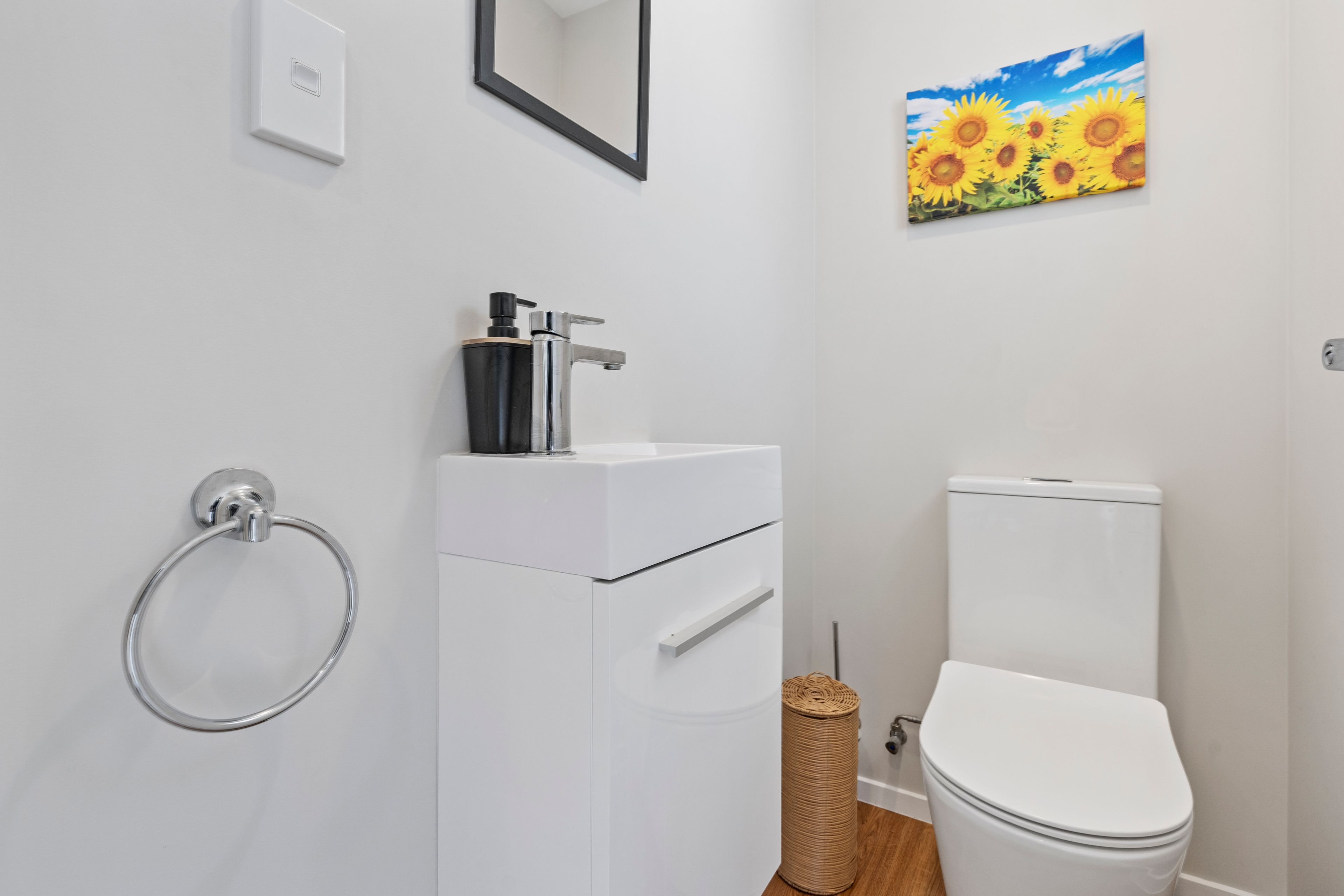 Downstairs, you'll find two generous double bedrooms, perfect for families or guests. Plus, there is a separate toilet and bathroom with shower, a separate laundry area with a washer and dryer combo, all included.