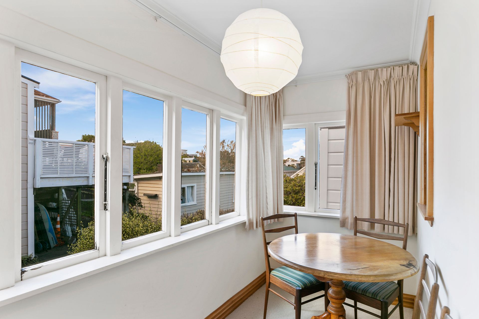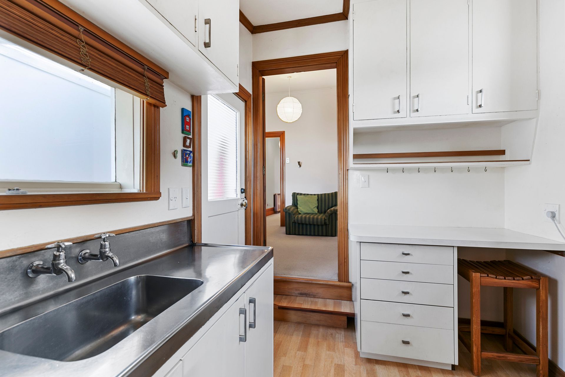 A snug lounge area with cute dining nook and friendly quaint kitchen. The bathroom includes lovely timber elements, shower over bath and separate w/c.