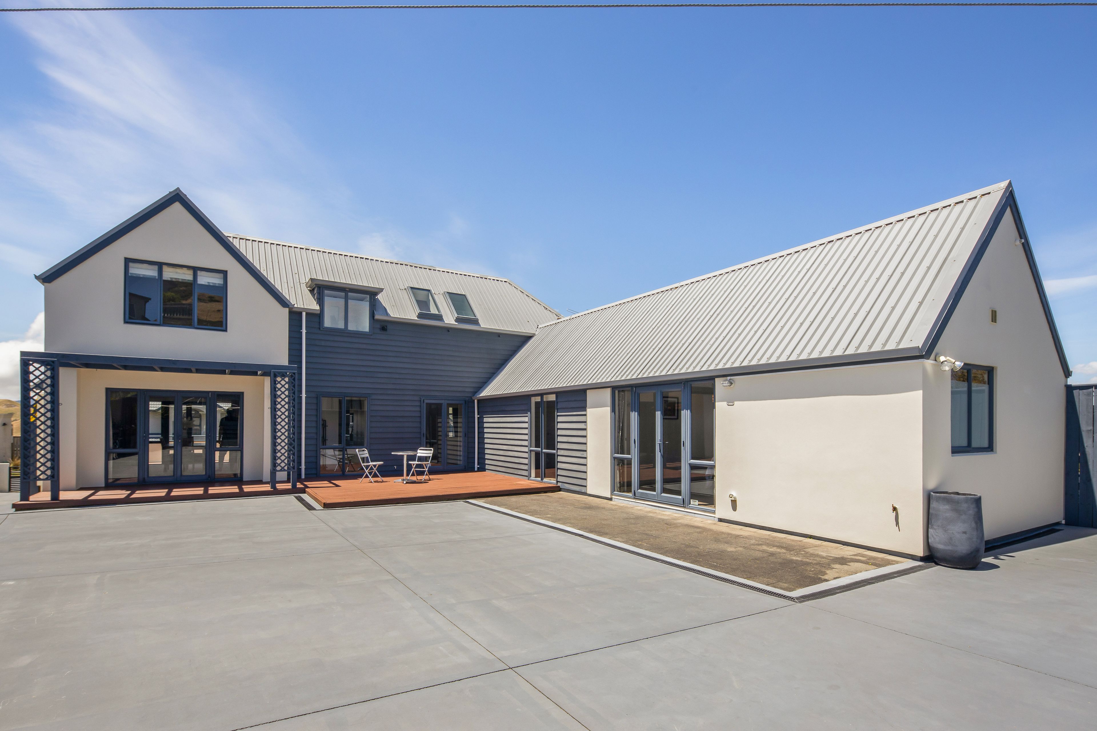 - Expansive deck areas on two sides, capturing morning sun and views