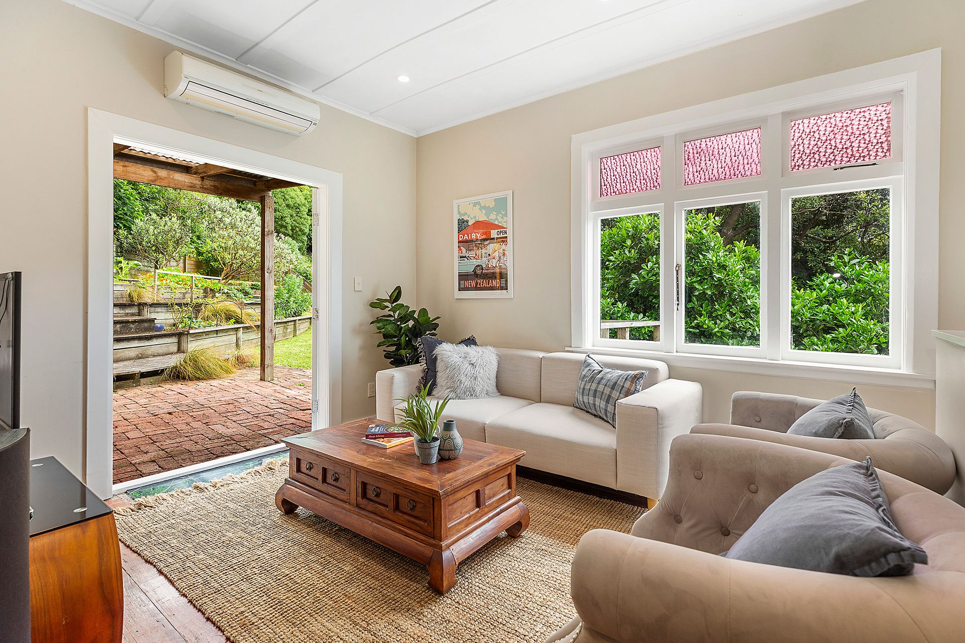 - Well-proportioned living space with heat pump. Enjoying easy flow to a covered courtyard and section this is a wonderful space to relax or entertain