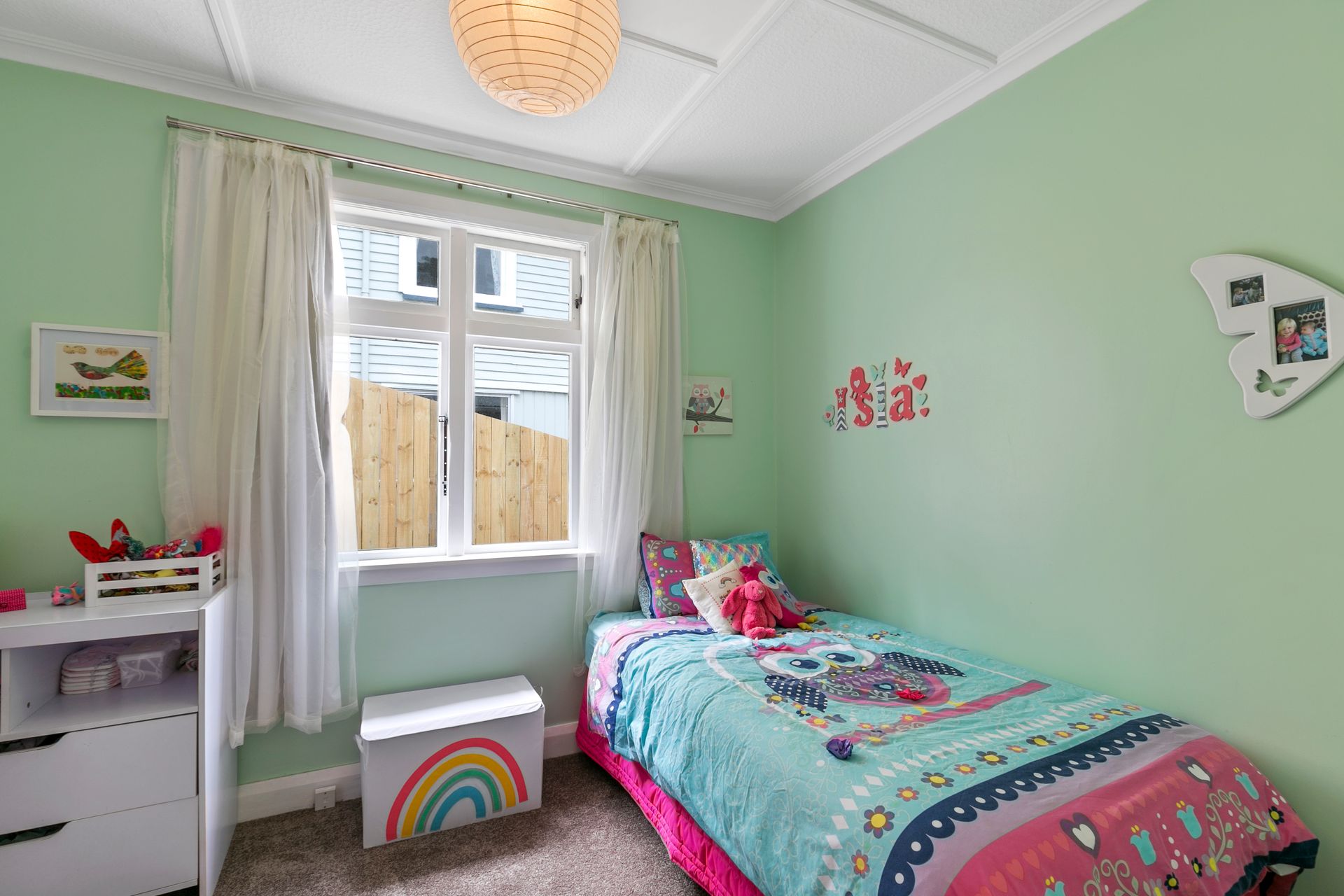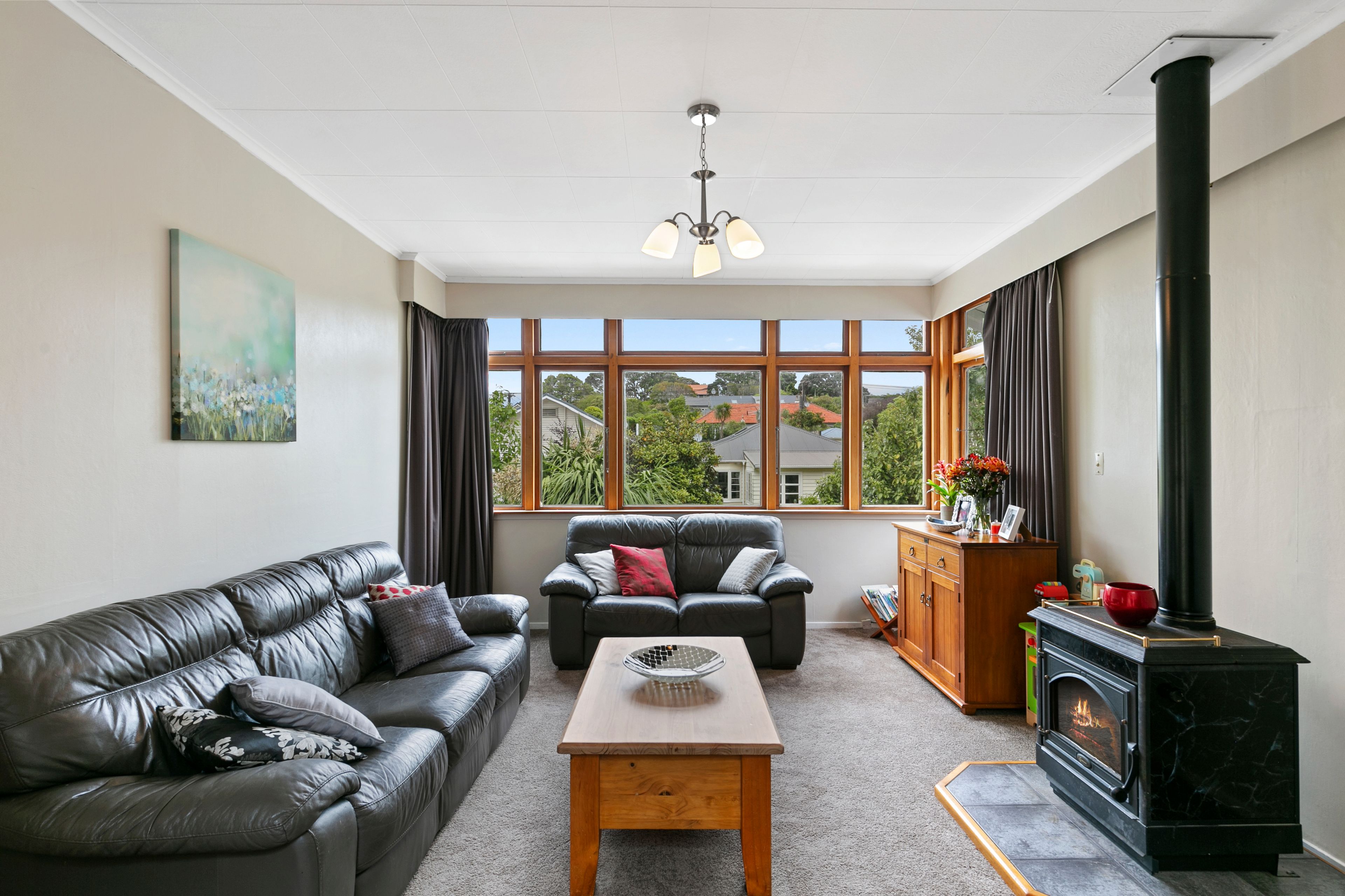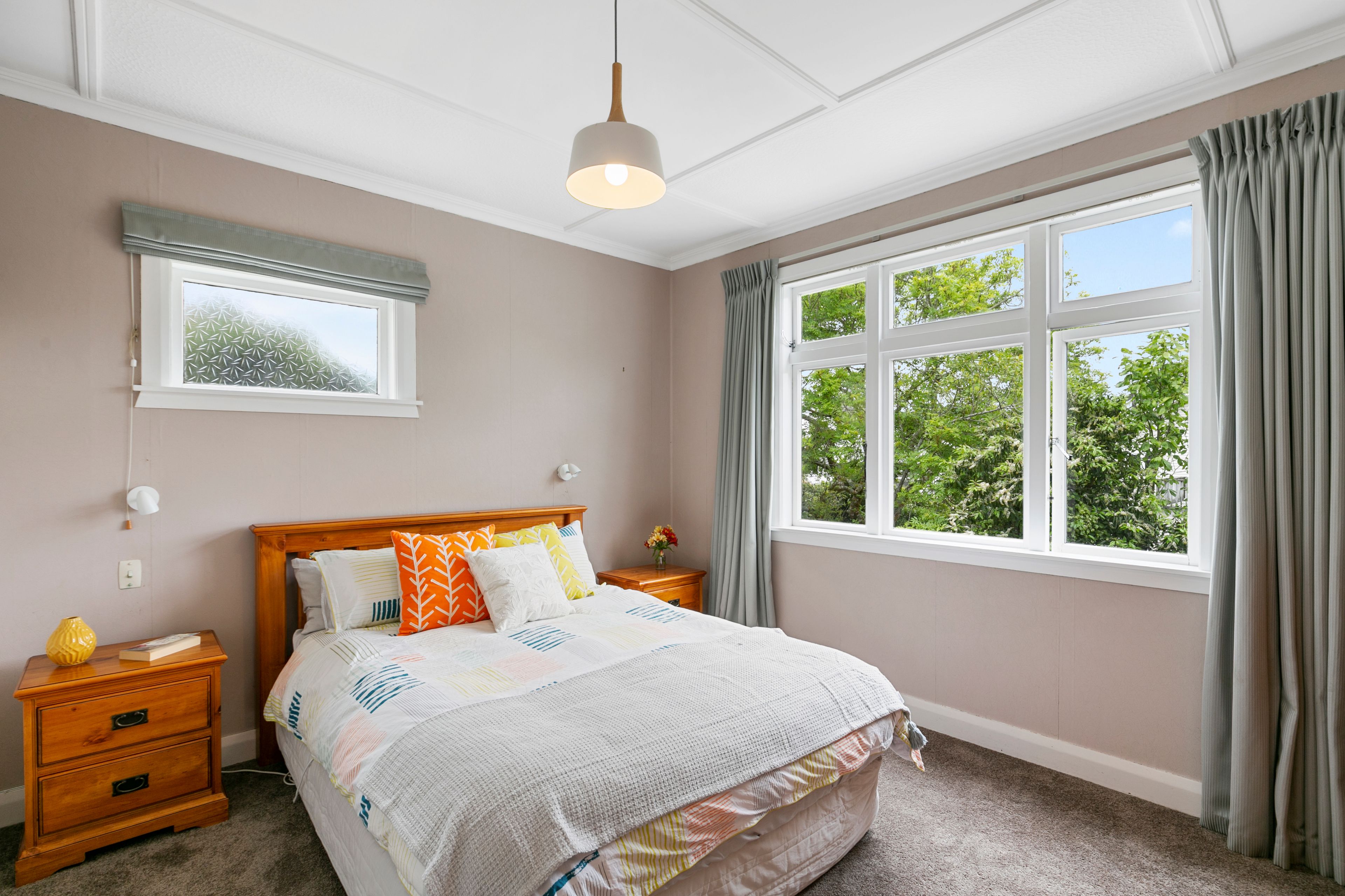 Private and sheltered from prevailing northerlies, this sunny four bedroom home at the city end of Karori is an exceptional first home. Just waiting for a young couple wishing to escape the rental treadmill and to start their home ownership dream, this fabulous 1920s home is indeed the perfect starter. Most of the hard work has been done, like the recent painting of the exterior, newly polished floors, renovated bathroom, and laundry, leaving you with a well presented, tidy and spacious new home. Walk down to your own private little haven and enjoy the following features: