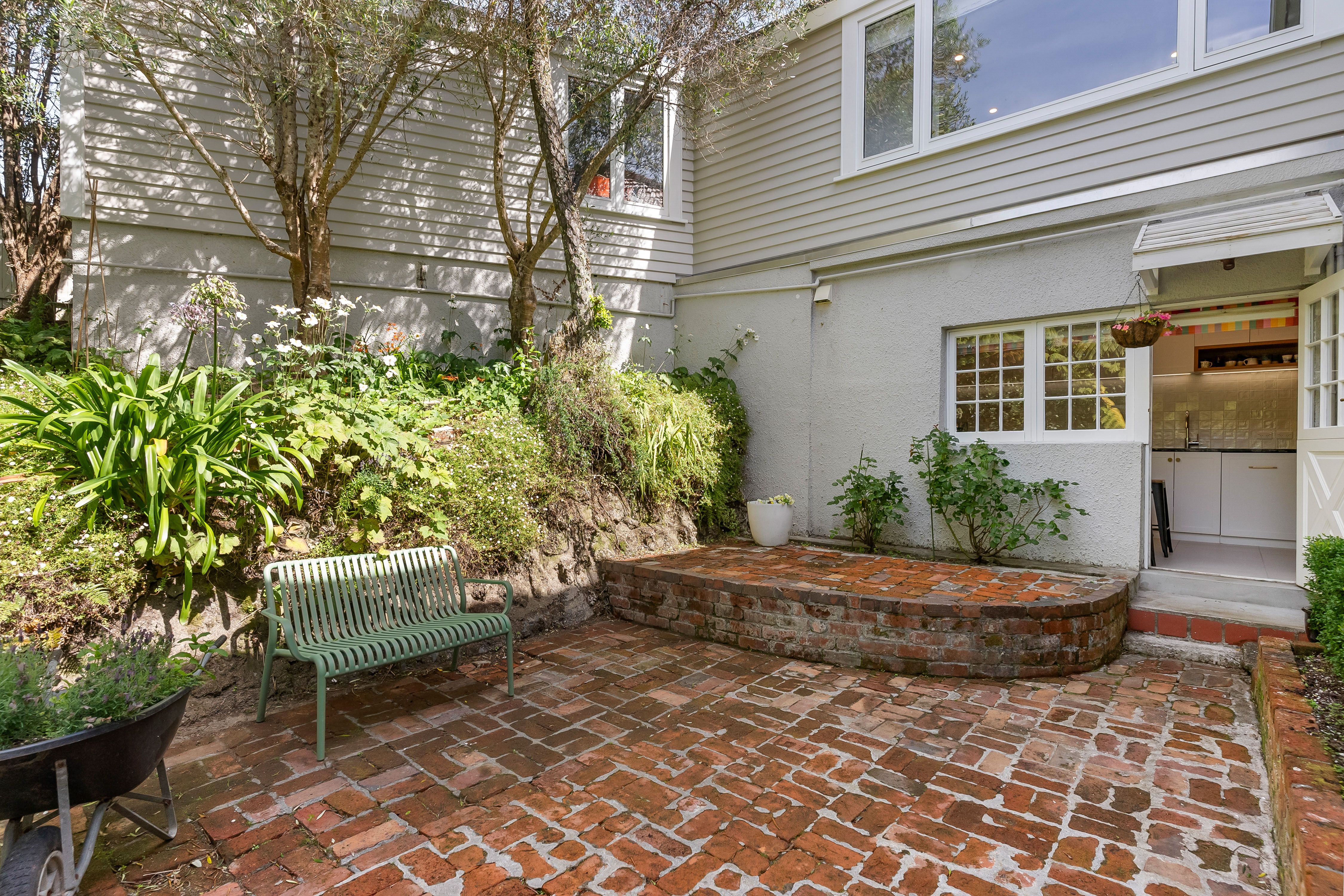 The kitchen is both stylish and functional, opening to a charming courtyard. A large separate laundry and two bathrooms keep life practical and polished.