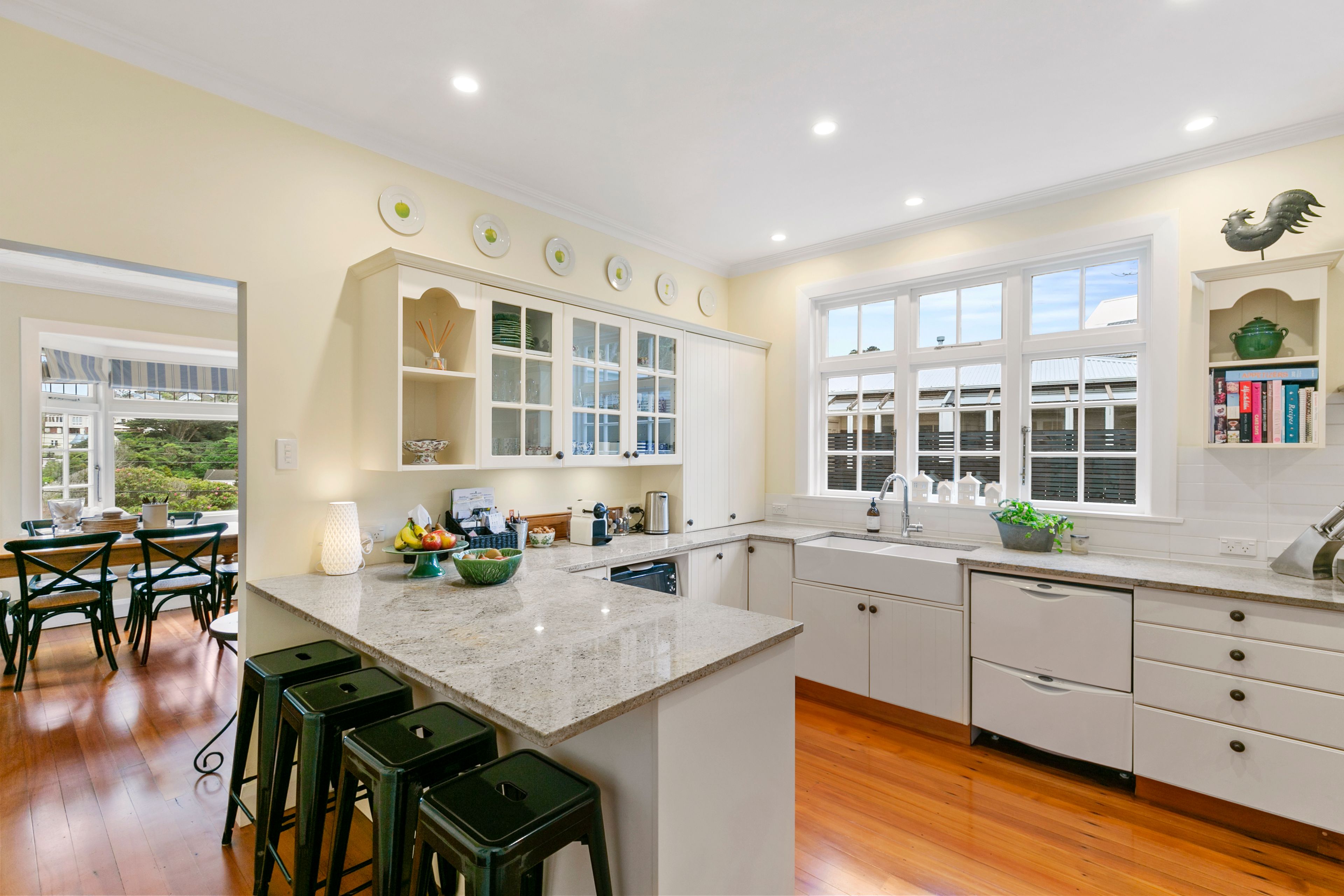 With a great layout and meticulously maintained by our house-proud owners, this home is perfect for families of all shapes and sizes. Four bedrooms, or three double bedrooms plus a study, are complemented by two bathrooms (ensuite off the master), while a covered courtyard off the kitchen, complete with built-in BBQ, sink, and wine fridge, is ideal for hosting both intimate gatherings and larger get-togethers.