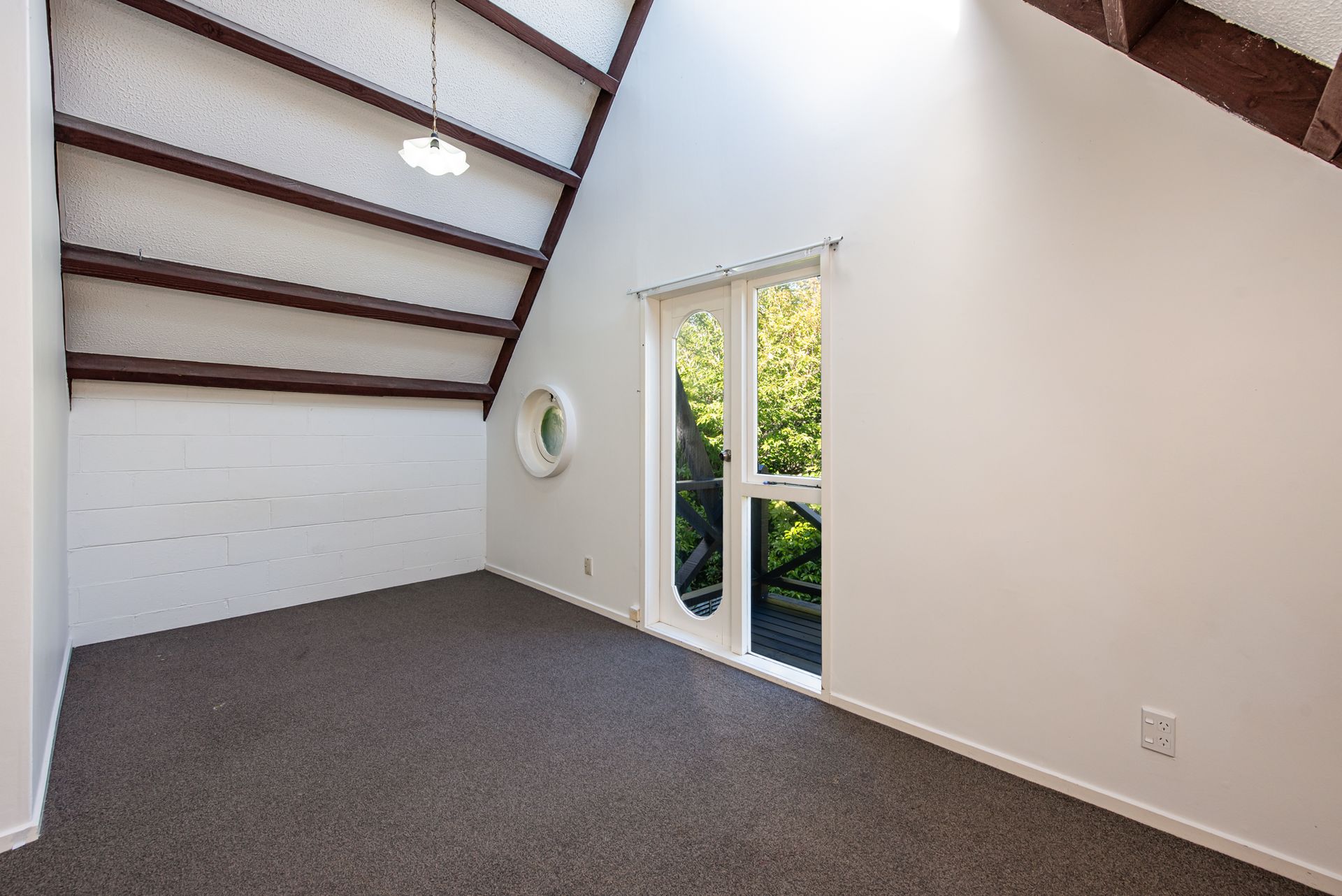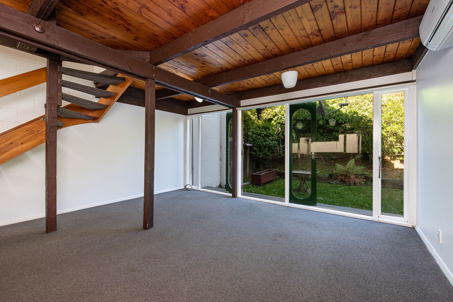 Featuring 70 sqm of living, cleverly spread over two levels with two good sized double bedrooms and bathroom upstairs complete with porthole windows and private balcony. Downstairs offers an easy, open plan, lounge and kitchen. Large windows and skylights allow for lots of natural light and sun. A newly installed heat pump will keep you cosy in winter. With its own private secluded courtyard offering fantastic indoor/outdoor flow. You can come home, relax and watch the sunset beyond the bush-clad hills to the northwest.