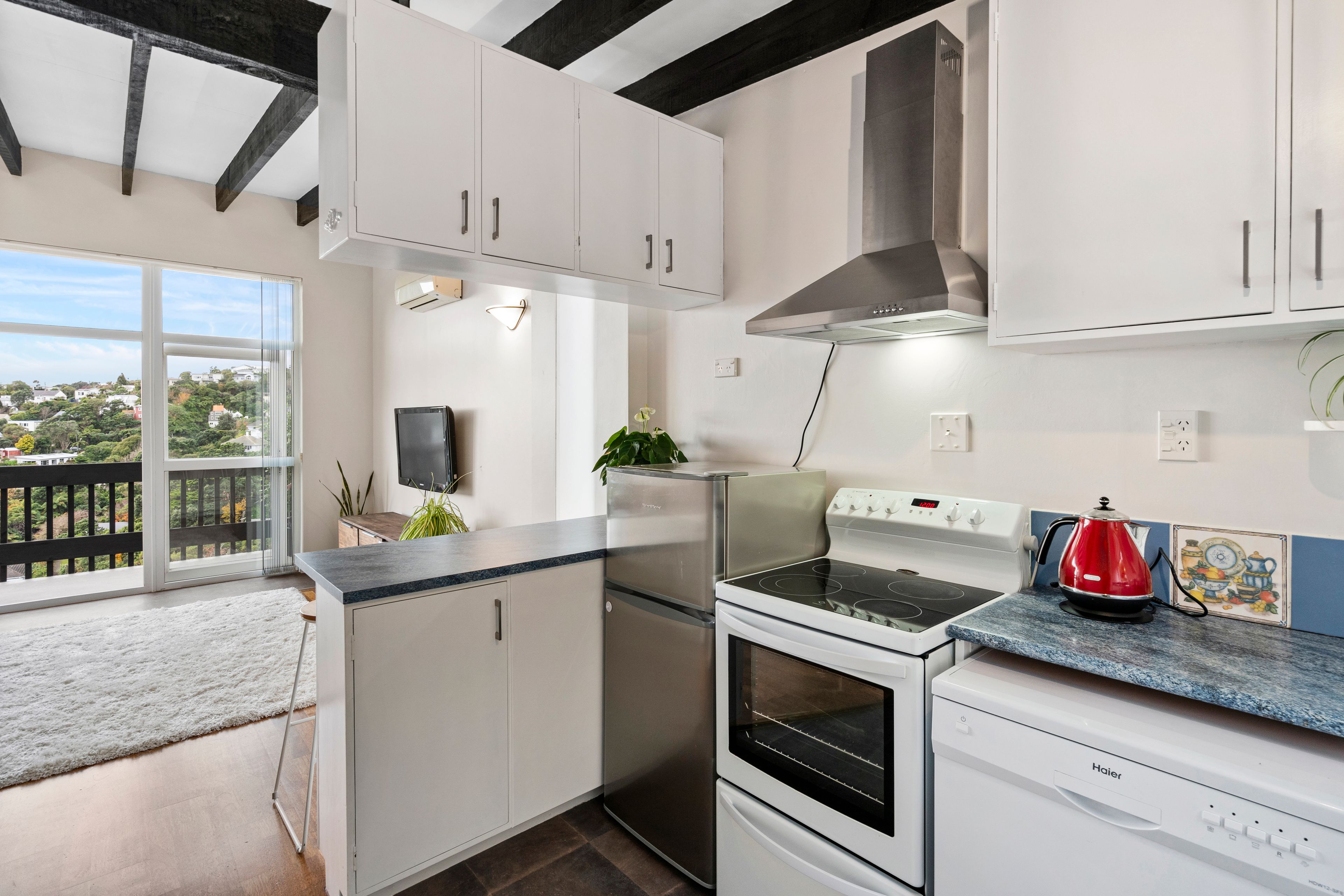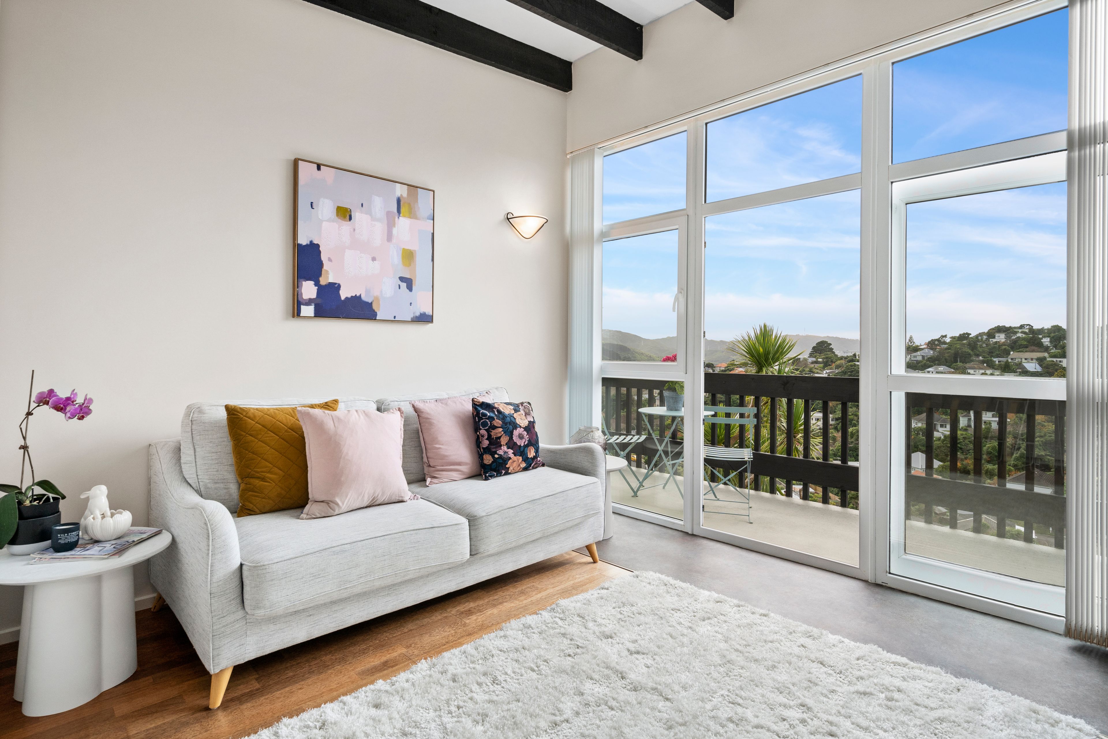 This delightful two bedroom cross-lease property boasts stunning elevated views and plenty of sunshine. Enjoy expansive views from your balcony, a modern bathroom complete with heated towel rails, a fully equipped kitchen (including fridge and dishwasher), two heat pumps and double glazed windows. Coming home has never been more enjoyable.