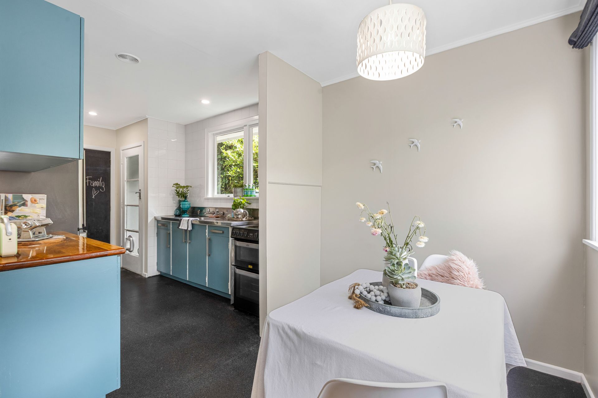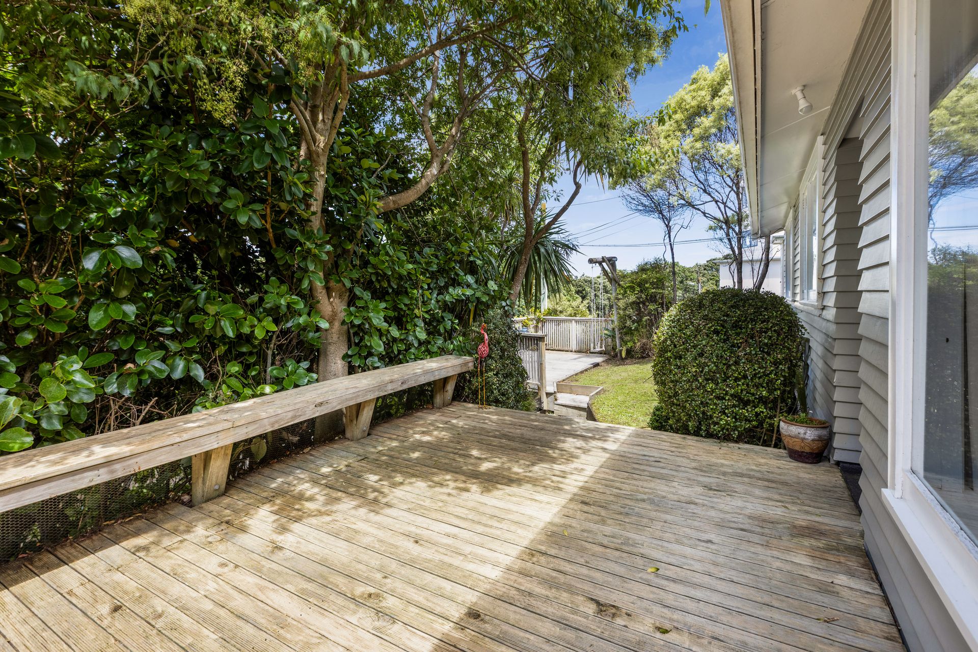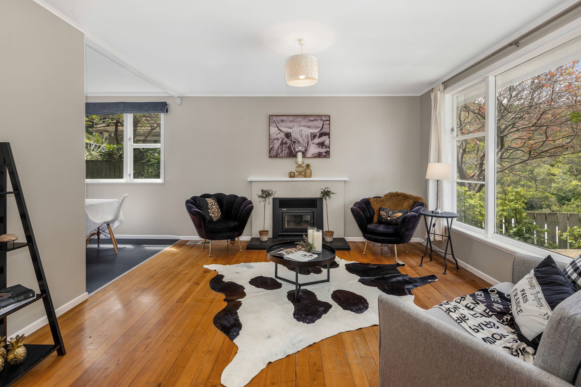 The light-filled open-plan living area features polished floors and a wood burner, creating a warm and inviting hub. Outside, the spacious private deck and large rear section provide plenty of room to entertain, play, or add value over time.