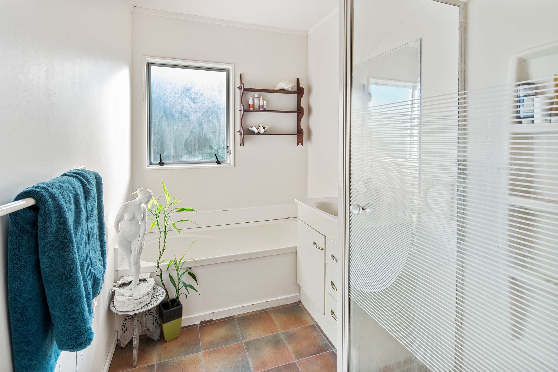 - bathroom with bath, separate shower and vanity (would respond well to a makeover)